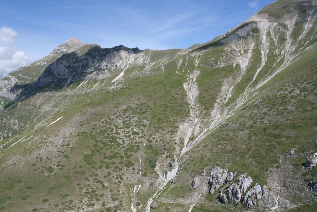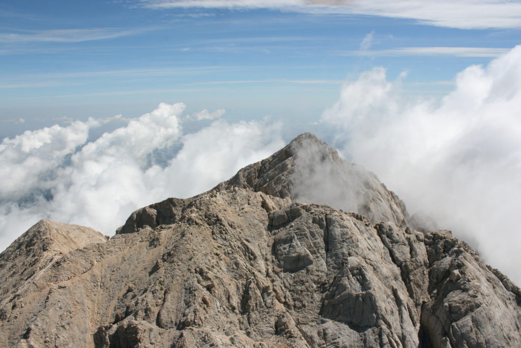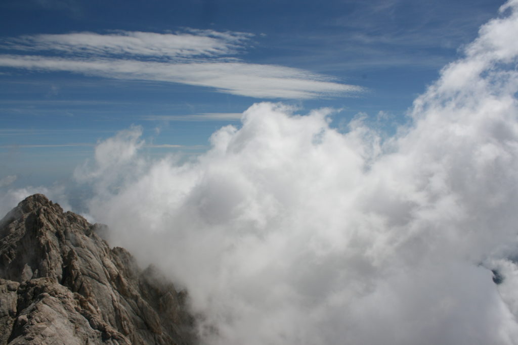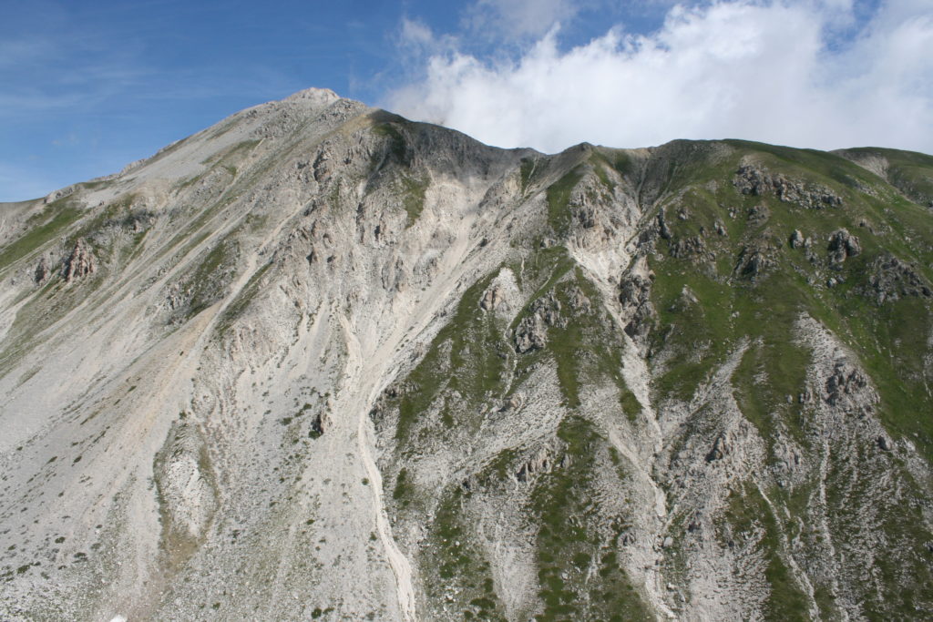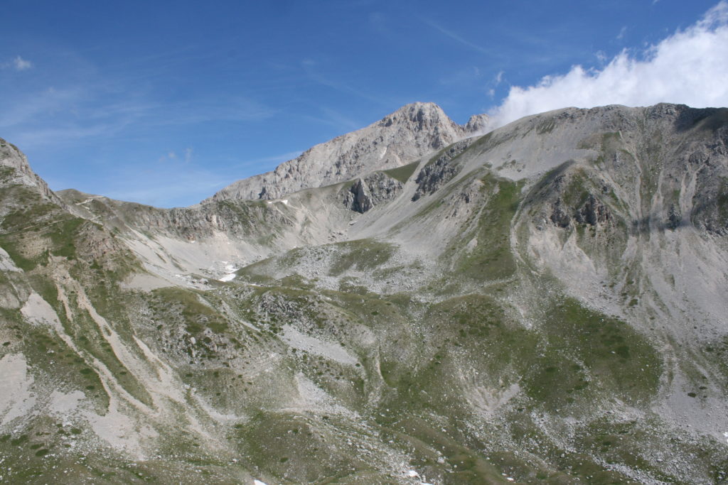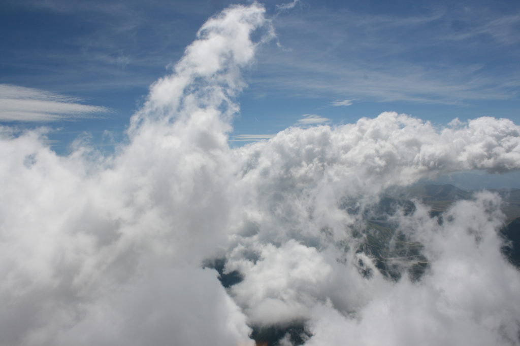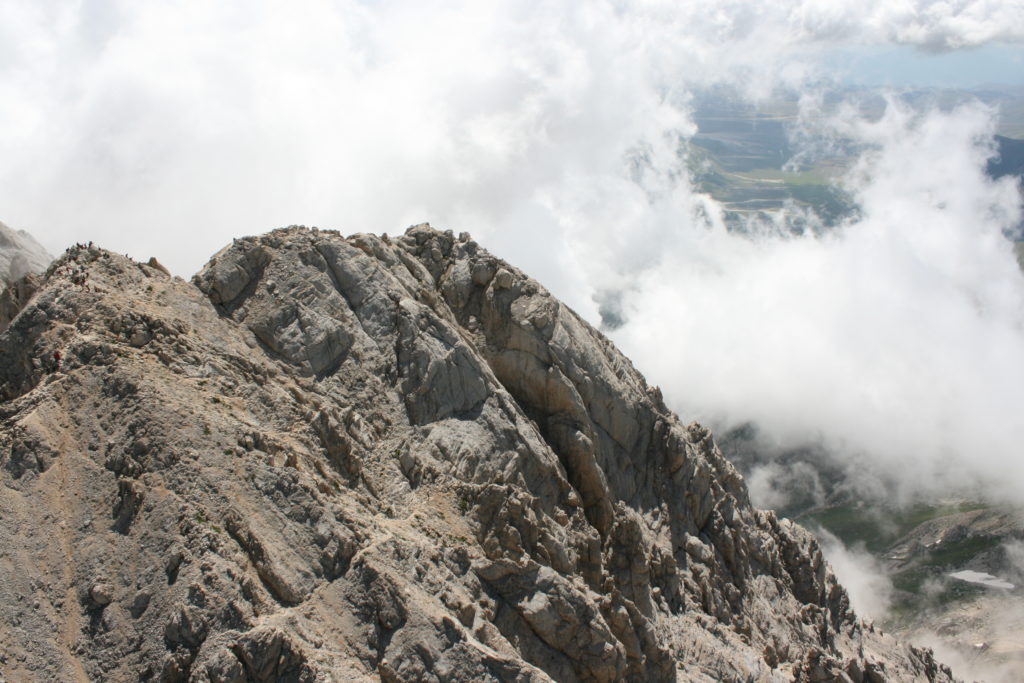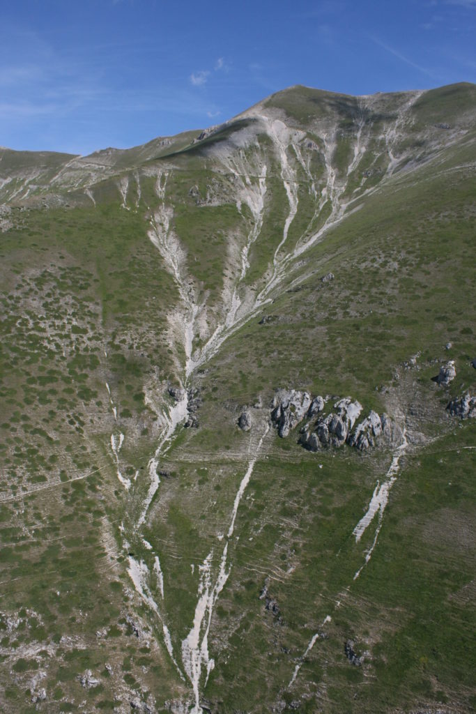 Proviamo a pensare, in sintesi, partendo dagli Illuministi del Grand Tour che scendono per la Via degli Abruzzi e da Roma per la Tiburtina Valeria ( rampolli delle famiglie bene, prelati, colti esploratori, nobili decadenti ) – viaggiatori stranieri in cerca di sensazioni per i loro taccuini, nell’ Ottocento poi – il quadro cambia- l’esplorazione a fini scientifici e il Novecento letterario della narrazione: L’Aquila e il massiccio del Gran Sasso d’Italia sono stati sempre un binomio perfetto, in stretto rapporto, una combinazione non solo geografica che muta, sì, ha vestito i destini sì, ma ha indossato il rito del paesaggio urbano prima e poi montano delle vette, interfacciati, esaltando la muta bellezza, quasi fosse una fase di “passaggio”, sappiamo, secolare, viaggiare dalla città, per terminare davanti al suo Totem profetico avvolto dalle nuvole, inviolabile, il Gran Sasso aspro e erto, che non smette mai di svelare i nostri limiti, e se hai le capacità, puoi anche ascoltarlo. E noi, lo sappiamo, siamo diretti proprio nel ventre della grande montagna, dalla città dell’Aquila in un viaggio altro, diverso, per certi aspetti subliminale lì, dove s’incontrano le nuvole, esclusivo “tour” del massiccio, e della sua solitudine geologica, per poterlo osservare sotto un profilo inconsueto, e scriverne. Dall’aeroporto di Preturo ci alziamo con l’elicottero in codice in VDS i – Ciarli 103. “Yo – yo” , serie 1, pilota Davide Zecca titolare dell’azienda (istruttore, collaudatore e costruttore di elicotteri), figlio di Giorgio Zecca uno dei fautori della pista di volo quando fu ideata (il management dell’aeroporto dovrebbe ricordarlo con una intitolazione nella struttura). Dal Parco Nazionale Gran Sasso e Monti della Laga le autorizzazioni al volo, i protocolli da rispettare, le aree interdette. Il volo. L’Aquila lentamente si avvicina con il suo skyline, da nord -ovest, “luccicante”, città nova, e poi si apre e dispiega il suo involucro urbanistico impattante, dentro un periplo l’elicottero sorvola, trasla e vira in un grande cerchio, compie una rotazione e sotto la città ( Davide ha tolto il finestrino per osservare meglio e farmi fotografare ) nel suo primo disegno costitutivo dello sforzo edificatorio sulle rocce ancora visibile, permanente, primitivo e fondativo della città nova Aquila, ma lentamente nel tempo fagocitato dai palazzinari, dalle politiche portatrici del disprezzo del Bene comune, dai profitti ad ogni costo, dagli insensati sventramenti e distruzioni di storici edifici o di traccia di questi, per erigere lì quanto di più insulso e devastante, e soprattutto contro il principio di bellezza della città storica, bene materiale e capitale culturale. Il volo prosegue. Ottime condizioni metereologiche nonostante l’elevata temperatura, lentamente ci alziamo a diecimila piedi (tremila metri) frontale ma a distanza Corno Grande. Eccezionale attività in dinamica, ascendenza che sfrutta le pendici delle montagne in avvicinamento al nostro obiettivo, i costoni certo, il vento e le correnti ascensionali che intercettiamo. La cima di Corno Grande, l’aria rarefatta, stabili i parametri di volo, non è facile portare lì l’elicottero in una velocità costante nei limiti di sicurezza, nella misura del vento a quelle quote. “Come gli uccelli” mi dice Davide, per un elicottero piccolo le difficoltà aumentano, hanno protocolli molto stretti e l’abilità del pilota è starne dentro con lucidità, freddezza e temperanza. Corno Grande, direzione 360°, una serie, larga, di manovre per stare dentro le correnti e moderare il volo. Corno Grande: dove s’incontrano le nuvole… Eccole!