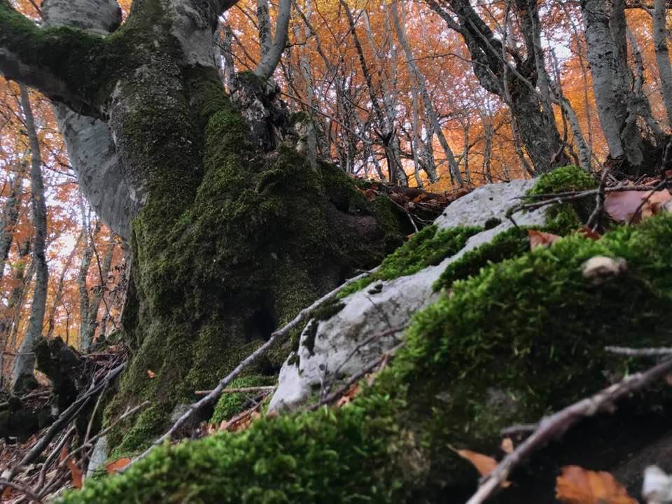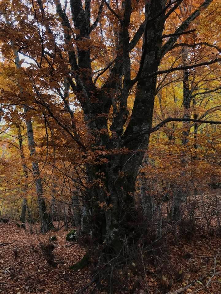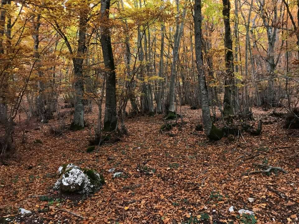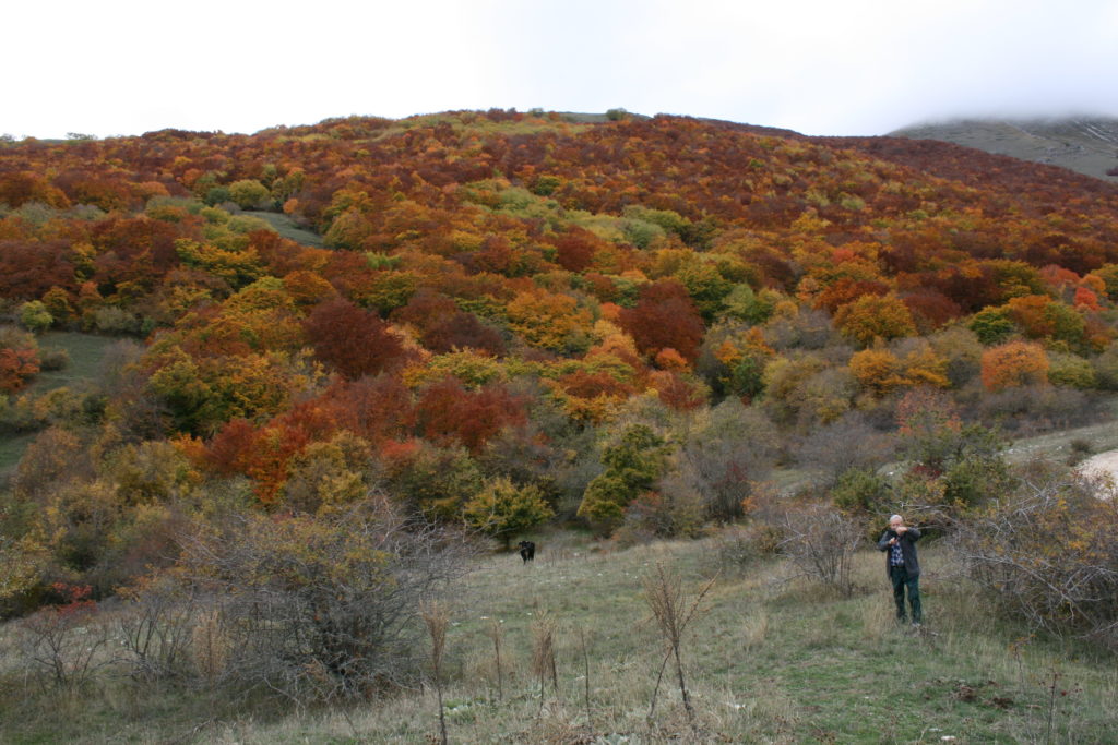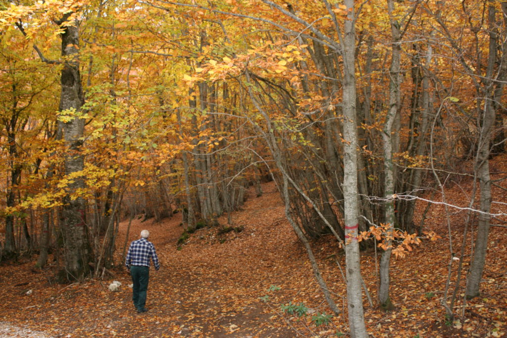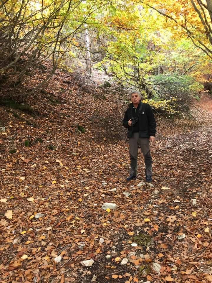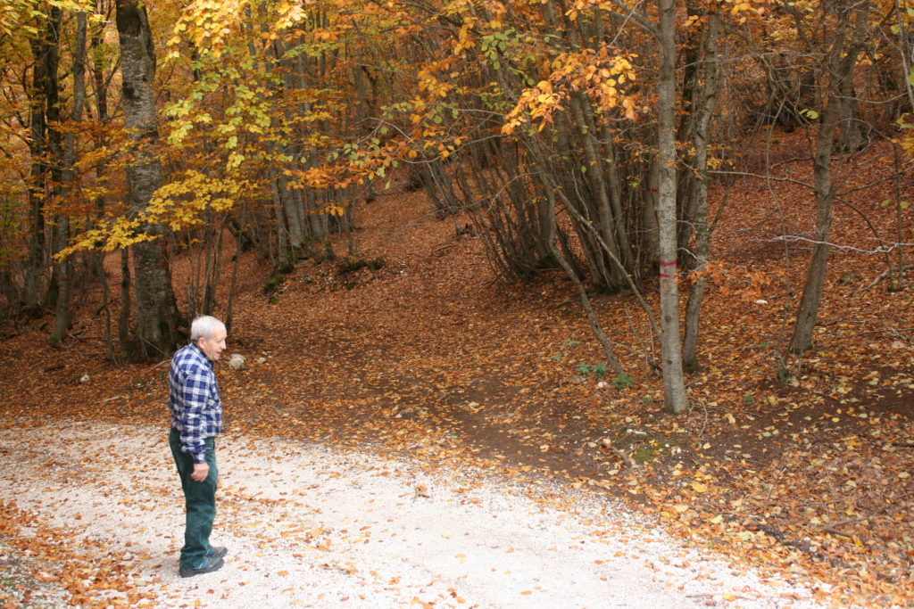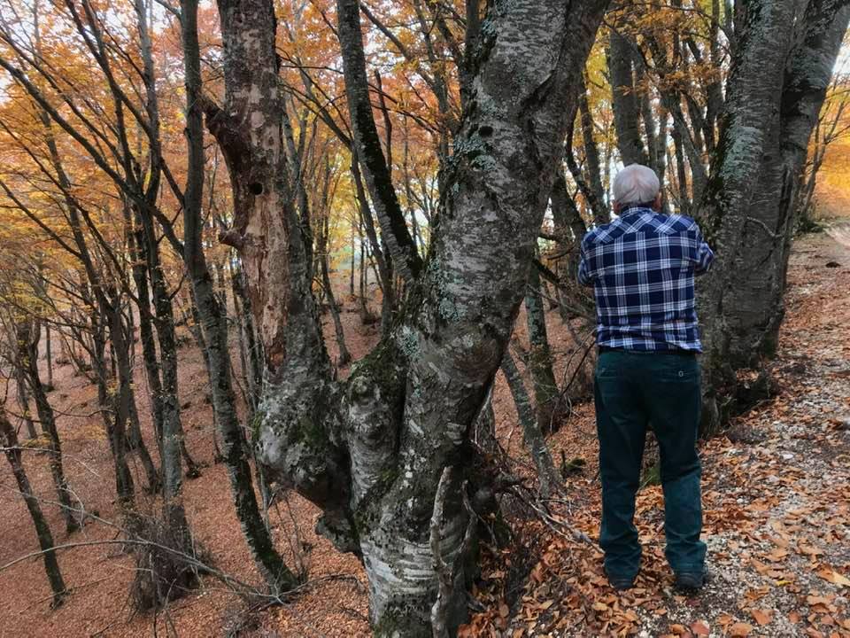 In viaggio con Luigino Barbati nel bosco di Canale, versante nord del massiccio del Sirente, nei territori dei comuni di Secinaro e Gagliano Aterno dove sono presenti conifere e latifoglie.