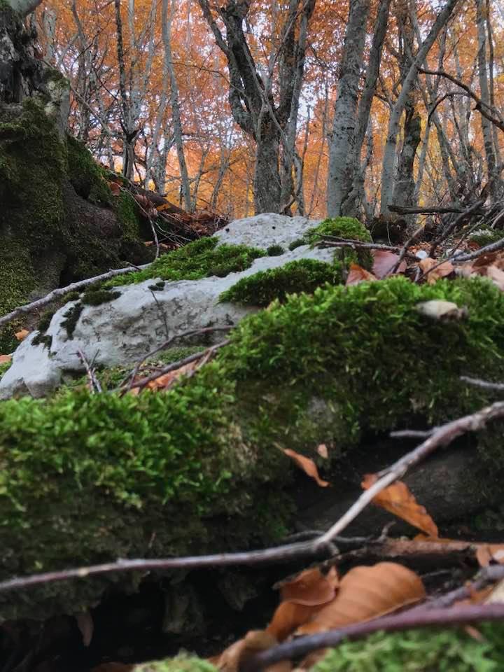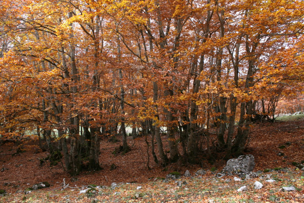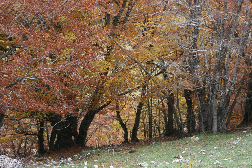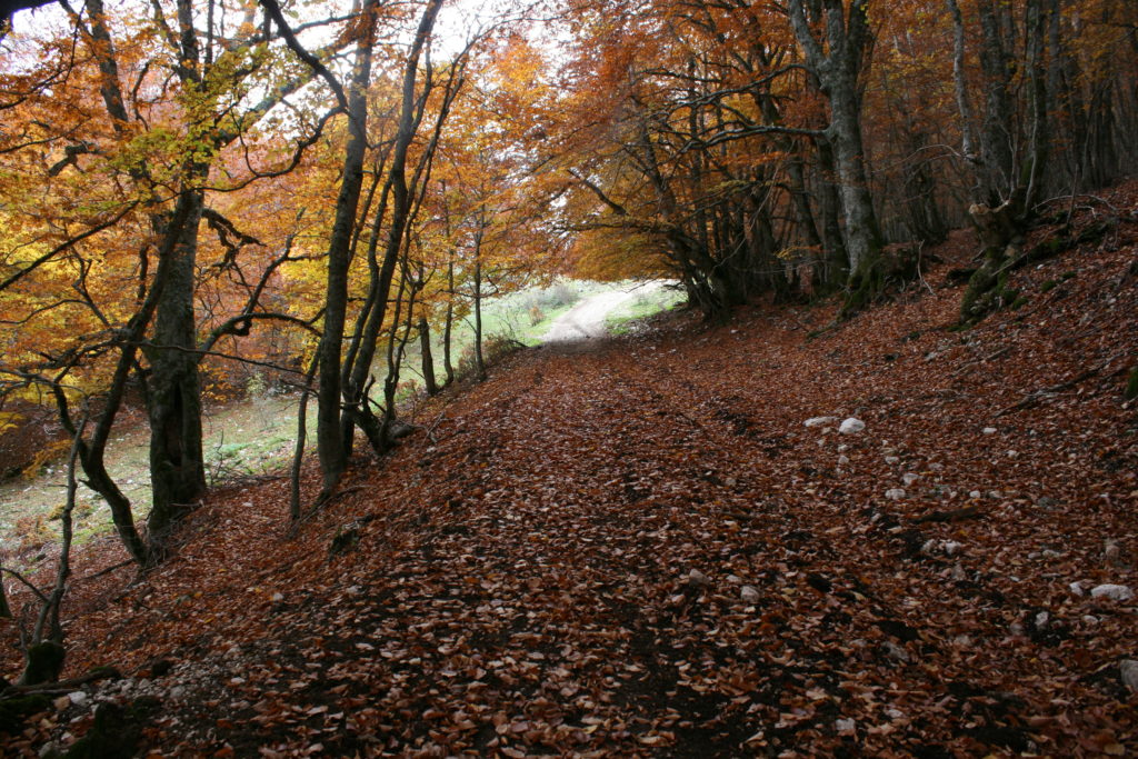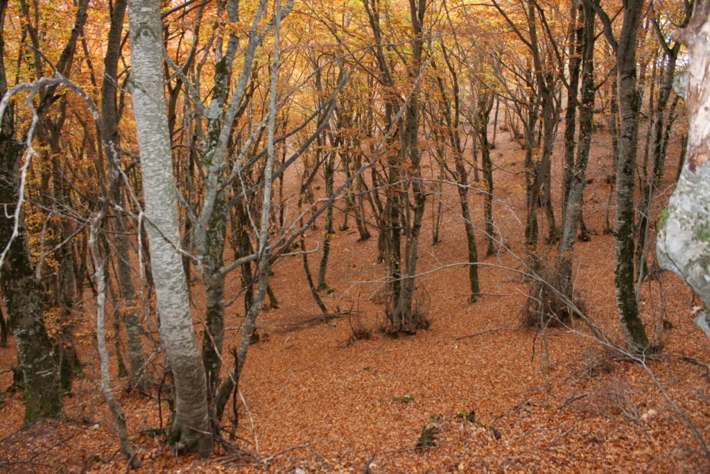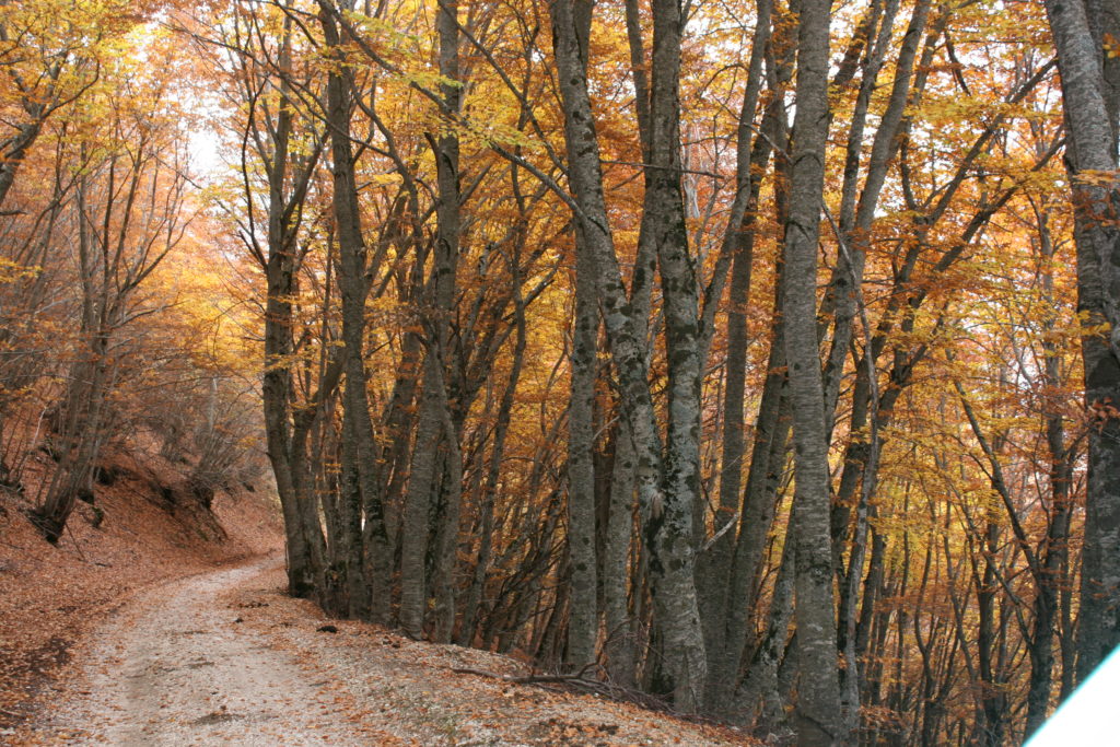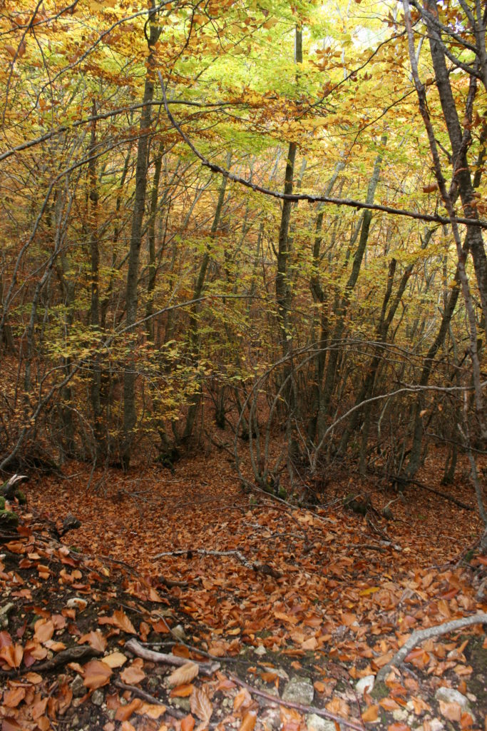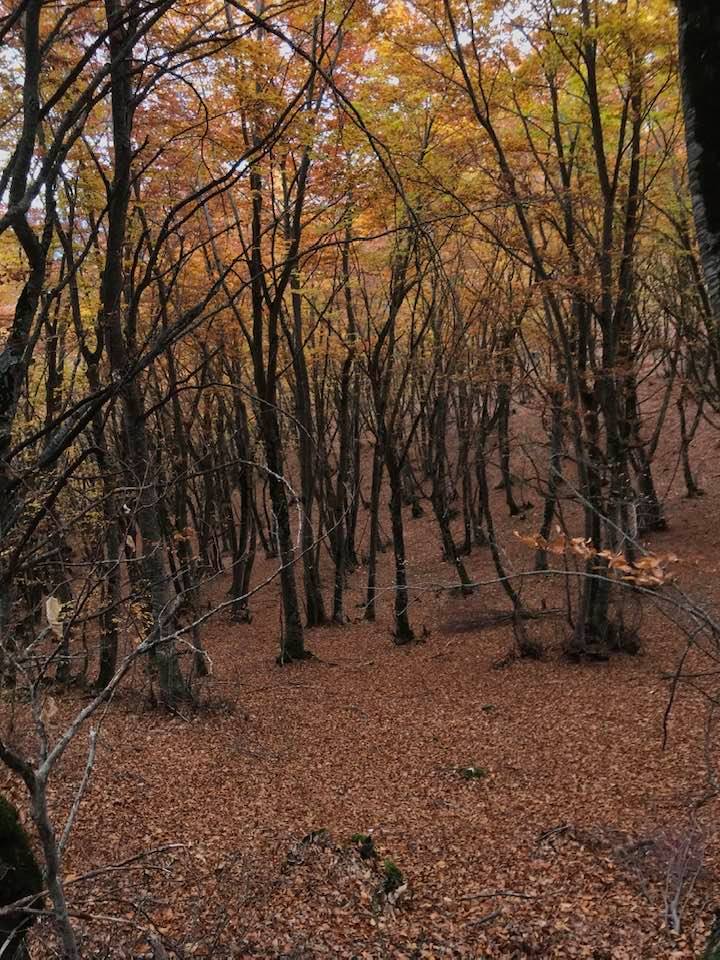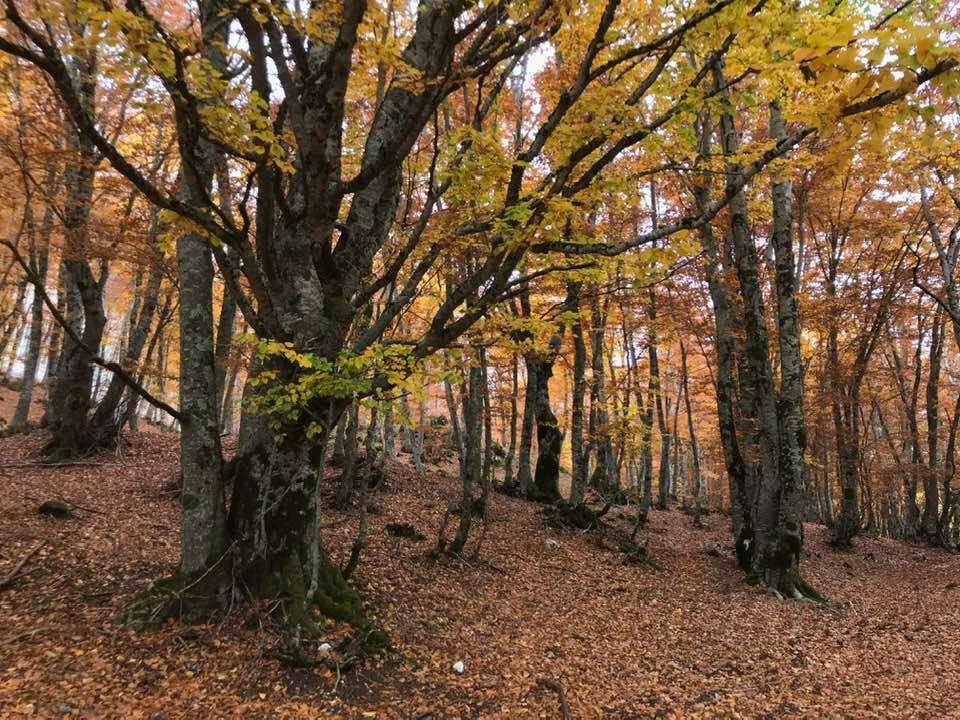 In viaggio con Luigino Barbati nel bosco di Canale, versante nord del massiccio del Sirente, nei territori dei comuni di Secinaro e Gagliano Aterno dove sono presenti conifere e latifoglie.