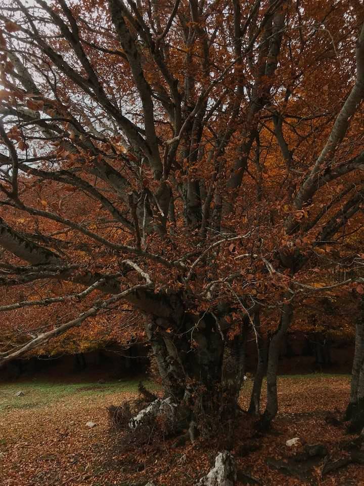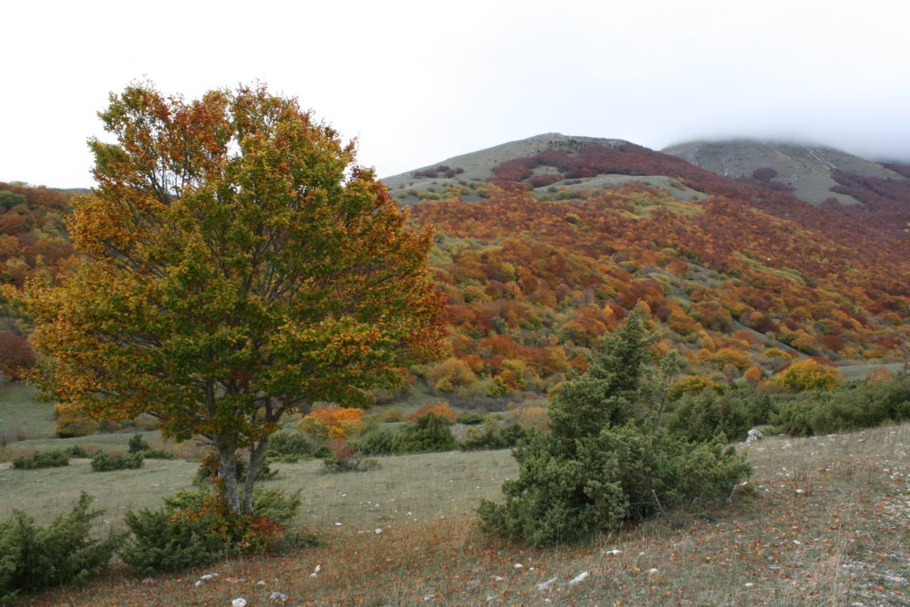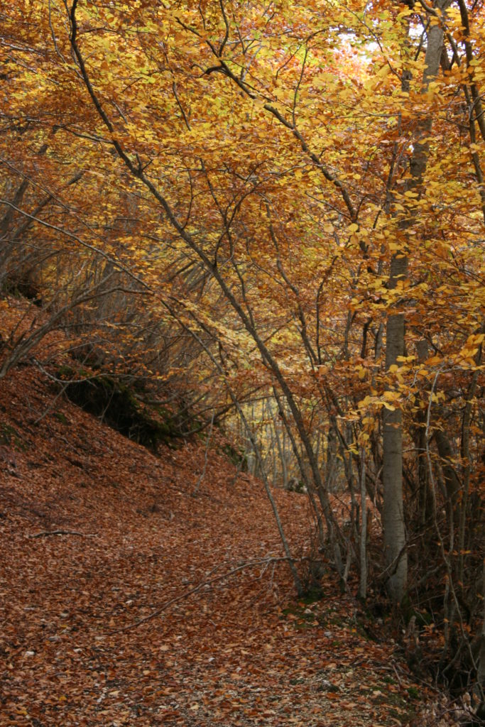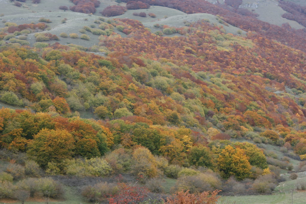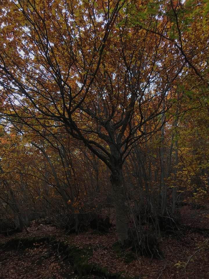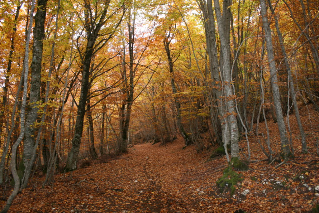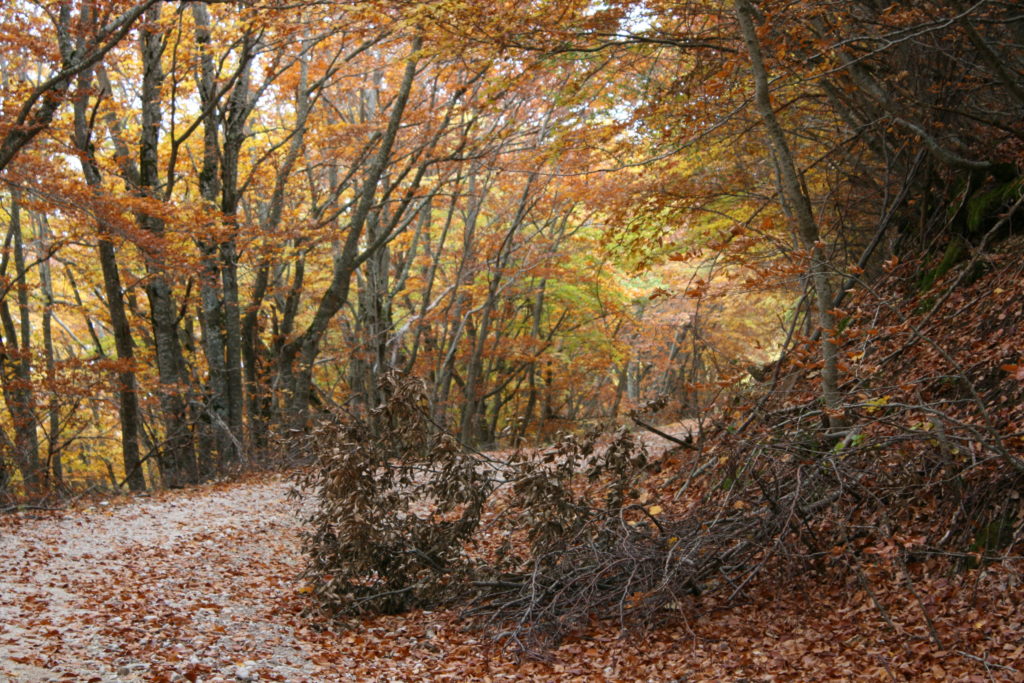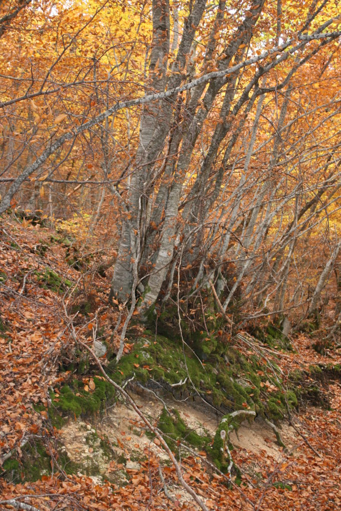 In viaggio con Luigino Barbati nel bosco di Canale, versante nord del massiccio del Sirente, nei territori dei comuni di Secinaro e Gagliano Aterno dove sono presenti conifere e latifoglie.
