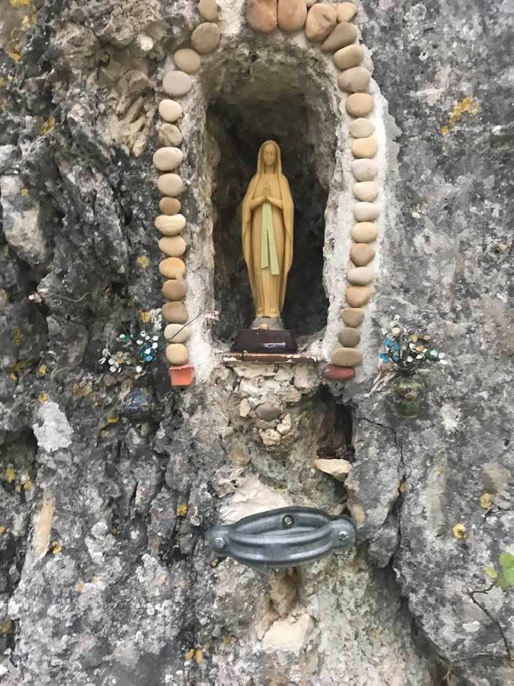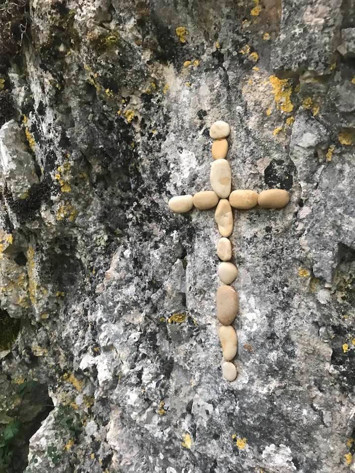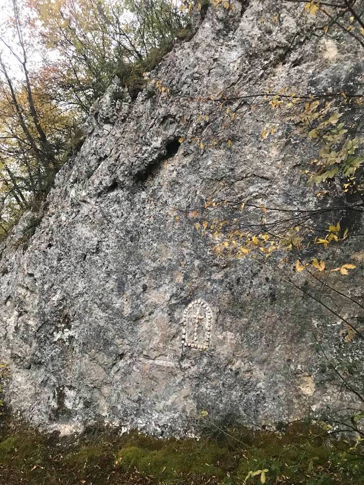 La pietra e le sue impronte, le edicole sacre scavate nella roccia della falesia che sovrasta il luogo religioso e di culto della comunità locale.