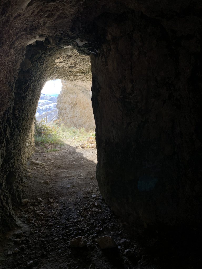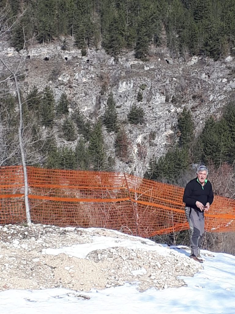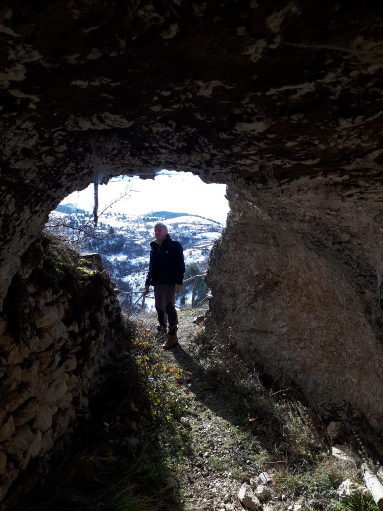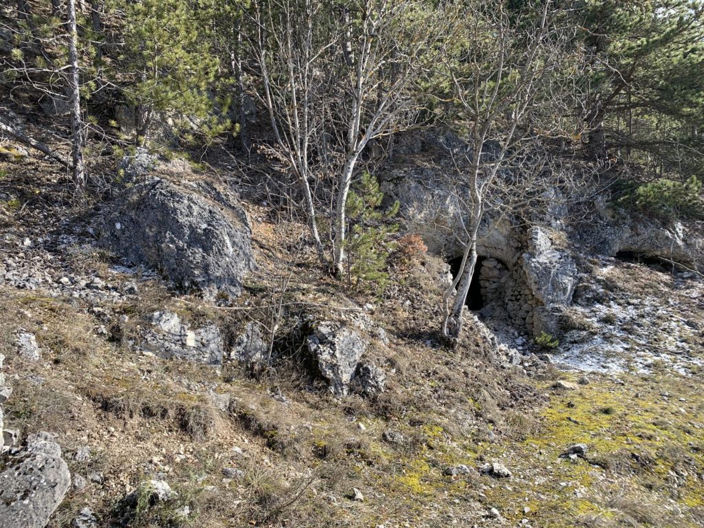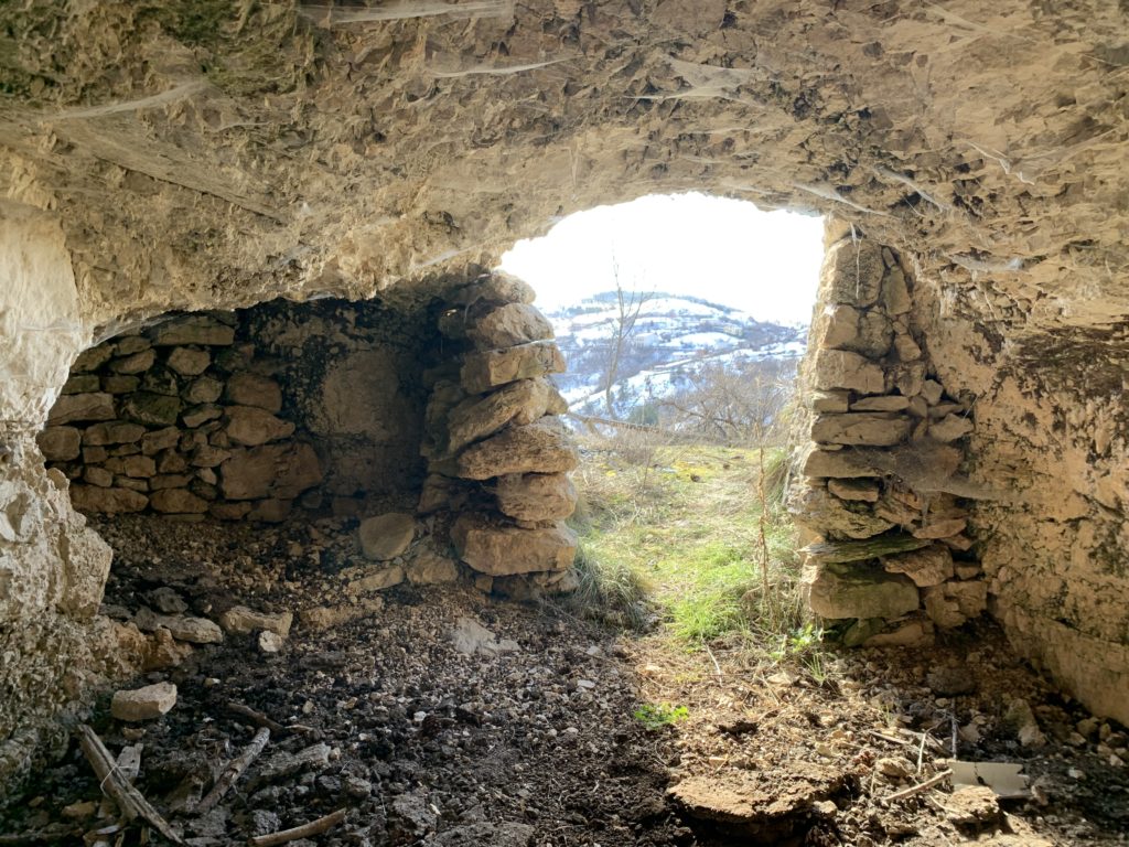 La grotta – presidio, utero materno, porta di accesso dei misteri della terra, luogo di eremiti, cavità nel domicilio delle genti primitive, ma fino agli anni ’50, si racconta, “sito di sosta” per il ricovero degli armenti, temporaneo per pastori transumanti diretti nei Piani di “Fugno” e oltre. Tutto è ancora oggi cristallizzato all’interno delle grotte che fronteggiano il borgo di Filetto (AQ). Uomini e animali, risorse della pastorizia, economie familiari residuali, il lavoro in condizioni estreme che la montagna trattiene: questo ci dicono le grotte, diverse, allineate e parallele alla montagna, muta testimonianza nella società degli antenati.Le grotte di San Crisante quindi, chiamate “ Rottoni”, scavate nella roccia sedimentaria con matrice sabbiosa: terra e ghiaia cementate e pertanto fragile da scavare, tanto che al centro delle cavità è stata lasciata una colonna per sostenere la volta e continuare ad estrarre la roccia intorno al pilastro di sostegno, ricavare ulteriore spazio fino a dove era consentito secondo un calcolo empirico. L’interno della cavità ( l’ingresso con pietre a secco di contenimento) e le sue anse, i volumi scavati, la ripartizione per gli ovini e la separazione degli agnelli, le nicchie per gli oggetti d’uso della pastorizia, il ricovero per gli uomini, gli spazi della mungitura, la mangiatoia e per la preparazione del formaggio. La vasca scavata nella roccia per approvvigionare di acqua gli animali (da Fonte Vecchia, il lavatoio nella valle sottostante, l’acqua trasportata nei contenitori in legno). Le grotte potevano contenere circa settanta capi di ovini, una morra costituita da piccoli proprietari residenti a Filetto che si univano per il pascolo e nei profitti della lavorazione del formaggio.Ma prima delle bocche rupestri, concepite secondo un principio di mutua assistenza nei ricoveri, è il sentiero che sale in quota a rivelare lo sforzo antropico lungo il suo tracciato: lì sono state portate enormi lastre di pietra per armare lo stesso sentiero, formano gradoni di terrazzamento, blocchi di calcare infissi nel terreno per creare punti di appoggio per gli animali da trasporto con il loro carico e arginare il dilavamento del sentiero sul pendio: un lavoro immane, smisurato.Per capire questa esile economia locale che ha il suo nucleo fondativo nelle grotte, bisogna risalire la montagna fino alla pieve di San Crisante. Nell’impianto religioso una pietra d’angolo della facciata romanica (ma non era certo la sua collocazione originale), una lastra, residua, che aveva un ruolo in una composizione lapidea di più figurazioni ( gli altri blocchi saccheggiati e dispersi ma con il ruolo di raccontare il Medioevo attraverso i suoi simboli), scolpita in altorilievo mostra un agnello in unico manufatto narrativo, l’animale gira la testa, apre appena la bocca, guarda il suo vello e scruta alle sue spalle nella postura particolare che si pone in allarme, mentre il male – proviamo a pensare – lentamente in agguato nei boschi di Filetto si avvicina, ma il luogo sacro lo fronteggia. “Il Male”: presente, si rinnova, come nell’ambone di Santa Maria Assunta del complesso dell’Abbazia benedettina di San Pellegrino da cui dipendeva la chiesa di San Crisante, e ancora il male scolpito nell’architrave della facciata laterale del santuario delle Madonna d’Appari di Paganica in un cerchio magico – apotropaico. Il versante Occidentale del Gran Sasso e “Il Male” reso plastico è, nell’ immaginario collettivo sconfitto, declinato e dileguato attraverso la fama taumaturgica di San Franco di Assergi e Pizzo Cefalone, suo luogo elettivo, ma a qualche miglia di distanza più a nord del complesso religioso di San Crisante, poiché lui, santo anacoreta, entra nello scenario delle paure e delle angosce, ora può dialogare con le avversità del paesaggio, il male, lo converte, gli chiede il neonato rapito dal lupo e, infine, restituito nella foresta, ai suoi genitori. Il lupo quindi è il male, dentro gli spazi del presidio degli uomini delle paure e superstizioni, metafora del castigo, gorgo dell’Inferno per i credenti la belva, soccombente icona plastica la bestia nascosta nella forra e indicatore costante del male per i fedeli, ed è così che media San Franco eremita nel XII secolo, negozia e pettina la natura ritenuta ostile secondo l’agiografia dei miti. Resta, infine, il suo ruolo salvifico ben presto nella santità molto, molto vicino a quel Pietro da Morrone.Un racconto, questo, una tessitura antropica giunta fino a noi ma che ha il suo inizio nelle grotte. Avvolge economie, spiritualità e gestione del paesaggio che altro non è patrimonio culturale su cui poggiamo i piedi.