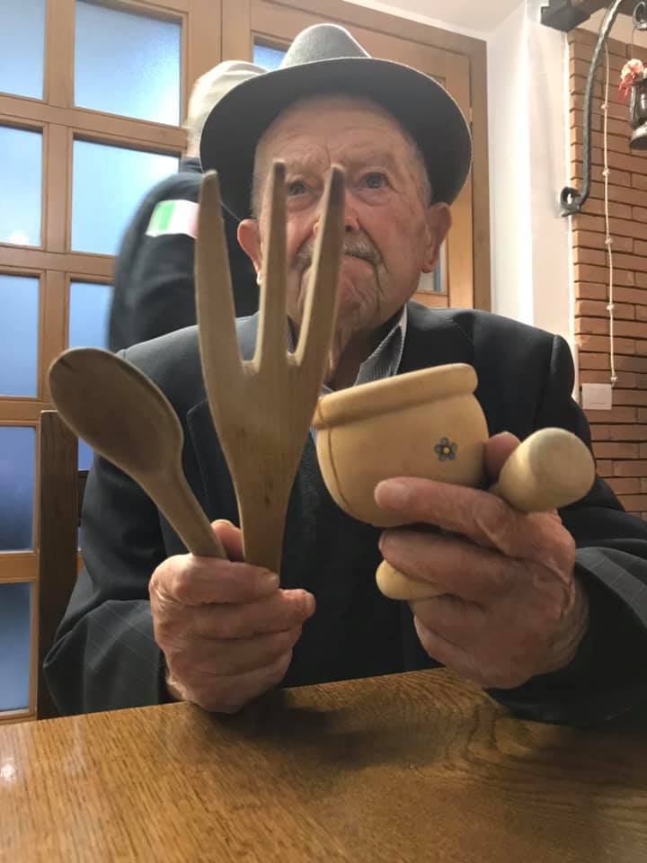 Con il compagno Fiore Zaccagno, Capannolo, allora dodicenne: “Portavo nella bisaccia il pane, formaggio marcetto con i vermi, budello grasso del maiale (“‘ngoia”) con sale, pepe e finocchio selvatico e, con gli arcari, seduti davanti al fuoco, si facevano le “struscette”. La “’ngoia” veniva scaldata su un bastone al fuoco e si strusciava sul pane. Le famiglie preparavano le “sagnarelle” ammassate, le pizzette uova e farina in bianco, “acconciate” con il lardo. Poi la polenta sempre in bianco con il lardo sopra un piatto di legno, “baglietta”, ci veniva offerta e noi ricambiavamo con il “marcetto”.
