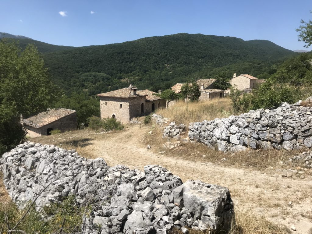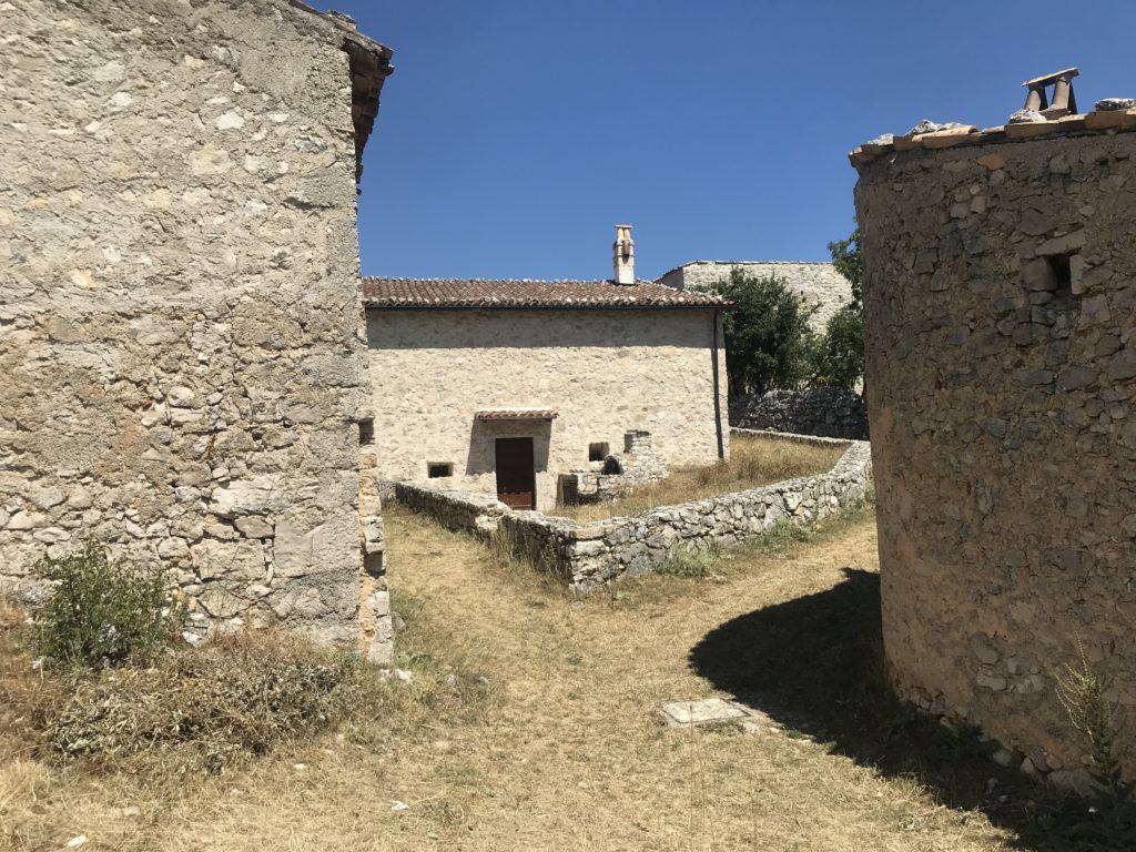 Lo sforzo antropico dalle valli in altura, la colonizzazione lenta e progressiva, gli impianti urbani autocostruiti in pietra e calce, isolati ma aggregati, solidali, come dadi gettati sul lembo paesaggistico che decresce sui piani ellittici sottostanti e fronteggiano le balze e le falesie del versante occidentale del massiccio del Sirente. Le Pagliare, parola forza – magica, intraducibile affiancata al mito, dal locale sopraelevato i mazzamurielli scrutavano i pastori – raccoglitori, tanto che la storia torna indietro con la pantasima divinità greca, spirito vagante dei boschi. La pantasima riesci a sentirla in questo luogo metastorico così da sempre, topos bagnato dagli umori arcaici dove si danno convegno creature che abitano le viscere della terra e risalgono. Desta impressione, però, pronunciarla questa parola, trascina le suggestioni, il sogno, l’utopia e la realtà che lì si fondono. Un medioevo inesplorato di eventi e sacri giuramenti, e tra le casette indifese delle Pagliare con le travi che sostengono il piano superiore e il pavimento in pietre misteriose e cromatiche, si adombra la sagoma, nella notte fonda della luna piena del drago che lì si aggira. Una sorta di drago e un Ivanhoe che lo insidia, in questa regione del “non accade”, Wantley velenoso e spumeggiante di fuoco, è braccato, e muove le sue ombre intorno alle casette. Il medioevo fantastico delle Pagliare da inseguire, si compendia in nuovi scenari di inestimabili tesori di questo paesaggio – frontiera – ancora si nutre. I cavalieri medievali che si riuniscono, la nascita di un giuramento solenne tra le lame alzate delle spalle che luccicano all’alba e i cantastorie che si impossessano delle parole e poi giù a valle girano i borghi di Fontecchio e Tione degli Abruzzi, Acciano, San Demetrio né Vestini per narrare, sui loro grandi drappi dipinti con figure, le gesta e i destini che non vedremo mai e poi mai, ma sappiamo che da qualche parte ci devono pur essere. I castelli e le torri di avvistamento dell’Alto medioevo sono ancora intatti, respirano un dono di mille anni, sconfinano oltre i limiti del verosimile. Il non – luogo dell’immaginario ma che accade, le casette delle Pagliare, topografia del fantastico tra draghi, scontri, fate e cavalieri dunque: una linea mai spezzata, un pensiero, che orienta e ci conduce al libro delle meraviglie da qualche posto sepolto nel villaggio che molti ancora cercano, alcuni dicono tra la chiesa della Madonna di Loreto e l’aia dove San Giorgio ha salutato la principessa prima di lanciarsi contro il drago coperto da lampi e fuoco. E quel monaco cistercense in viaggio, dalle pendici del Sirente, risalì la china e bevve l’acqua da una fontana delle Pagliare, quando alzò la testa vide unicorni, serpenti dalla zampe dorate, lupi dalla fattezze umane, grilli con la corazza, come se fossero usciti da un bestiario di miniature medievali, lo invitarono – non c’è nulla di ingannevole gli dissero – ad accostare il reale al fantastico, la simbologia e la figurazione, guida e stretto sentiero per liberare infine i sogni e i desideri, la parola con l’azione, la cronaca con la leggenda, e carpirne i profondi significati per la totalità del creato, dissero al monaco, che rimase tutta la notte a parlare a se stesso, e ripetersi e ripetersi, fin quando all’alba sparì. E’ questa delle Pagliare di Tione in definitiva la cornice scenografica – cosmologica di eventi che abbiamo visto fin qui, e figure allegoriche, come fosse una pergamena che si srotola e lentamente rivela significati sui quali ancora oggi ci interroghiamo. Le Pagliare di Tione, ne siamo convinti, fagocitano addirittura Tolkien e il “Signore degli Anelli”, l’immaginario adesso qui è in galoppo, ha superato Le Goff, Graf, Duby, Umberto Eco, oppure I cavalieri dell’Apocalisse, ha sete di imporsi, vuole recuperare lo scibile andato disperso dal sudore e dalla fatica, dalla miseria e povertà degli uomini e delle donne delle Pagliare. Dagli inverni della legna alla stagione dei raccolti con i figli dentro i cesti, uomini considerati animali da soma nel salire e scendere una montagna che sembra quella di Teofilo Patini (pittore dell’Ottocento) nelle tele “Bestie da soma”, “Vanga e latte”, “L’erede”, non certo di un “Abruzzo forte e gentile” a cui si ascrivono autori nativi di quest’area geografica. Più volte al giorno, quindi, quegli uomini, che trascinavano slitte da carico, senza potersi emendare dal proprio ruolo, senza prospettiva e futuro: una parola – traccia sconosciuta e arcana questa, lasciati al loro destino certo, solo con il compito di replicare il proprio sé perimetrato, senza soluzione di continuità per tempi immemorabili, per secoli e secoli. Tutto abbiamo tolto a loro in questo lembo stipato dell’Appennino interno visto solo dalle Aquile, non la luce, la vita, l’amore, gli eroi silenziosi, l’affabulazione, i segmenti intimi del racconto e la bellezza delle fiabe che abitano, le puoi vedere, toccare, sui muri, sulle porte, ancora, abitano dentro le casette delle Pagliare di Tione. Abitano lì le fiabe e si nutrono, possiamo starne certi.