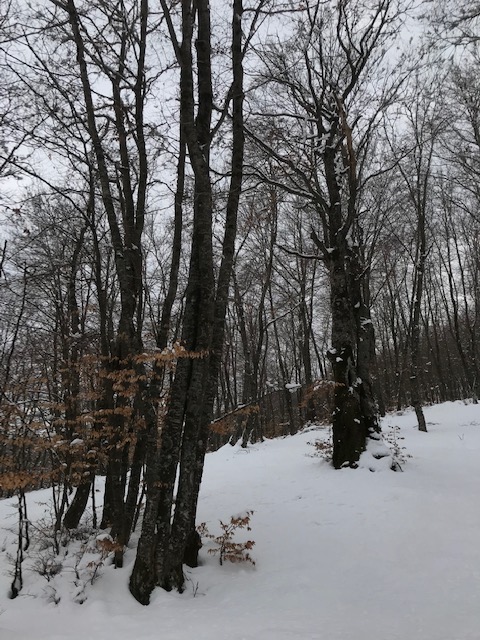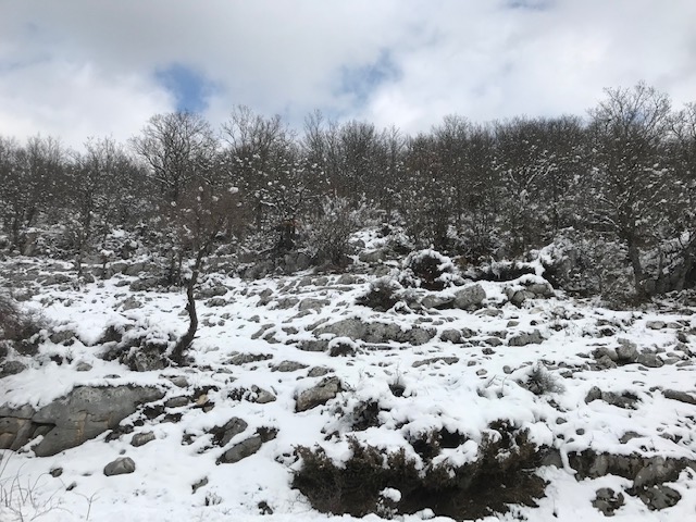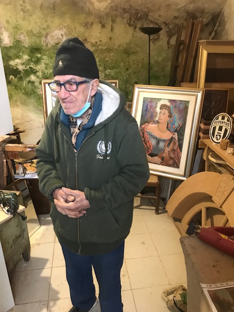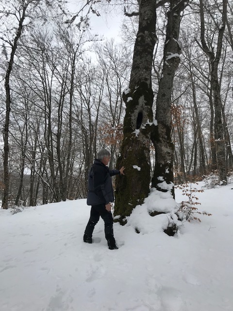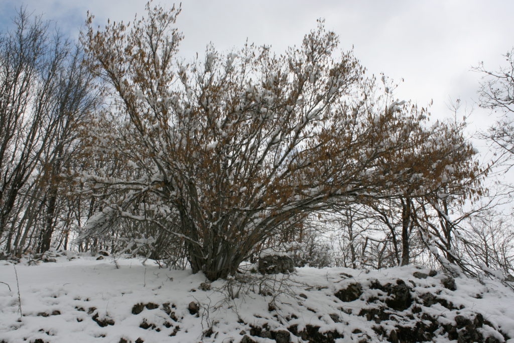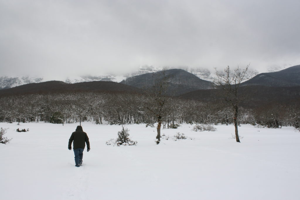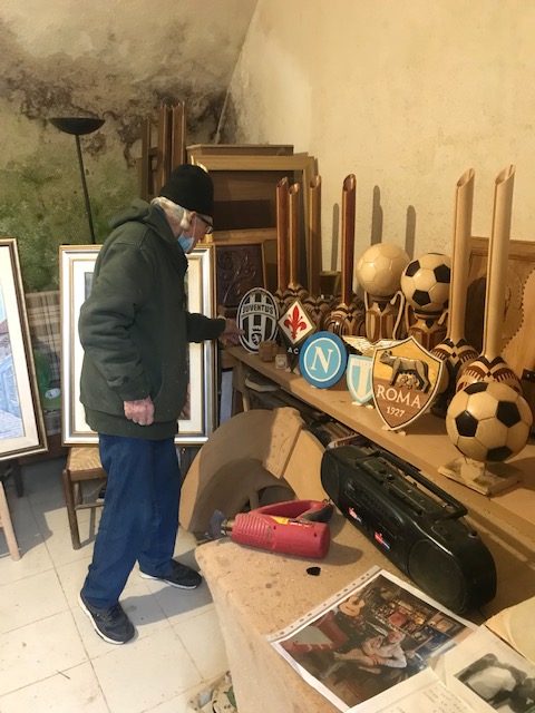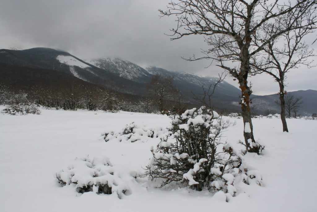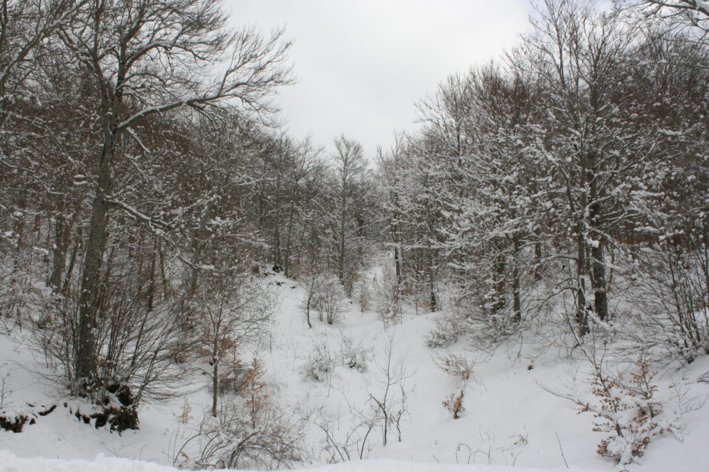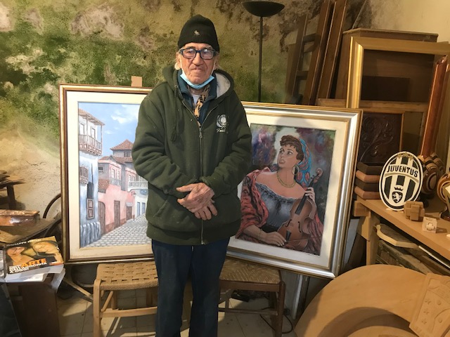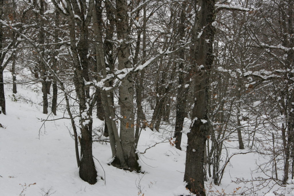 “Sono nato a pane e mazzocche a Secinaro. Si mangiava come meglio trovavi in giro: patate per esempio. Andavi in campagna, si raccoglieva tutto, anche le sorbe per sfamarsi. La polenta si preparava dentro il caldaio al camino. Si accendeva il fuoco. La farina di granturco si prendeva al mulino di Gagliano Aterno (elettrico). Anche a Molina lungo il fiume Aterno c’erano due mulini con le macine in pietra mosse dall’acqua che frantumavano grano e granturco. Il mugnaio voleva dieci chili per un quintale di farina di granturco. Con il setaccio la farina si doveva filtrare, ma molte famiglie la mangiavano anche con la crusca. La polenta si girava nel caldaio per farla impastare almeno per un’ora. Si metteva sopra la “spianatora” in legno, non c’erano i piatti, anche dentro il bacile smaltato. Si condiva con il grasso di maiale, la ventresca. Del maiale lavorato non si buttava niente. Nei pomodori la ventresca e si condiva così il sugo. Il giorno dopo di nuovo la polenta. Ogni famiglia aveva almeno dieci pecore, dieci capre, due o tre muli o somari per andare in montagna a prendere la legna. Le minestre erano preparate con i fagioli al fuoco del camino, si ammassava la pasta e si ammassavano le sagnette (sopra l’arca di legno) appunto con fagioli. Nella fiera di sant’Agata, il 5 febbraio, a Castelvecchio Subequo si comprava un maialino piccolo, si teneva l’estate e a novembre lo scannavi per la carne, per il fabbisogno della famiglia. Le rape, la cicoria, i finocchi, i cavoli si mettevano in fila, coltivati, per avere una grande produzione. Così i prodotti si vendevano a Rovere, andavi con il somaro e le ceste cariche di ortaggi. Si barattavano con le patate, non c’erano allora i soldi. Si partiva verso L’Aquila, a Fossa prendevamo le lenticchie, ceci, cicerchie e fagioli che si coltivavano lungo il fiume Aterno, e sempre con il baratto. Le pizze dolci si cuocevano sotto il “coppo” del camino con quello che avevi in casa. Allora la neve era tanta, il paese era completamente coperto, non uscivi per lavorare. Si usavano i sacconi come materassi, dentro le foglie di granturco. Le lenzuola in cotone dei sacconi tessuti al telaio in legno e si scaldavano con il ferro da stiro ( in ferro battuto) poggiato sulla brace del camino. In montagna si raccoglievano le fascine di faggio, si vendevano nei paesi. Si partiva verso l’una di notte e si arrivava a Pratola Peligna per barattare le stesse fascine con qualcosa da mangiare. Le famiglie avevano anche sei o sette figli a Secinaro. D’inverno dentro le case si scavava con il piccone per avere altri spazi. Anche i somari si usavano per portare via la rena che si toglieva dalla roccia. Caricata dentro le bigonce in legno si trasportava. La breccia più fine si passava con un setaccio e si utilizzava per sistemare gli intonaci della casa. Dentro le grotte così ricavate si metteva di tutto: patate, mele, maiale ad essiccare, pere, uva e mele cotogne. D’estate al Sirente si costruivano le capanne, al piano della Ghia e a Sacco Sirente. Si restava lì molte settimane per tagliare la legna e trasportarla con i muli. Si mangiavano le minestre con le patate, verdure, cicoria e tutte cotte al caldaio, oppure la zuppa con il pane secco, il pancotto con le foglie di lauro. Dentro le capanne ci dormivano fino a quattro persone”.