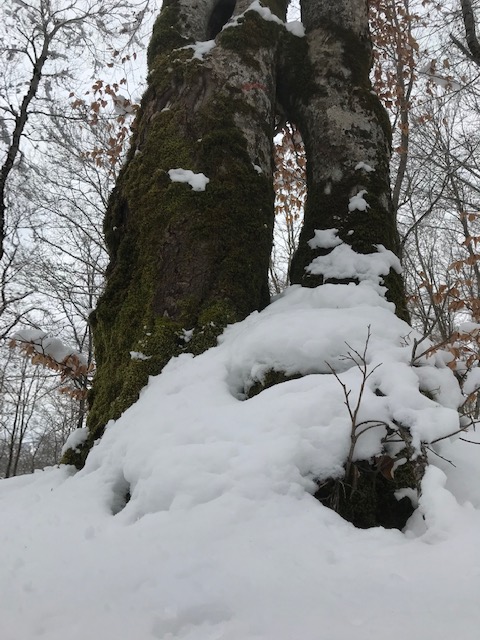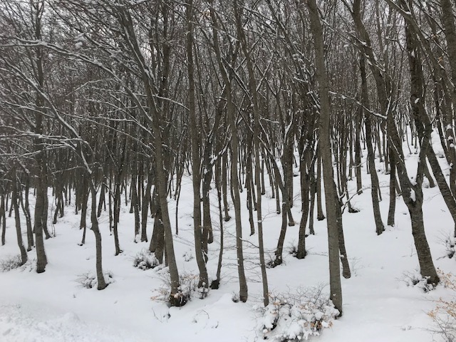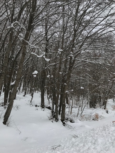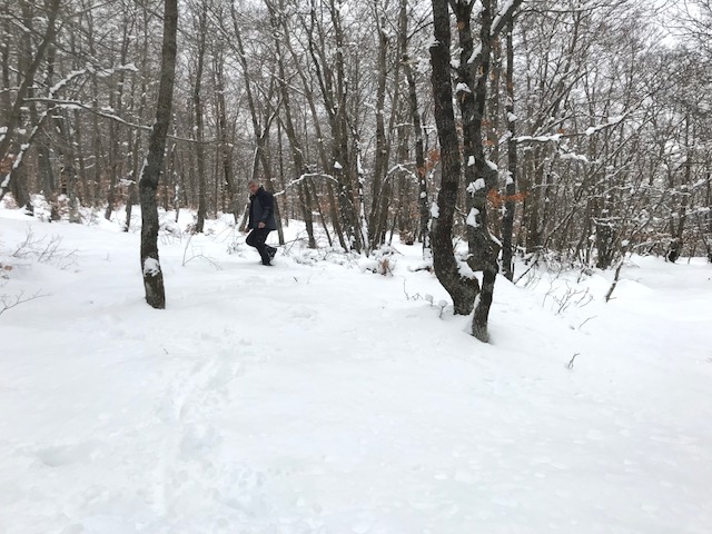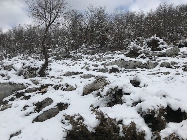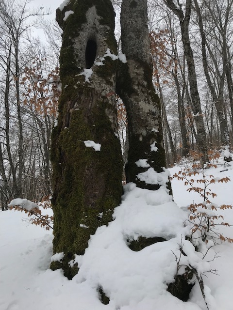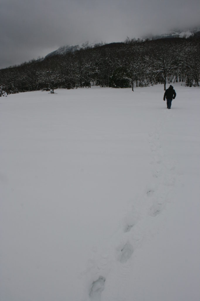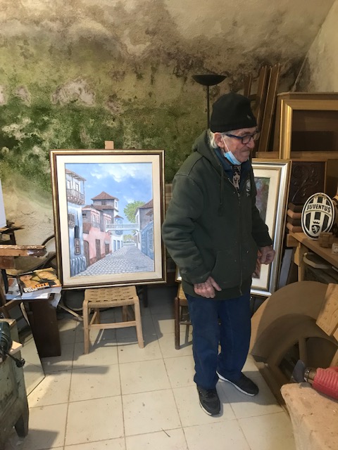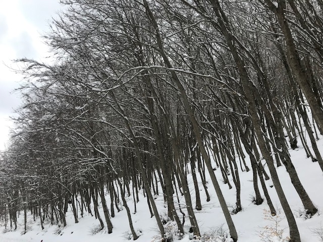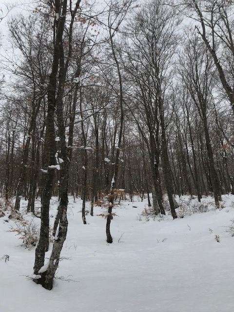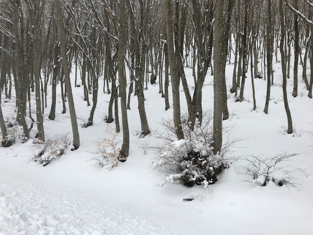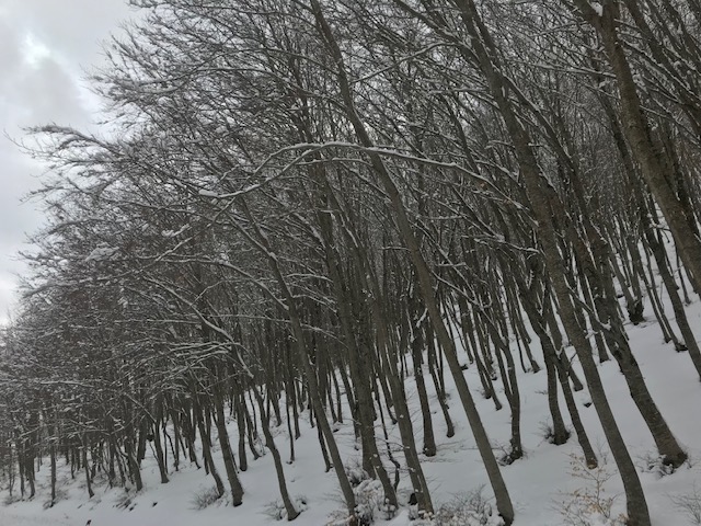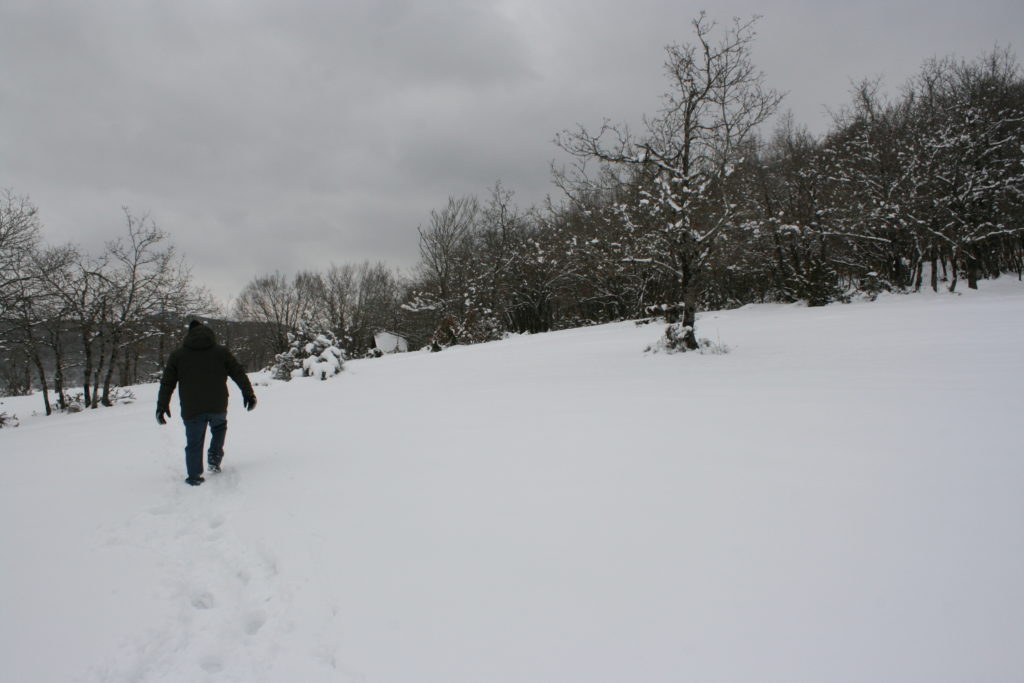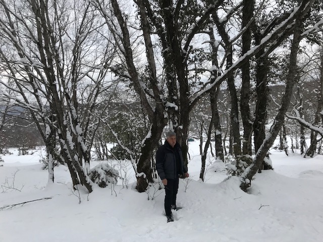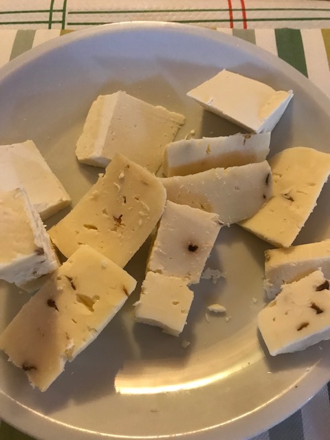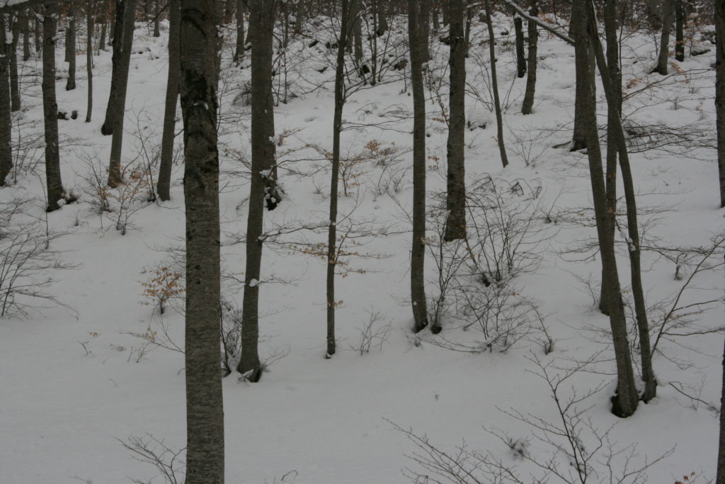 “Sono nato a pane e mazzocche a Secinaro. Si mangiava come meglio trovavi in giro: patate per esempio. Andavi in campagna, si raccoglieva tutto, anche le sorbe per sfamarsi. La polenta si preparava dentro il caldaio al camino. Si accendeva il fuoco. La farina di granturco si prendeva al mulino di Gagliano Aterno (elettrico). Anche a Molina lungo il fiume Aterno c’erano due mulini con le macine in pietra mosse dall’acqua che frantumavano grano e granturco. Il mugnaio voleva dieci chili per un quintale di farina di granturco. Con il setaccio la farina si doveva filtrare, ma molte famiglie la mangiavano anche con la crusca. La polenta si girava nel caldaio per farla impastare almeno per un’ora. Si metteva sopra la “spianatora” in legno, non c’erano i piatti, anche dentro il bacile smaltato. Si condiva con il grasso di maiale, la ventresca. Del maiale lavorato non si buttava niente. Nei pomodori la ventresca e si condiva così il sugo. Il giorno dopo di nuovo la polenta. Ogni famiglia aveva almeno dieci pecore, dieci capre, due o tre muli o somari per andare in montagna a prendere la legna. Le minestre erano preparate con i fagioli al fuoco del camino, si ammassava la pasta e si ammassavano le sagnette (sopra l’arca di legno) appunto con fagioli. Nella fiera di sant’Agata, il 5 febbraio, a Castelvecchio Subequo si comprava un maialino piccolo, si teneva l’estate e a novembre lo scannavi per la carne, per il fabbisogno della famiglia. Le rape, la cicoria, i finocchi, i cavoli si mettevano in fila, coltivati, per avere una grande produzione. Così i prodotti si vendevano a Rovere, andavi con il somaro e le ceste cariche di ortaggi. Si barattavano con le patate, non c’erano allora i soldi. Si partiva verso L’Aquila, a Fossa prendevamo le lenticchie, ceci, cicerchie e fagioli che si coltivavano lungo il fiume Aterno, e sempre con il baratto. Le pizze dolci si cuocevano sotto il “coppo” del camino con quello che avevi in casa. Allora la neve era tanta, il paese era completamente coperto, non uscivi per lavorare. Si usavano i sacconi come materassi, dentro le foglie di granturco. Le lenzuola in cotone dei sacconi tessuti al telaio in legno e si scaldavano con il ferro da stiro ( in ferro battuto) poggiato sulla brace del camino. In montagna si raccoglievano le fascine di faggio, si vendevano nei paesi. Si partiva verso l’una di notte e si arrivava a Pratola Peligna per barattare le stesse fascine con qualcosa da mangiare. Le famiglie avevano anche sei o sette figli a Secinaro. D’inverno dentro le case si scavava con il piccone per avere altri spazi. Anche i somari si usavano per portare via la rena che si toglieva dalla roccia. Caricata dentro le bigonce in legno si trasportava. La breccia più fine si passava con un setaccio e si utilizzava per sistemare gli intonaci della casa. Dentro le grotte così ricavate si metteva di tutto: patate, mele, maiale ad essiccare, pere, uva e mele cotogne. D’estate al Sirente si costruivano le capanne, al piano della Ghia e a Sacco Sirente. Si restava lì molte settimane per tagliare la legna e trasportarla con i muli. Si mangiavano le minestre con le patate, verdure, cicoria e tutte cotte al caldaio, oppure la zuppa con il pane secco, il pancotto con le foglie di lauro. Dentro le capanne ci dormivano fino a quattro persone”.