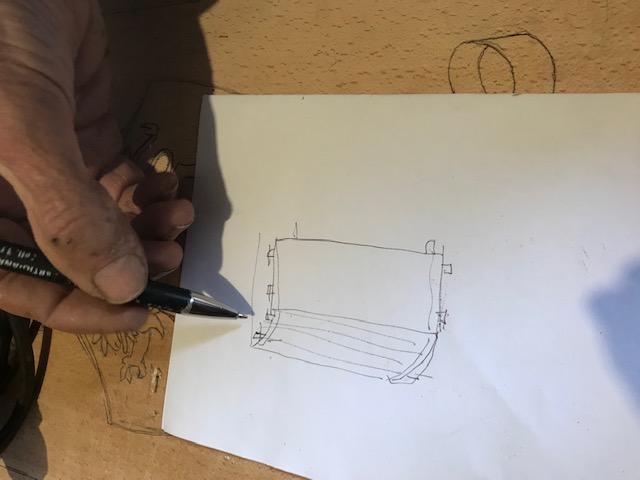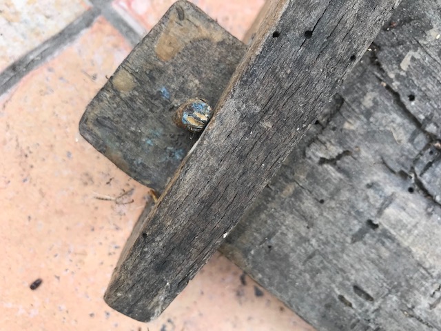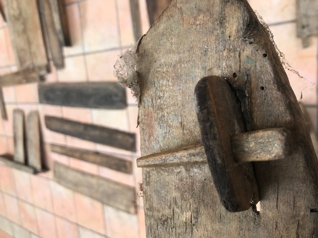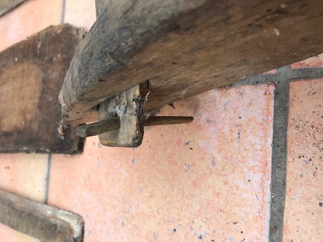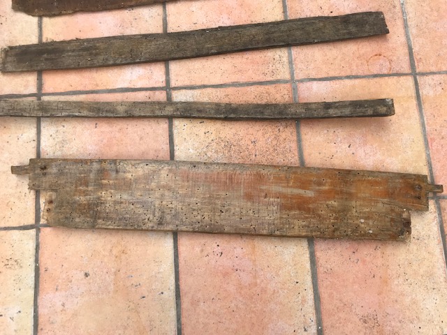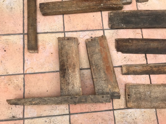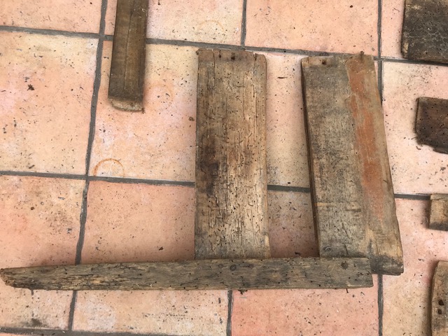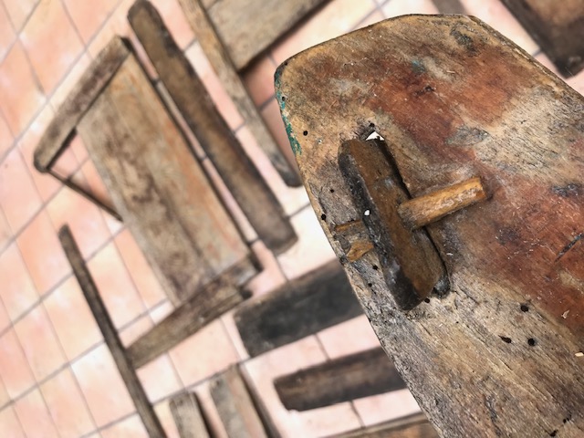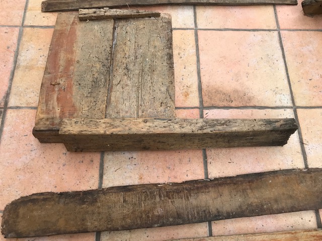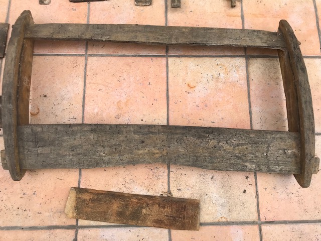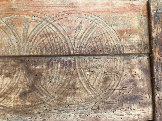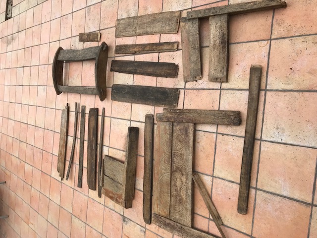 Nel piazzale della casa dei fratelli Barbari a Secinaro l’arca in legno di faggio aperta e scomposta in attesa del restauro. L’arca è stata costruita intorno al 1890.