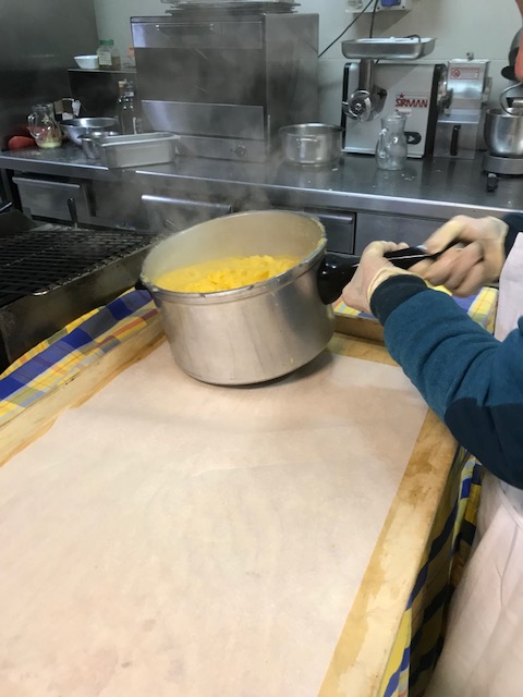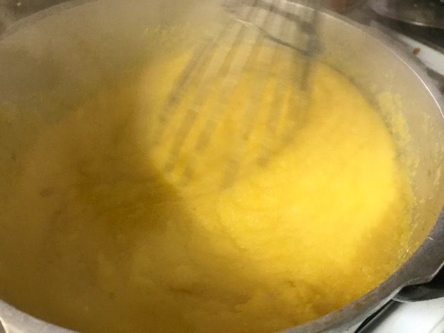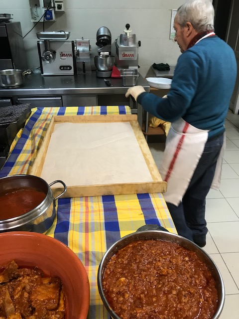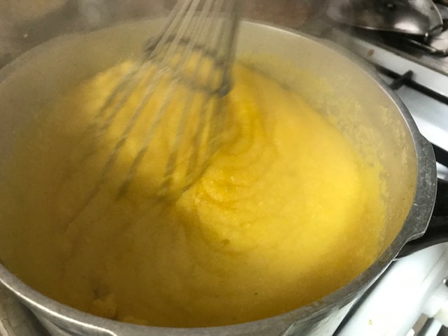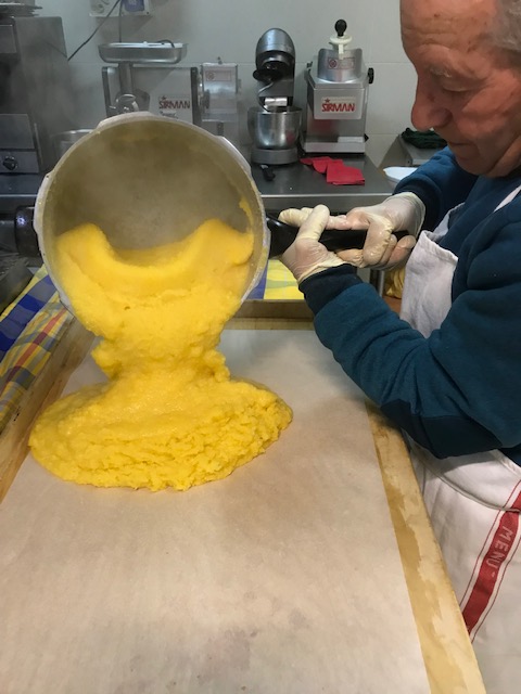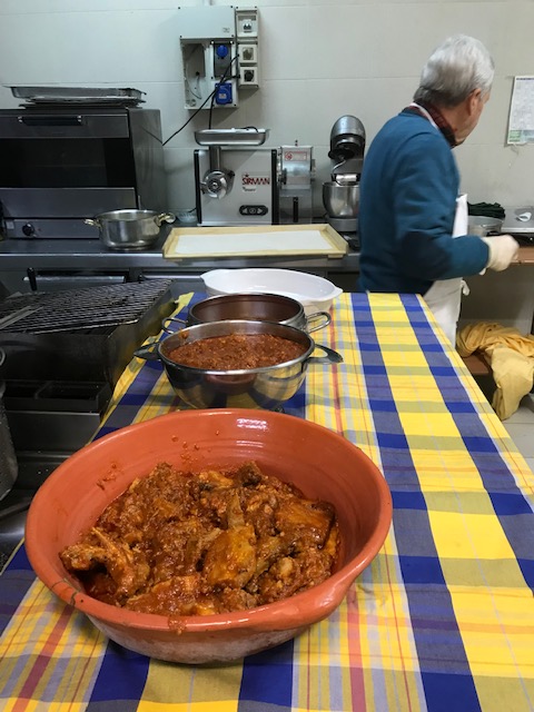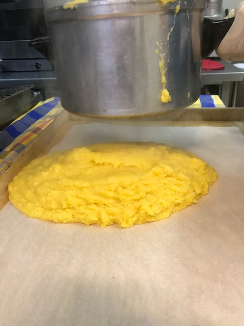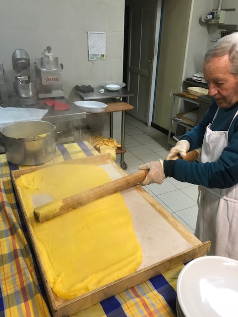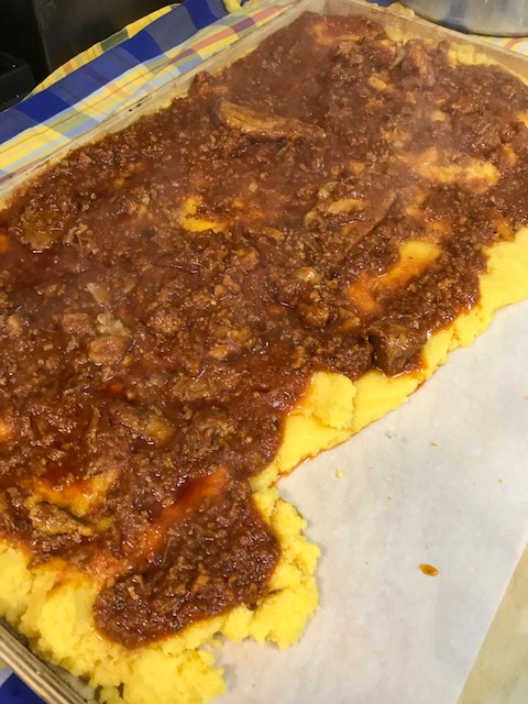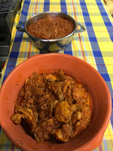 Polenta con il sugo, salsicce, spuntature di maiale, brodo con carote e cipolle.