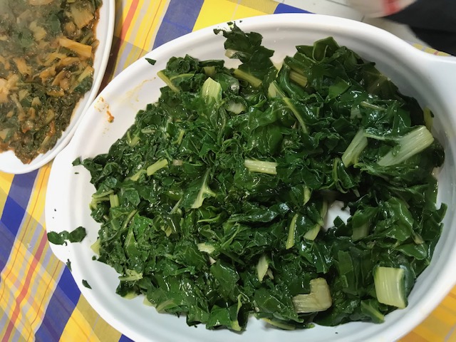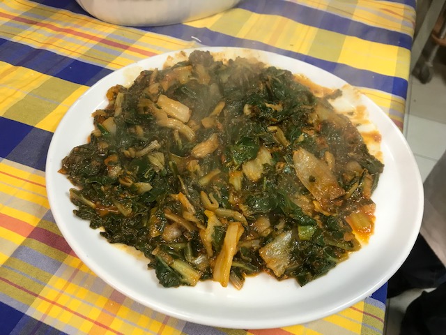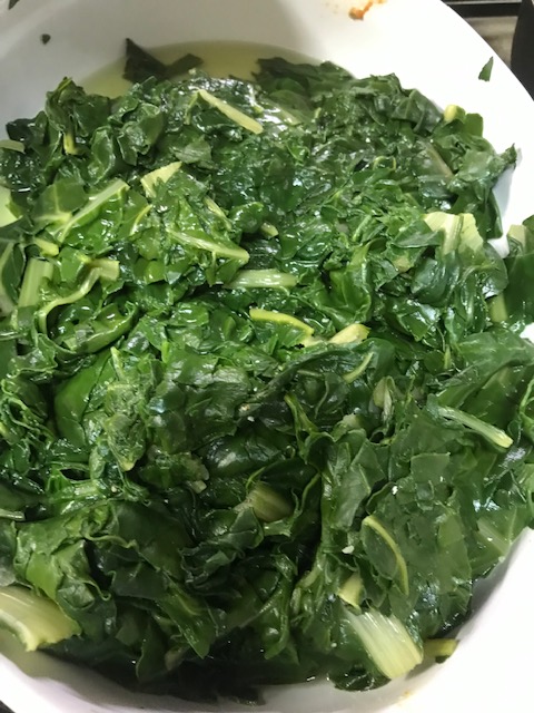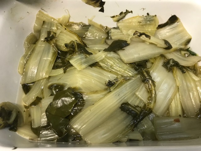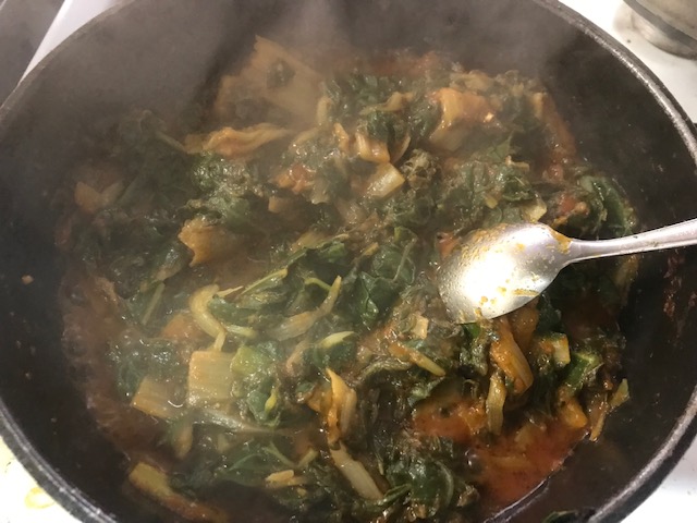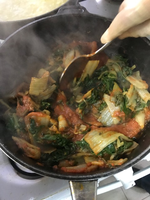 Cresta della bieta con il pomodoro e aromatizzato con erbe aromatiche.