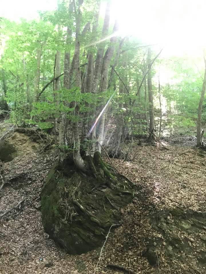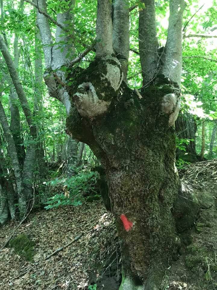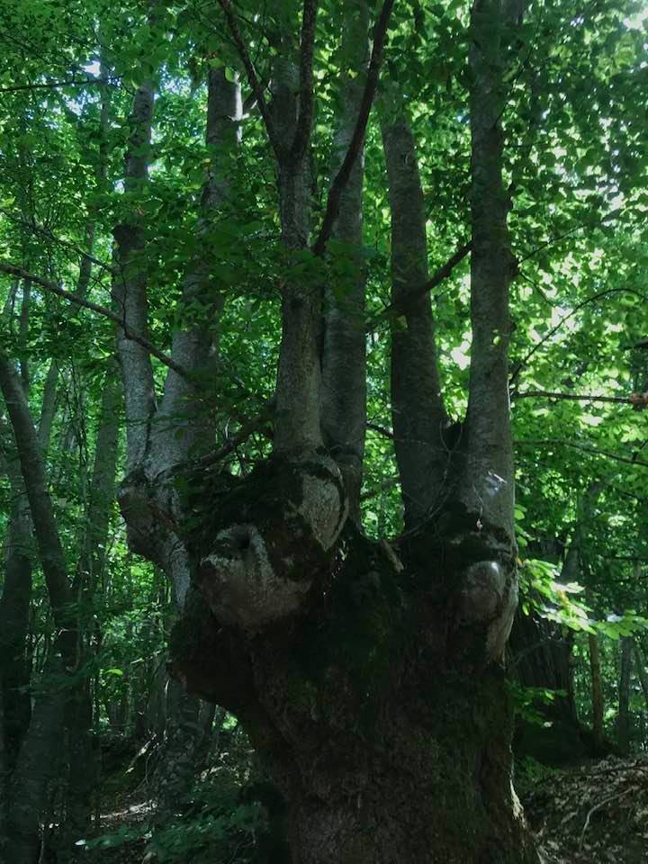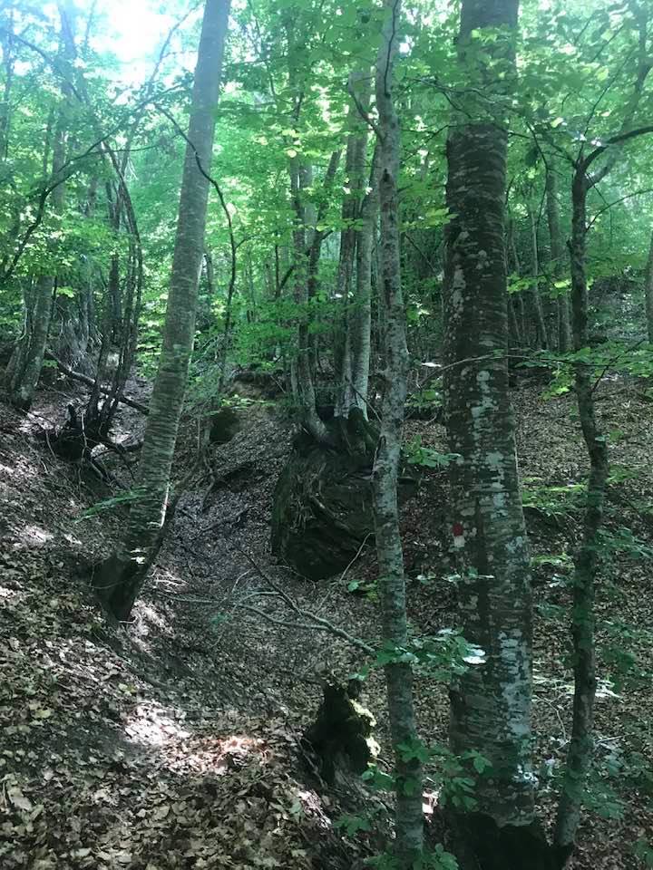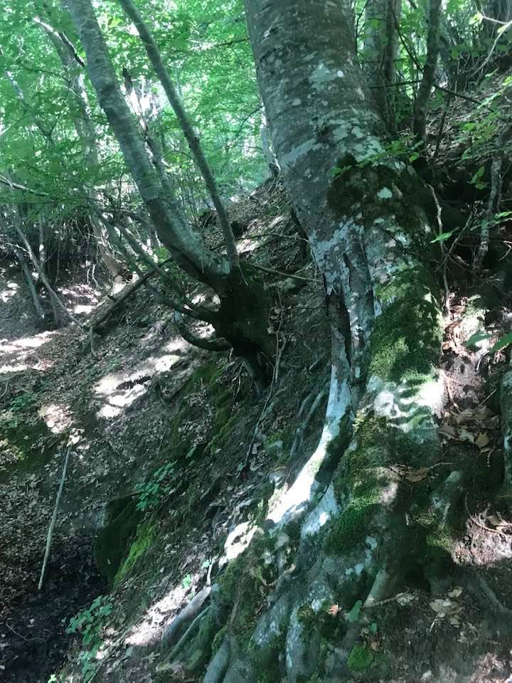 La grande foresta di Patrignone, nell’Alto Aterno poggia, partendo dal suo culmine altimetrico, per poi scendere a macchia su un’estensione di centinaia di ettari tra le regioni Lazio e Abruzzo. Complesso e difficile da attraversare con livelli di criticità per l’orientamento (se si lascia la breve sentieristica), l’intero bosco è senza più punti di riferimento, domicilio di numerosi branchi di cinghiali sempre più numerosi che si dimostrano pericolosamente aggressivi in presenza dei propri cuccioli, sconfinato e avvolgente che non mette a riparo in relazione al sottobosco, all’estensione fitta degli alberi e i continui cambiamenti di quota tra valloni, incisioni strette, cavità naturali, rocce e insenature del terreno scivoloso di arenaria che raccoglie le acque e le incanala in un habitat naturale inestricabile per i camminamenti. Entrare nel bosco significa farsi largo con gli utensili per il taglio dei rami e fronde. Patrignone è un esempio di bio-diversità tra le faggete secolari, cerrete, castagneti, sorgenti e polle d’acqua appunto, zone umide diffuse, in una quota tra i 900 e i 1300 metri nei territori comunali di Cittareale (RI) e di Montereale (AQ). La foresta prende il nome dall’antico feudo di Patrignone e poi dal borgo scomparso a seguito dell’incastellamento nell’Alto medioevo. Un accesso al bosco è a Colle Verrico, passaggio naturale e corridoio faunistico dei lupi. La fauna presente nel bosco: tassi, volpi, istrice, cervi e i numerosi uccelli tra cui l’Aquila. Colle Verrico, inoltre, oltre che sito storico precedente gli insediamenti Alto medievali nell’area del bosco di Patrignone, valico e passaggio accidentato nella Conca Aquilana dal Lazio, fu ricovero dei briganti nell’Italia preunitaria. Il borgo di Colle Verrico che è stato costruito con pietra arenaria lavorata agilmente per sue caratteristiche, propone oggi e certifica una qualità alimentare nei cibi e nella gastronomia che non ha mutato le antiche lavorazioni artigianali della cultura locale nelle paste, il pane di granì locali, nelle carni, patate, formaggi e latticini, legumi, cereali prodotti dei campi aperti tra la boscaglia, oltre l’allevamento delle api e il miele in un’area integra. Infine gli orti con la varietà biologica di stagione e le confetture di frutti di bosco largamente presenti.
