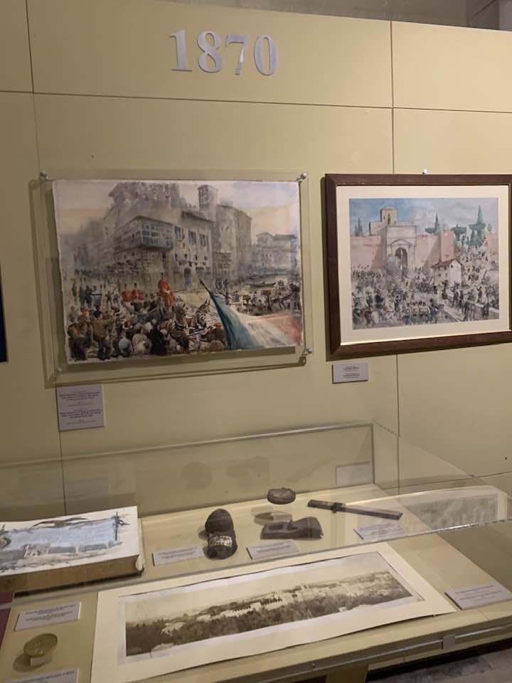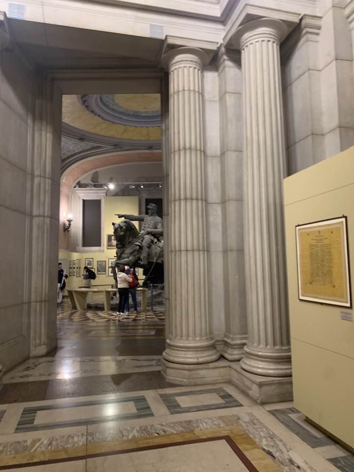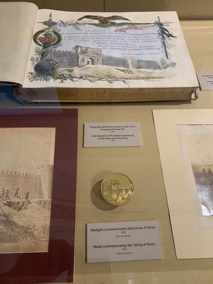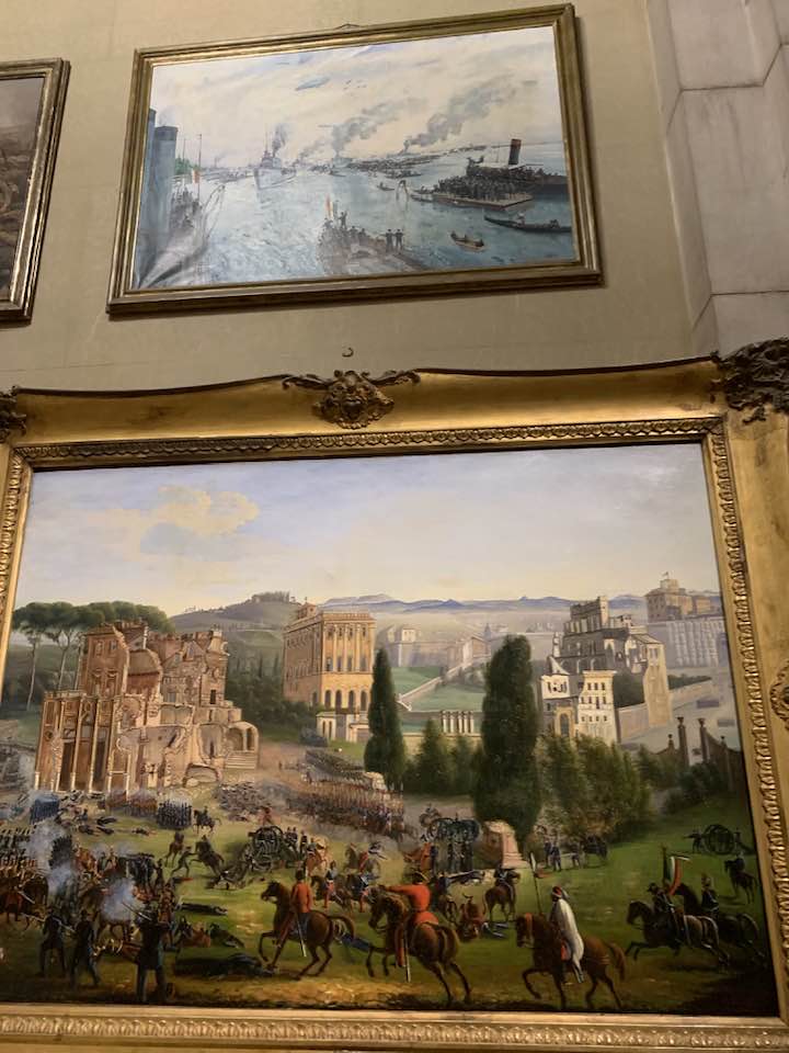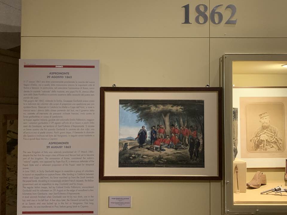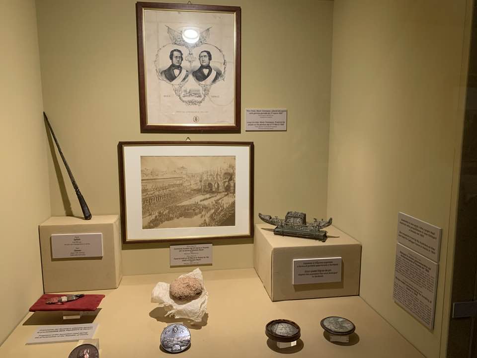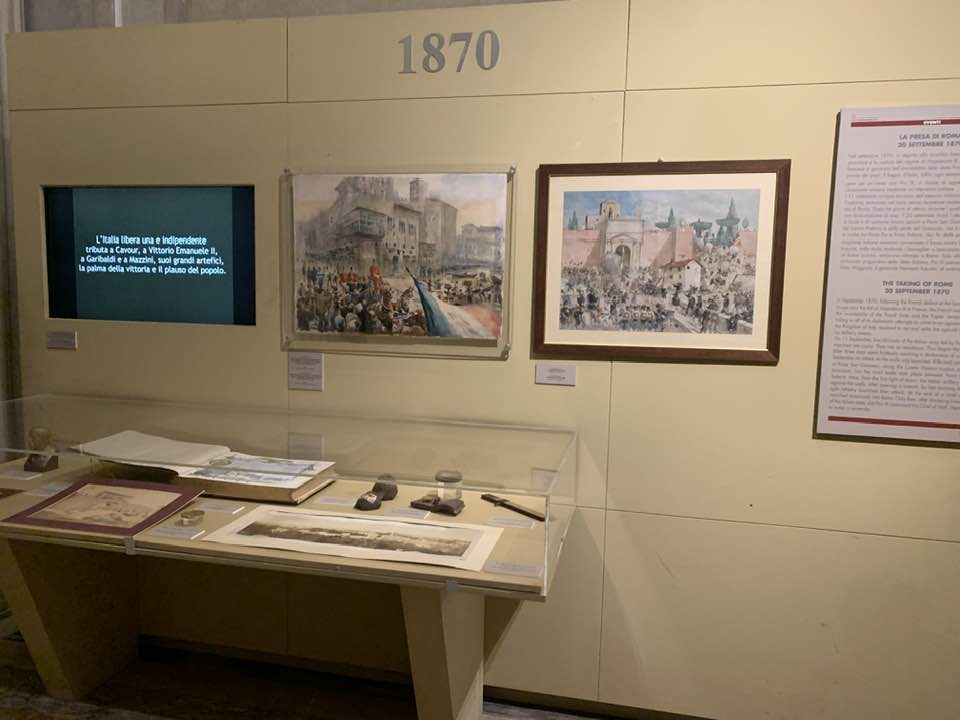 Giuseppe Mazzini ma soprattutto Garibaldi ( il suo stivale forato da una pallottola nella battaglia dell’Aspromonte che lo ferì al malleolo destro il 29 agosto 1862), nei diari, sculture, cimeli, lettere e armi dell’epopea del Risorgimento. In particolare l’abbigliamento di Garibaldi, la sua barella per portarlo in salvo, le “relique” laiche dell’eroe dei Due Mondi, le biografie dei “Mille” e l’album delle loro immagini che li celebrano. La breccia di Porta Pia, le lettere di Mazzini, il calco del viso di Cavour e tanto altro nell’esposizione del Vittoriano. Dal Settecento italiano fino alla Prima guerra mondiale. La liberazione dell’Italia è centrale nell’esposizione permanente del museo del Risorgimento.