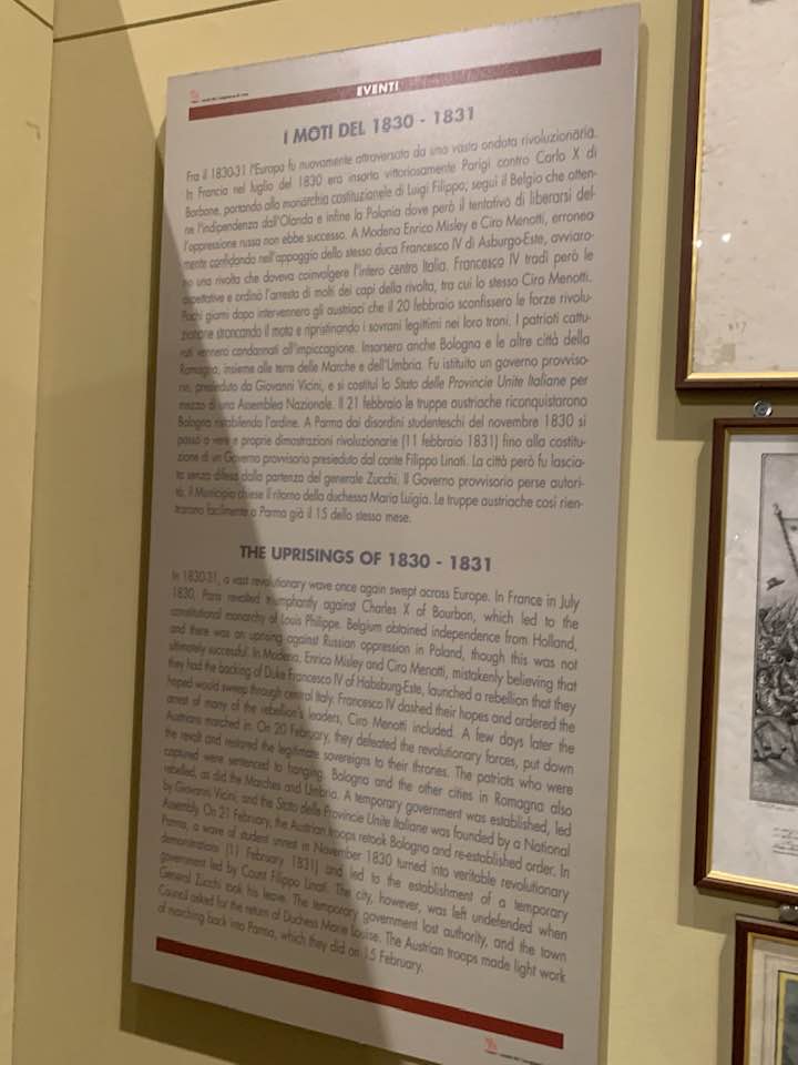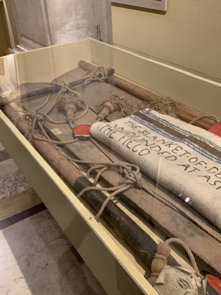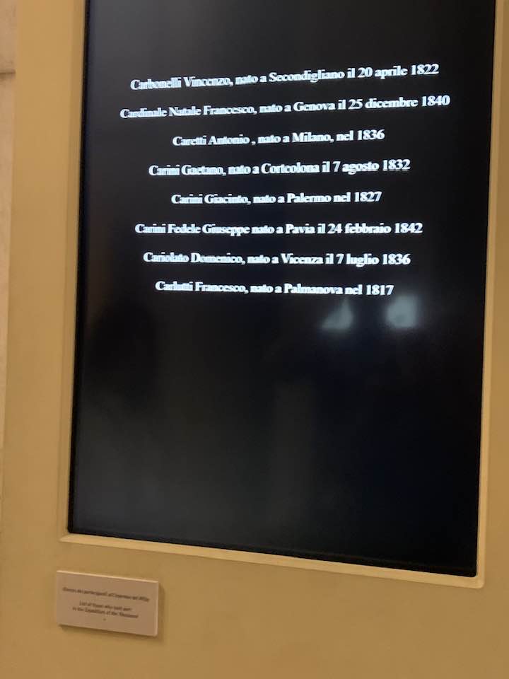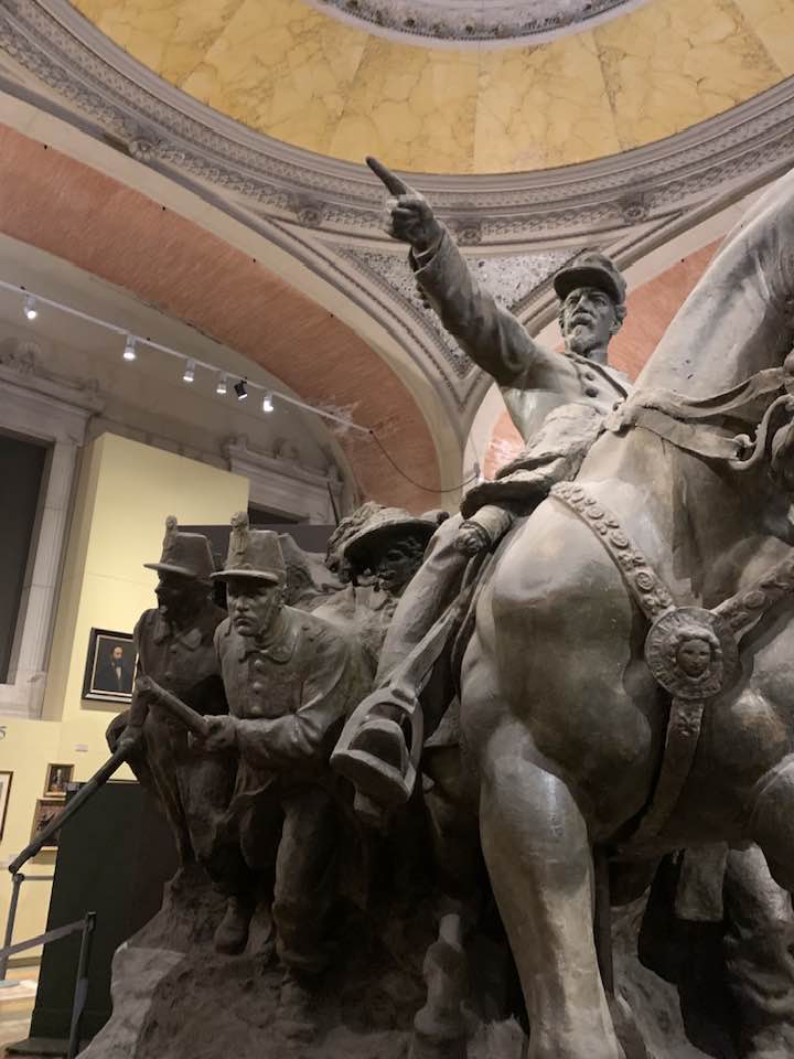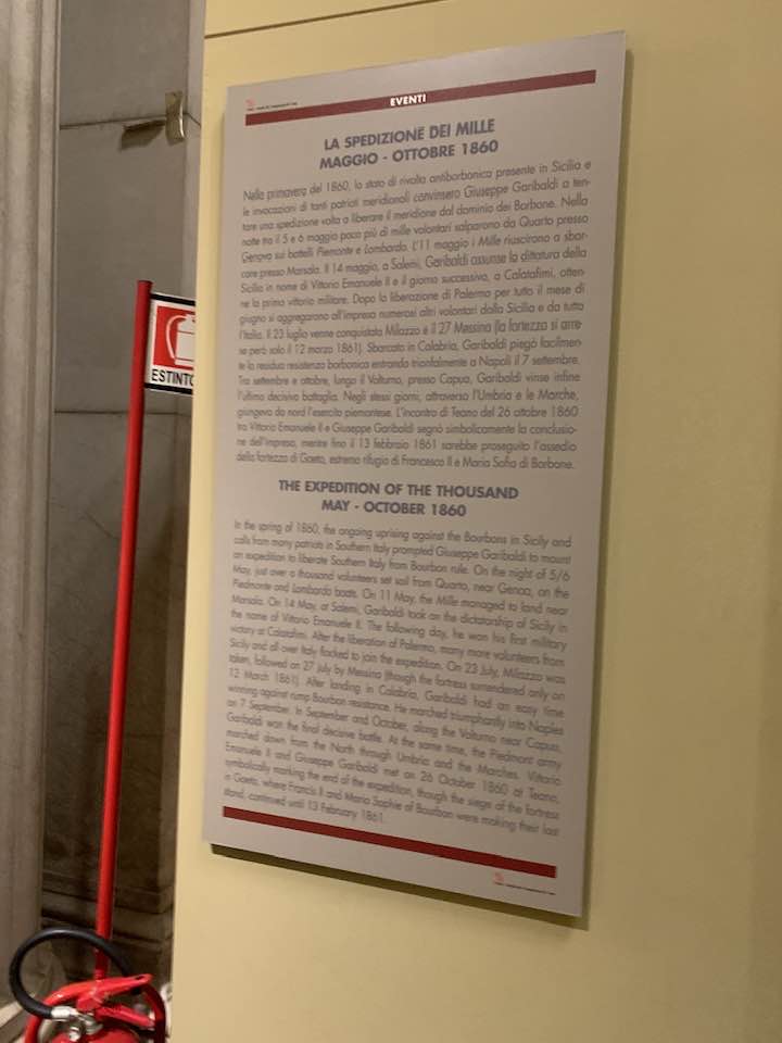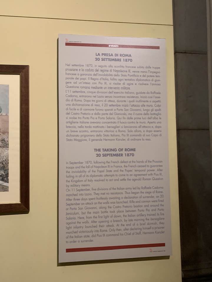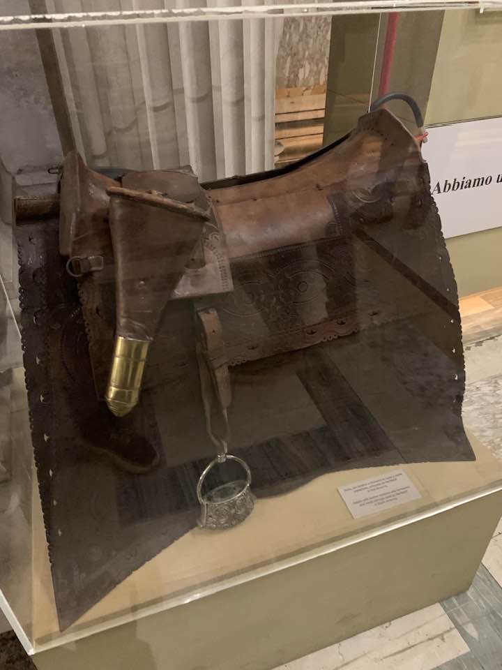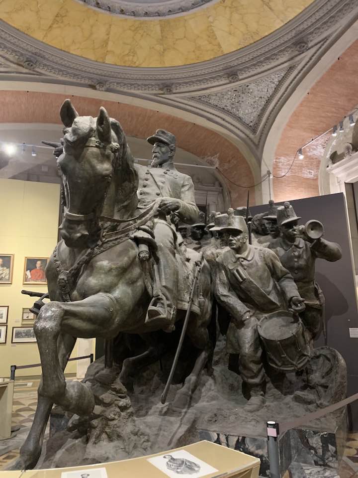 Giuseppe Mazzini ma soprattutto Garibaldi ( il suo stivale forato da una pallottola nella battaglia dell’Aspromonte che lo ferì al malleolo destro il 29 agosto 1862), nei diari, sculture, cimeli, lettere e armi dell’epopea del Risorgimento. In particolare l’abbigliamento di Garibaldi, la sua barella per portarlo in salvo, le “relique” laiche dell’eroe dei Due Mondi, le biografie dei “Mille” e l’album delle loro immagini che li celebrano. La breccia di Porta Pia, le lettere di Mazzini, il calco del viso di Cavour e tanto altro nell’esposizione del Vittoriano. Dal Settecento italiano fino alla Prima guerra mondiale. La liberazione dell’Italia è centrale nell’esposizione permanente del museo del Risorgimento.