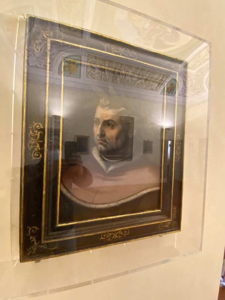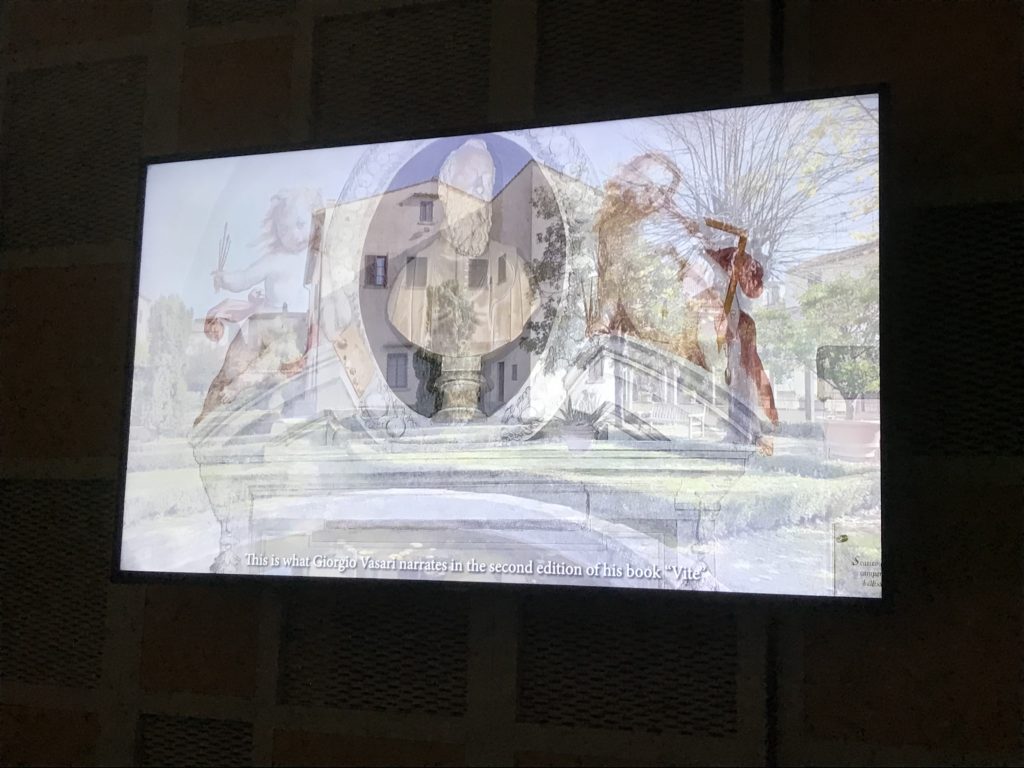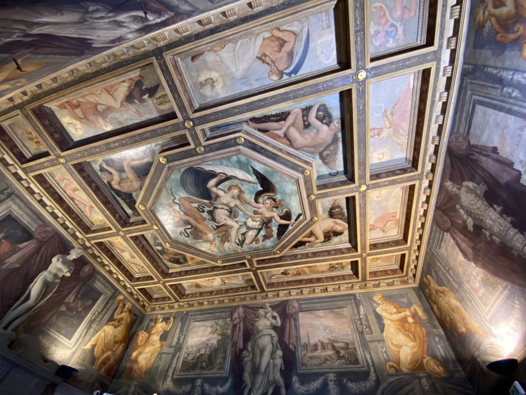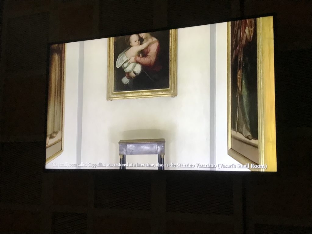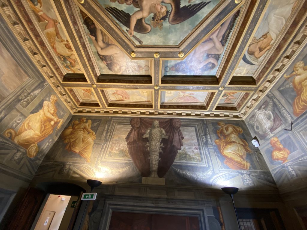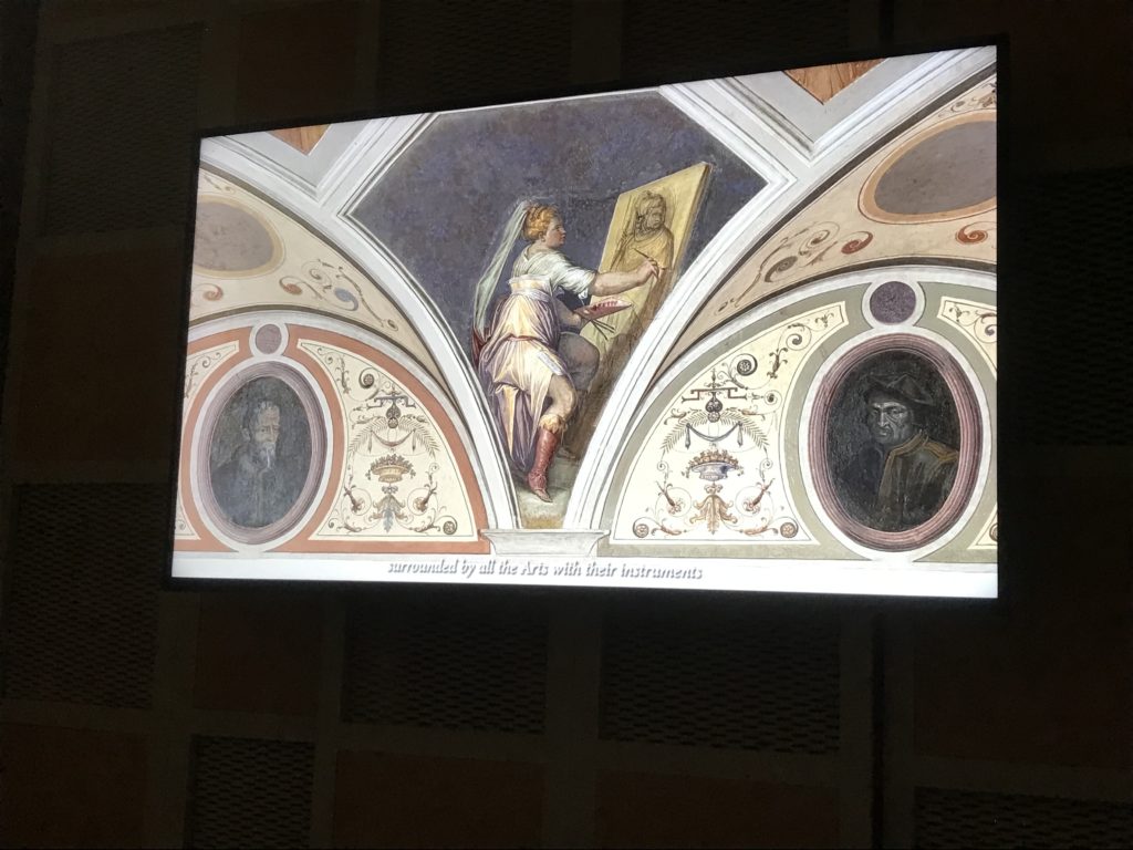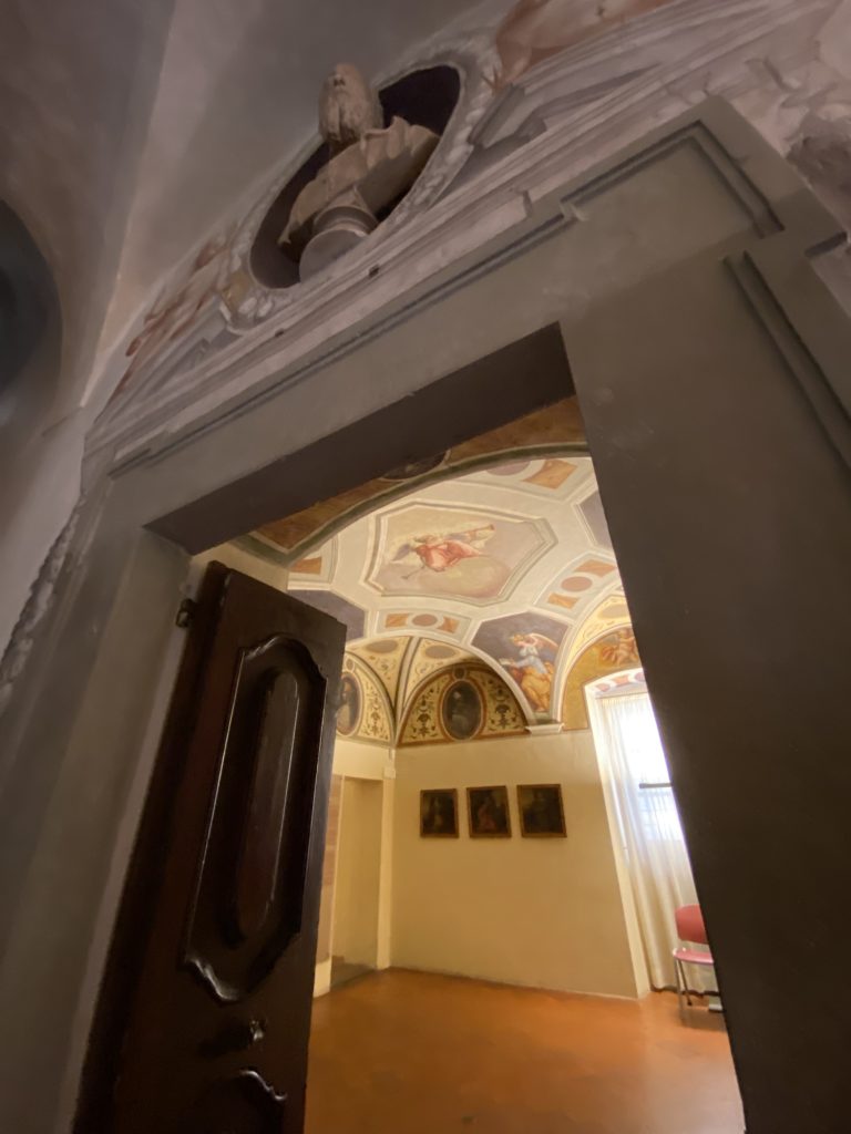 Nel borgo di San Vito la casa di Giorgio Vasari acquistata nel 1541, oggi sede museale dell’impronta visiva pittorica lasciata dall’artista. Costruita su tre piani la casa, organizzata per la servitù al primo e secondo piano. L’ultimo piano nobile la sua dimora privata. Intorno all’edificio un giardino all’italiana, rinascimentale, geometrico con siepi e una veduta sul borgo di Arezzo. Le decorazioni pittoriche della casa sono state realizzate da Vasari attento a celebrare e a evidenziare i simboli iconografici del proprio tempo con il contributo anche dei suoi amici aretini. Architetto, storico dell’arte e pittore, Giorgio Vasari affresca così le stanze a partire dal 1542. Il gusto manierista è visibile soprattutto nella quadreria con circa sessanta dipinti eseguiti da lui e dai suoi collaboratori. Al piano nobile, tramite una scalinata, con il busto di Vasari, si entra nella stanza del camino. L’artista affresca il luogo a partire dal 1548 con i temi: “Cacciata dell’Invidia” e della “Fortuna” da parte delle Virtù. La visione di questa pittura metafora della vita è nel soffitto a cassettone e nelle pareti appunto con figure allegoriche, paesaggi, storie eroiche dell’antichità, poi la “Cappellina” con la Madonna e Fra Paolino e il pavimento in maiolica del XVI secolo. Il tardo manierismo è presente nel corridoio con le sue visioni apocalittiche. La camera nuziale con il soffitto decorato da Vasari di Abramo tra le immagini del mondo, della “Pace”, la “Concordia”, le “Virtù” e la “Modestia”. La “Camera di Apollo” fu affrescata dall’artista è rappresenta Apollo e le nove muse con l’allegoria dell’amore, il ritratto della moglie Nicolosa Bacci. Nella camera della “Fama”, Vasari dipinse nel soffitto appunto il suo intendimento sulla “Fama” e nei peducci e lunette le quattro arti, il suo ritratto e degli artisti aretini: Signorelli, Della Gatta, Spinello, Aretino con Michelangelo e Andrea del Sarto. I contenuti allegorici e pittorici, la consistente visione continua e avvolgente della cosmologia dei miti antichi attualizzati, la narrazione insita dell’affresco, la visione manierista di un mondo bucolico e possibile per averlo vicino e condividerlo, fanno di Vasari un attento studioso e documentarista che attinge le sue conoscenze ai testi antichi per realizzare uno scenario così inedito e dettagliato nelle ragioni che afferma, esclusivo di una pittura commemorative e manierista che non ha eguali. Pitture murali sulle volte e sulle pareti, dipinti su tavola che Vasari realizza a più riprese nella sua abitazione decorata che vivacizza il suo pensiero e lo tiene costantemente aperto alla bellezza e al sogno dell’arte senza barriere.
