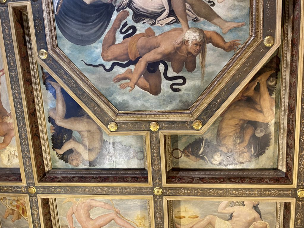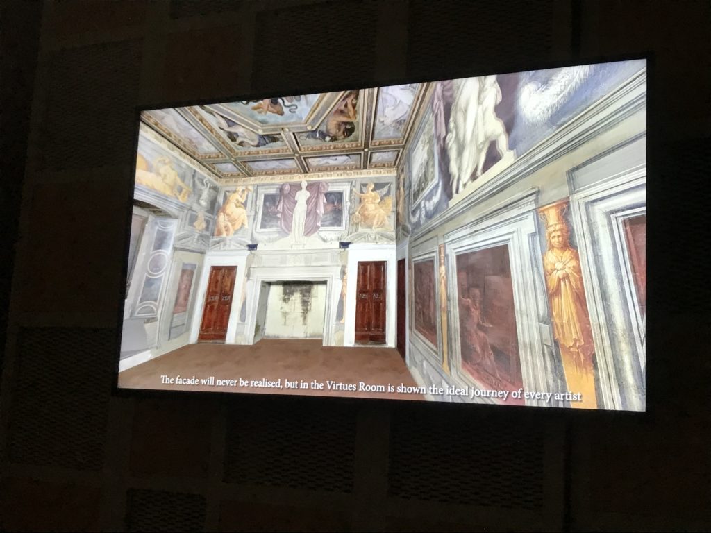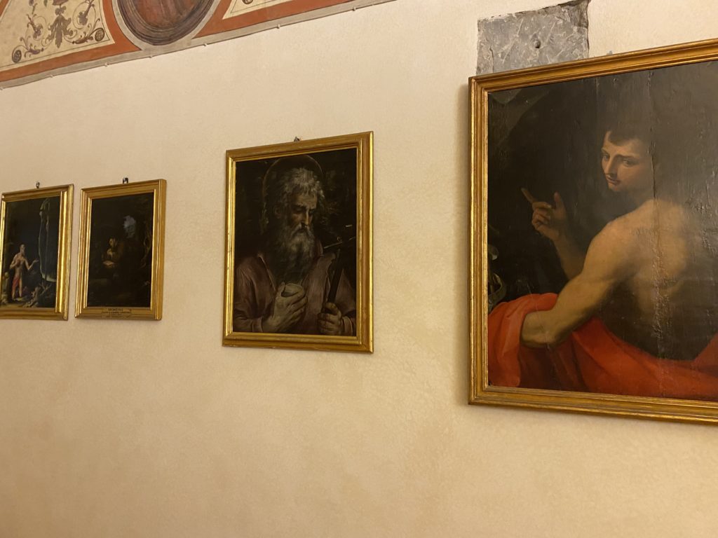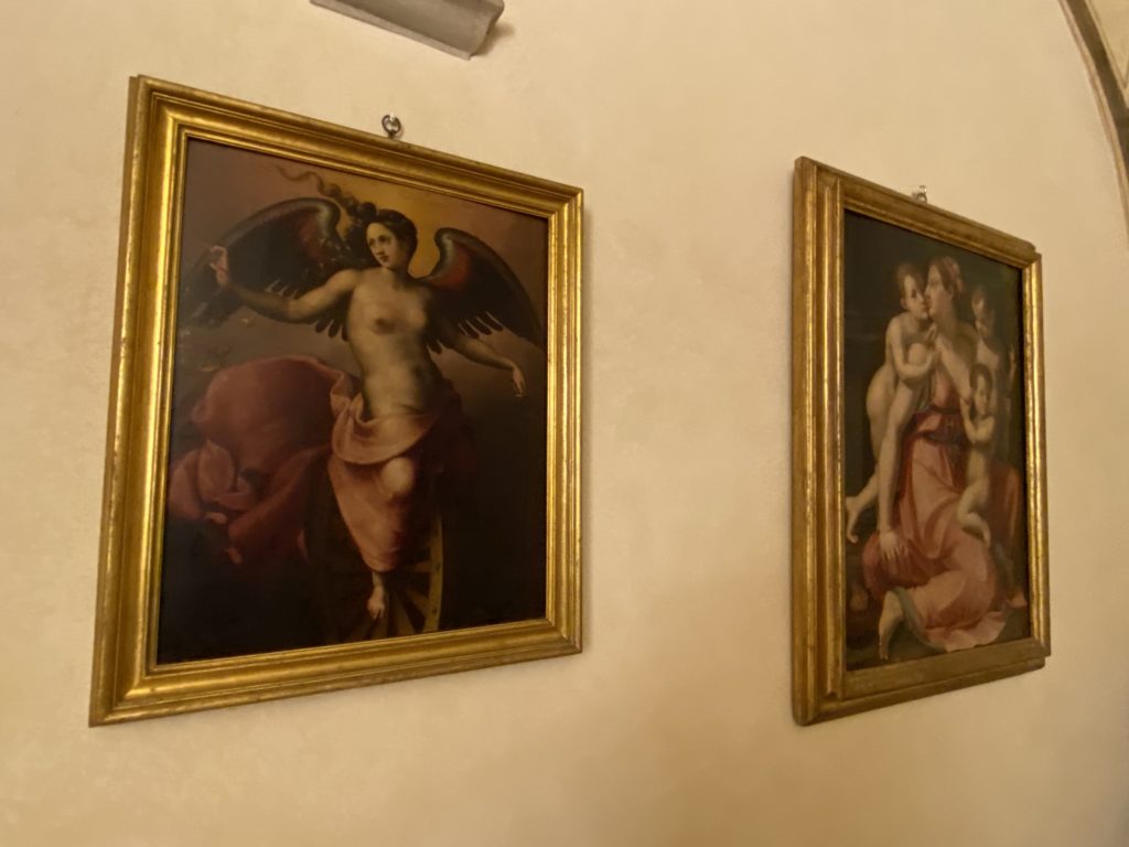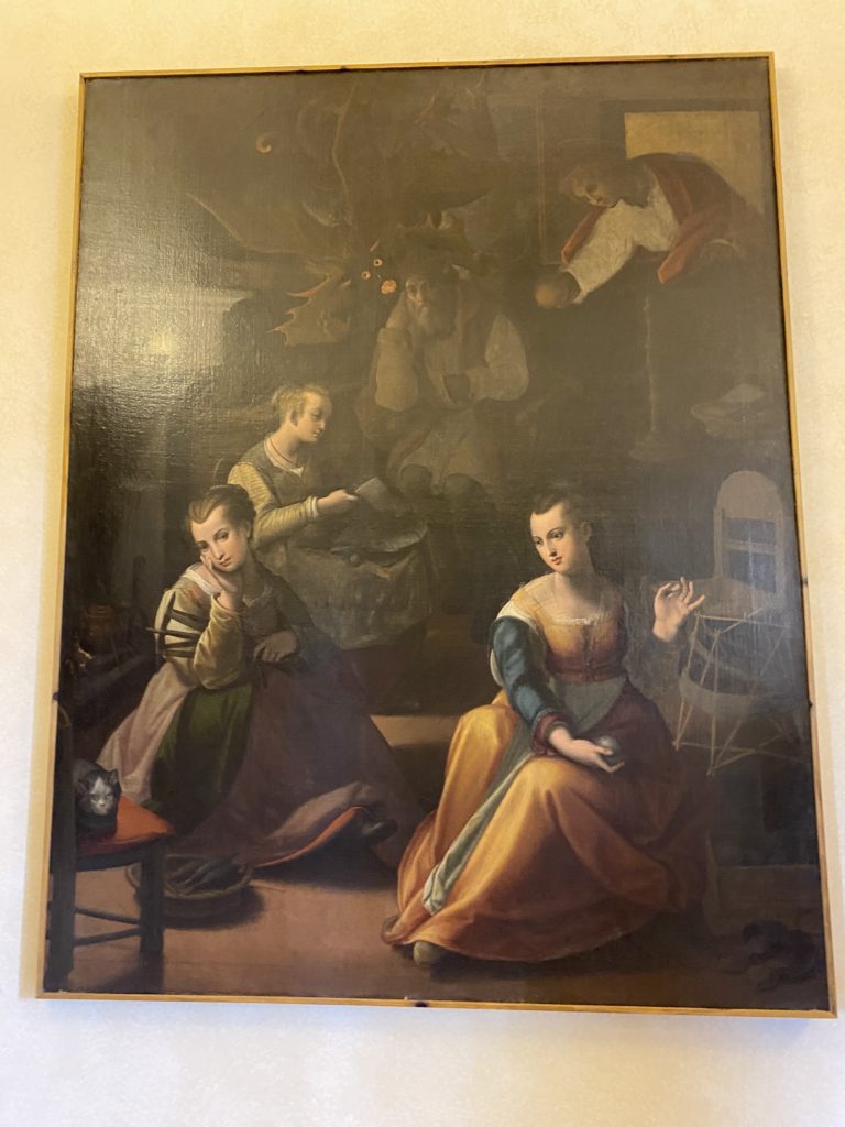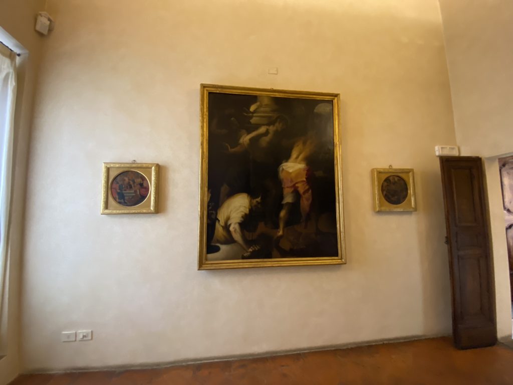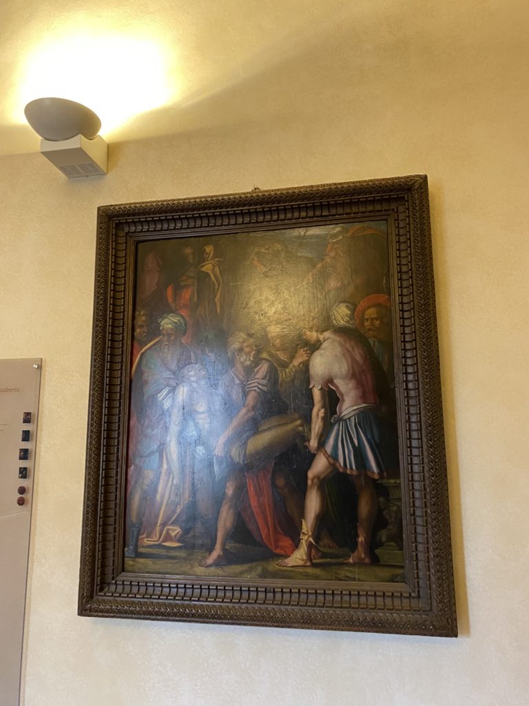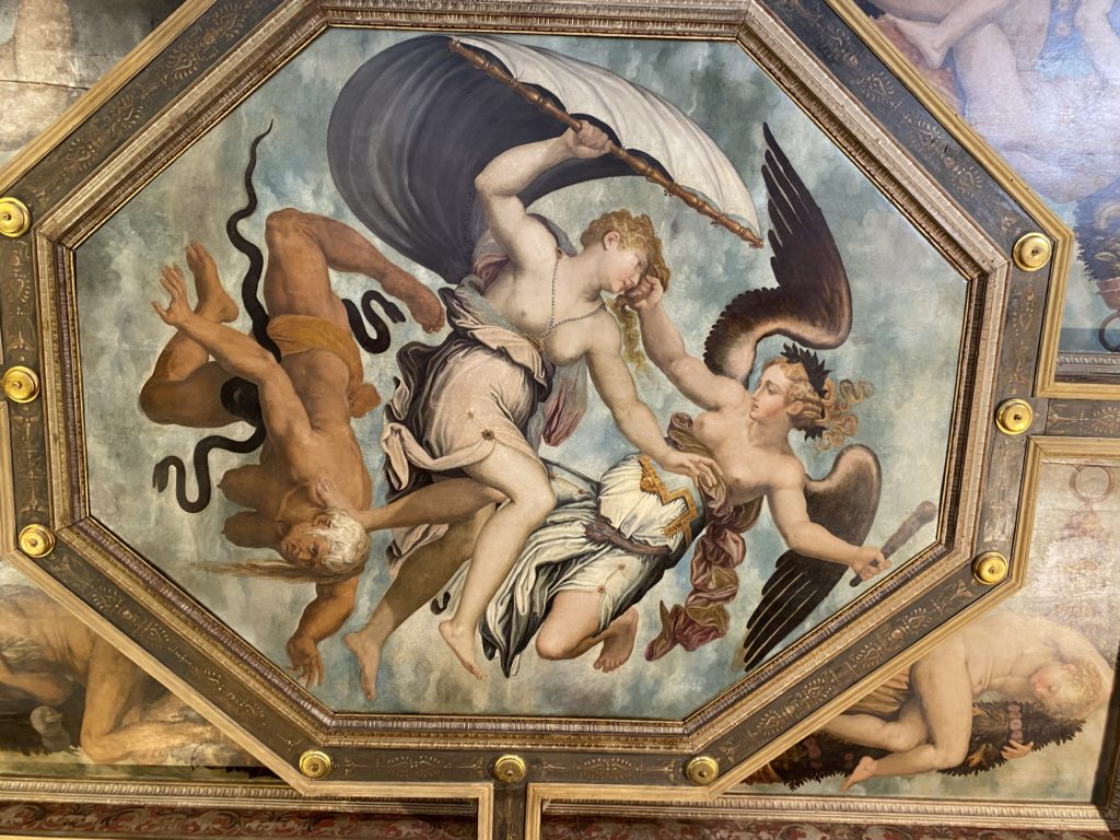Nel borgo di San Vito la casa di Giorgio Vasari acquistata nel 1541, oggi sede museale dell’impronta visiva pittorica lasciata dall’artista. Costruita su tre piani la casa, organizzata per la servitù al primo e secondo piano. L’ultimo piano nobile la sua dimora privata. Intorno all’edificio un giardino all’italiana, rinascimentale, geometrico con siepi e una veduta sul borgo di Arezzo. Le decorazioni pittoriche della casa sono state realizzate da Vasari attento a celebrare e a evidenziare i simboli iconografici del proprio tempo con il contributo anche dei suoi amici aretini. Architetto, storico dell’arte e pittore, Giorgio Vasari affresca così le stanze a partire dal 1542. Il gusto manierista è visibile soprattutto nella quadreria con circa sessanta dipinti eseguiti da lui e dai suoi collaboratori. Al piano nobile, tramite una scalinata, con il busto di Vasari, si entra nella stanza del camino. L’artista affresca il luogo a partire dal 1548 con i temi: “Cacciata dell’Invidia” e della “Fortuna” da parte delle Virtù. La visione di questa pittura metafora della vita è nel soffitto a cassettone e nelle pareti appunto con figure allegoriche, paesaggi, storie eroiche dell’antichità, poi la “Cappellina” con la Madonna e Fra Paolino e il pavimento in maiolica del XVI secolo. Il tardo manierismo è presente nel corridoio con le sue visioni apocalittiche. La camera nuziale con il soffitto decorato da Vasari di Abramo tra le immagini del mondo, della “Pace”, la “Concordia”, le “Virtù” e la “Modestia”. La “Camera di Apollo” fu affrescata dall’artista è rappresenta Apollo e le nove muse con l’allegoria dell’amore, il ritratto della moglie Nicolosa Bacci. Nella camera della “Fama”, Vasari dipinse nel soffitto appunto il suo intendimento sulla “Fama” e nei peducci e lunette le quattro arti, il suo ritratto e degli artisti aretini: Signorelli, Della Gatta, Spinello, Aretino con Michelangelo e Andrea del Sarto. I contenuti allegorici e pittorici, la consistente visione continua e avvolgente della cosmologia dei miti antichi attualizzati, la narrazione insita dell’affresco, la visione manierista di un mondo bucolico e possibile per averlo vicino e condividerlo, fanno di Vasari un attento studioso e documentarista che attinge le sue conoscenze ai testi antichi per realizzare uno scenario così inedito e dettagliato nelle ragioni che afferma, esclusivo di una pittura commemorative e manierista che non ha eguali. Pitture murali sulle volte e sulle pareti, dipinti su tavola che Vasari realizza a più riprese nella sua abitazione decorata che vivacizza il suo pensiero e lo tiene costantemente aperto alla bellezza e al sogno dell’arte senza barriere.