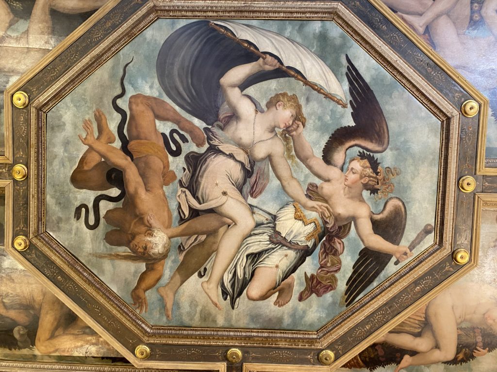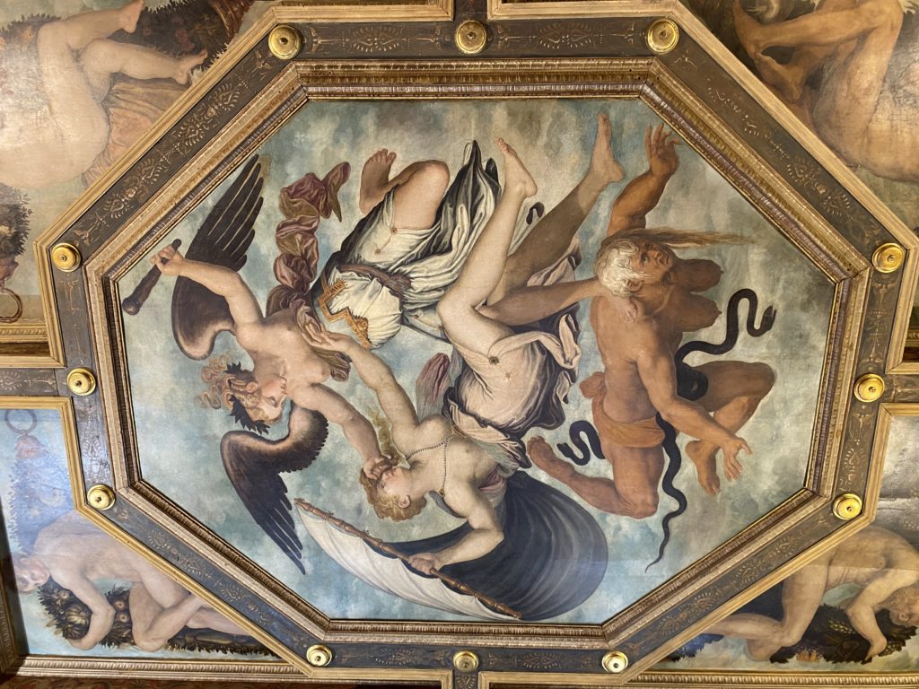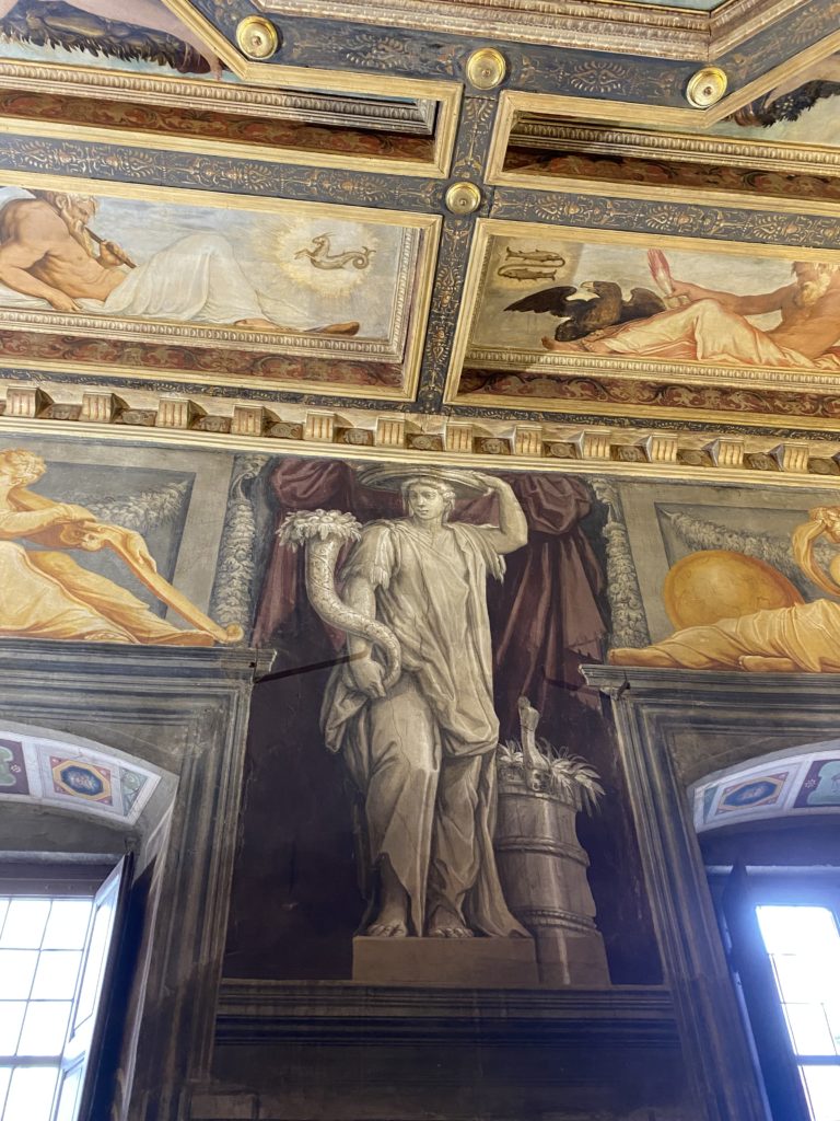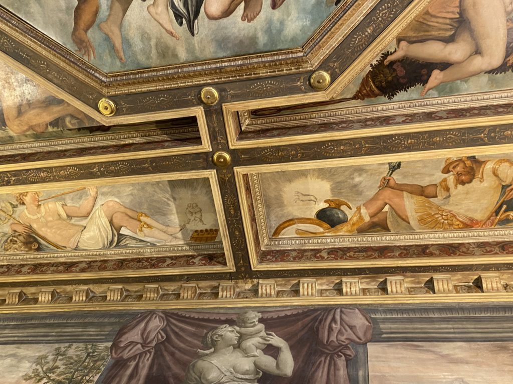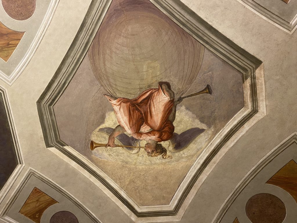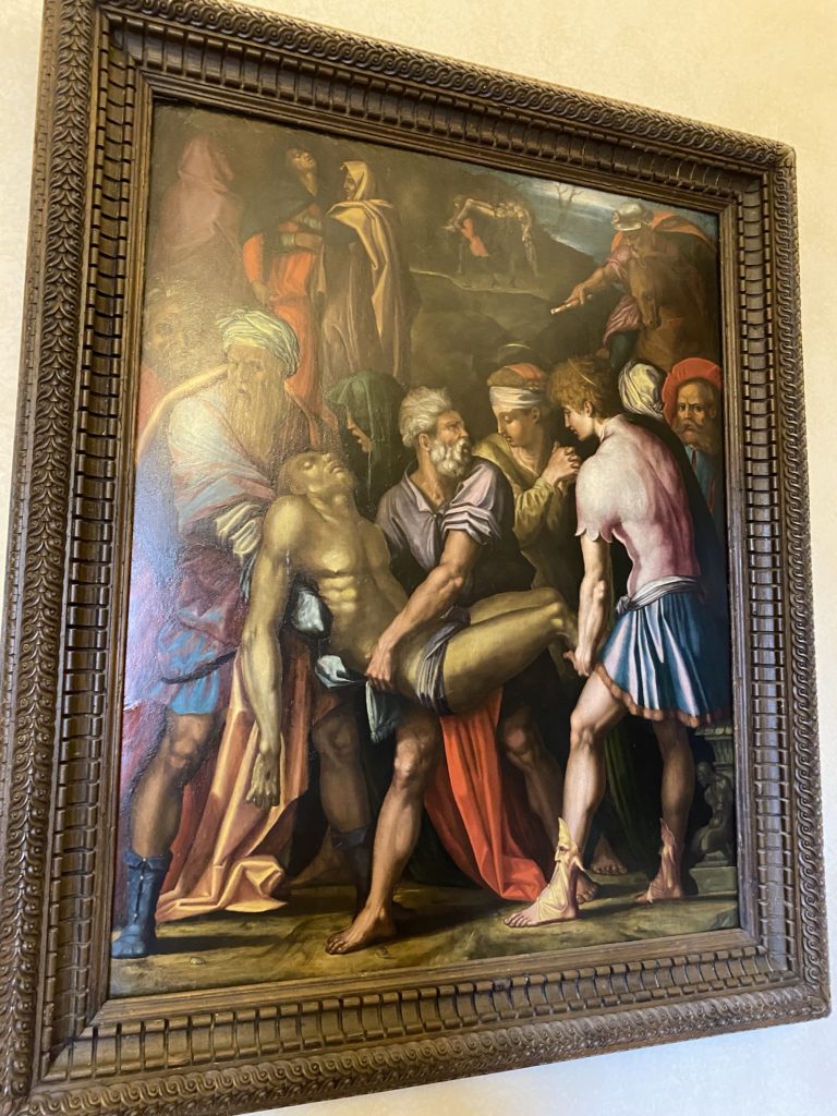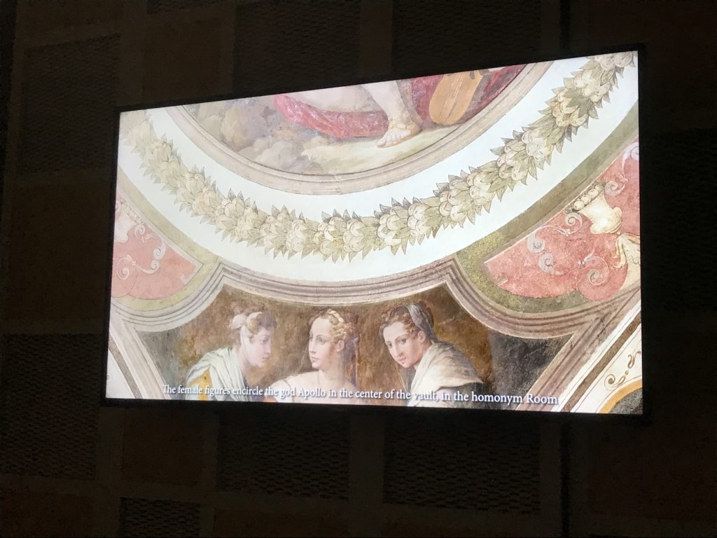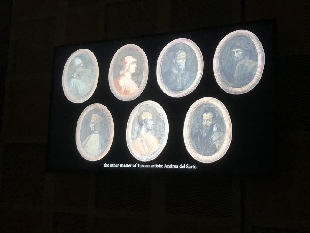 Nel borgo di San Vito la casa di Giorgio Vasari acquistata nel 1541, oggi sede museale dell’impronta visiva pittorica lasciata dall’artista. Costruita su tre piani la casa, organizzata per la servitù al primo e secondo piano. L’ultimo piano nobile la sua dimora privata. Intorno all’edificio un giardino all’italiana, rinascimentale, geometrico con siepi e una veduta sul borgo di Arezzo. Le decorazioni pittoriche della casa sono state realizzate da Vasari attento a celebrare e a evidenziare i simboli iconografici del proprio tempo con il contributo anche dei suoi amici aretini. Architetto, storico dell’arte e pittore, Giorgio Vasari affresca così le stanze a partire dal 1542. Il gusto manierista è visibile soprattutto nella quadreria con circa sessanta dipinti eseguiti da lui e dai suoi collaboratori. Al piano nobile, tramite una scalinata, con il busto di Vasari, si entra nella stanza del camino. L’artista affresca il luogo a partire dal 1548 con i temi: “Cacciata dell’Invidia” e della “Fortuna” da parte delle Virtù. La visione di questa pittura metafora della vita è nel soffitto a cassettone e nelle pareti appunto con figure allegoriche, paesaggi, storie eroiche dell’antichità, poi la “Cappellina” con la Madonna e Fra Paolino e il pavimento in maiolica del XVI secolo. Il tardo manierismo è presente nel corridoio con le sue visioni apocalittiche. La camera nuziale con il soffitto decorato da Vasari di Abramo tra le immagini del mondo, della “Pace”, la “Concordia”, le “Virtù” e la “Modestia”. La “Camera di Apollo” fu affrescata dall’artista è rappresenta Apollo e le nove muse con l’allegoria dell’amore, il ritratto della moglie Nicolosa Bacci. Nella camera della “Fama”, Vasari dipinse nel soffitto appunto il suo intendimento sulla “Fama” e nei peducci e lunette le quattro arti, il suo ritratto e degli artisti aretini: Signorelli, Della Gatta, Spinello, Aretino con Michelangelo e Andrea del Sarto. I contenuti allegorici e pittorici, la consistente visione continua e avvolgente della cosmologia dei miti antichi attualizzati, la narrazione insita dell’affresco, la visione manierista di un mondo bucolico e possibile per averlo vicino e condividerlo, fanno di Vasari un attento studioso e documentarista che attinge le sue conoscenze ai testi antichi per realizzare uno scenario così inedito e dettagliato nelle ragioni che afferma, esclusivo di una pittura commemorative e manierista che non ha eguali. Pitture murali sulle volte e sulle pareti, dipinti su tavola che Vasari realizza a più riprese nella sua abitazione decorata che vivacizza il suo pensiero e lo tiene costantemente aperto alla bellezza e al sogno dell’arte senza barriere.