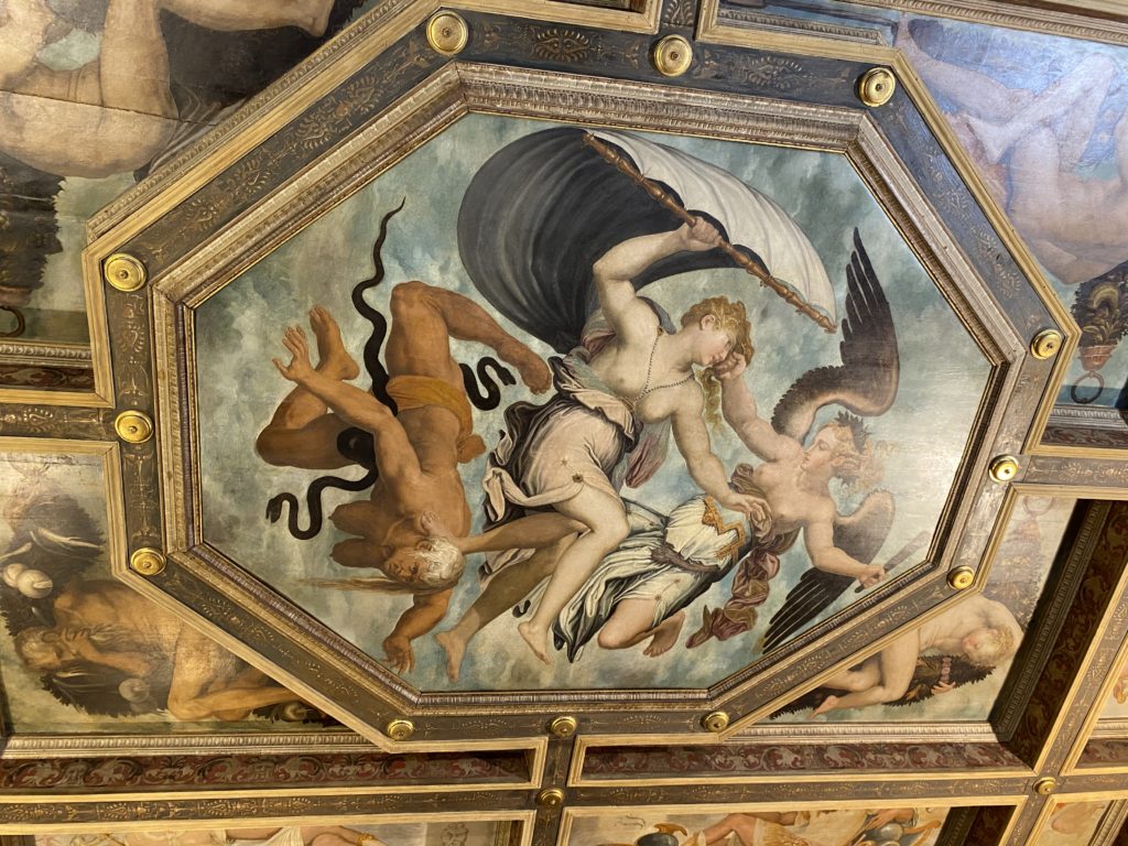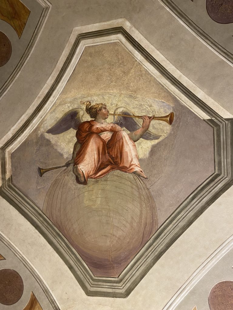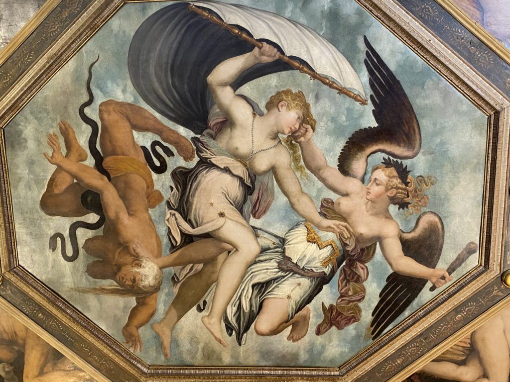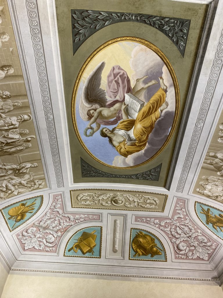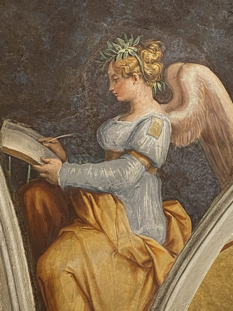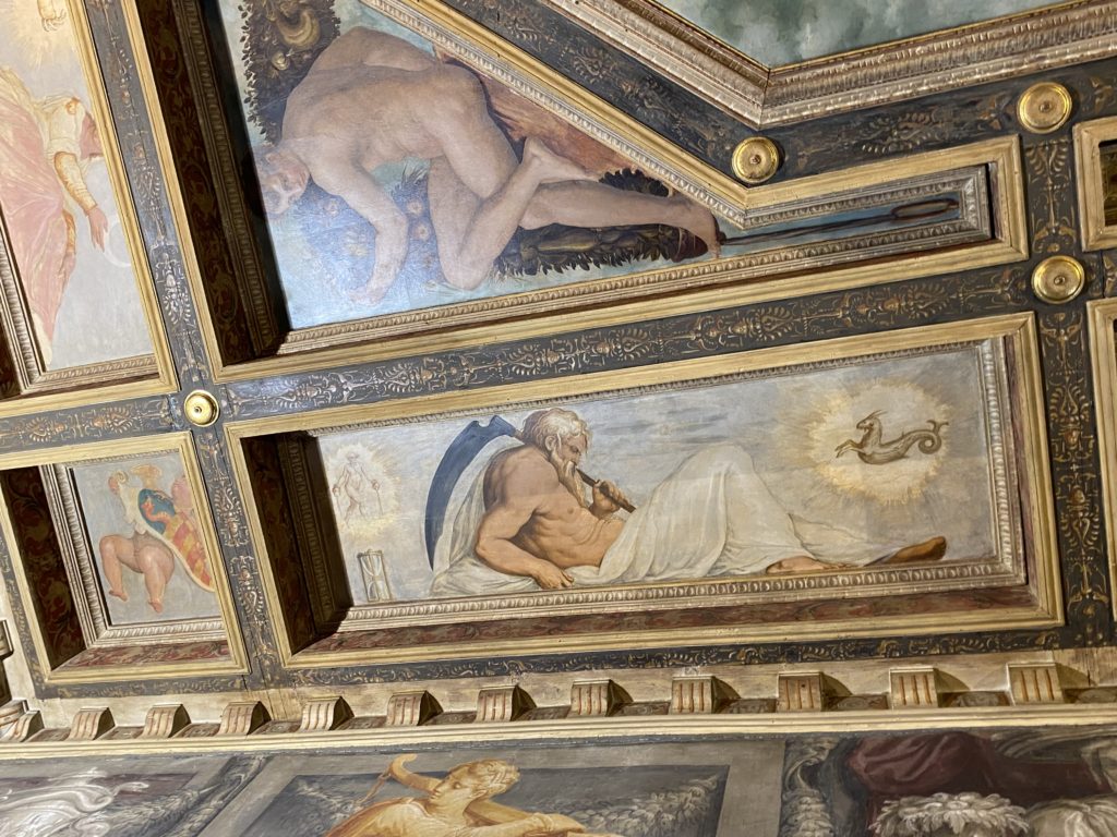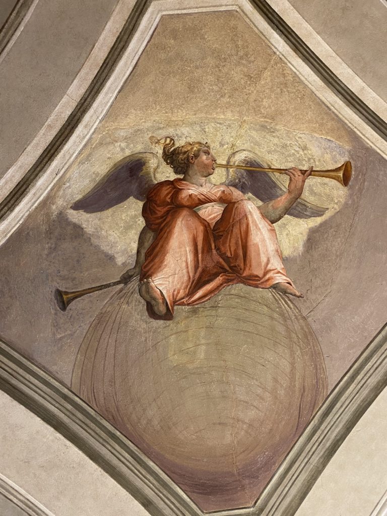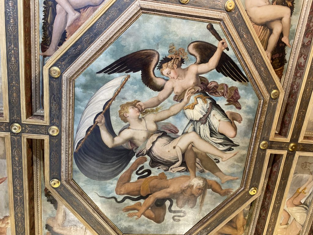 Nel borgo di San Vito la casa di Giorgio Vasari acquistata nel 1541, oggi sede museale dell’impronta visiva pittorica lasciata dall’artista. Costruita su tre piani la casa, organizzata per la servitù al primo e secondo piano. L’ultimo piano nobile la sua dimora privata. Intorno all’edificio un giardino all’italiana, rinascimentale, geometrico con siepi e una veduta sul borgo di Arezzo. Le decorazioni pittoriche della casa sono state realizzate da Vasari attento a celebrare e a evidenziare i simboli iconografici del proprio tempo con il contributo anche dei suoi amici aretini. Architetto, storico dell’arte e pittore, Giorgio Vasari affresca così le stanze a partire dal 1542. Il gusto manierista è visibile soprattutto nella quadreria con circa sessanta dipinti eseguiti da lui e dai suoi collaboratori. Al piano nobile, tramite una scalinata, con il busto di Vasari, si entra nella stanza del camino. L’artista affresca il luogo a partire dal 1548 con i temi: “Cacciata dell’Invidia” e della “Fortuna” da parte delle Virtù. La visione di questa pittura metafora della vita è nel soffitto a cassettone e nelle pareti appunto con figure allegoriche, paesaggi, storie eroiche dell’antichità, poi la “Cappellina” con la Madonna e Fra Paolino e il pavimento in maiolica del XVI secolo. Il tardo manierismo è presente nel corridoio con le sue visioni apocalittiche. La camera nuziale con il soffitto decorato da Vasari di Abramo tra le immagini del mondo, della “Pace”, la “Concordia”, le “Virtù” e la “Modestia”. La “Camera di Apollo” fu affrescata dall’artista è rappresenta Apollo e le nove muse con l’allegoria dell’amore, il ritratto della moglie Nicolosa Bacci. Nella camera della “Fama”, Vasari dipinse nel soffitto appunto il suo intendimento sulla “Fama” e nei peducci e lunette le quattro arti, il suo ritratto e degli artisti aretini: Signorelli, Della Gatta, Spinello, Aretino con Michelangelo e Andrea del Sarto. I contenuti allegorici e pittorici, la consistente visione continua e avvolgente della cosmologia dei miti antichi attualizzati, la narrazione insita dell’affresco, la visione manierista di un mondo bucolico e possibile per averlo vicino e condividerlo, fanno di Vasari un attento studioso e documentarista che attinge le sue conoscenze ai testi antichi per realizzare uno scenario così inedito e dettagliato nelle ragioni che afferma, esclusivo di una pittura commemorative e manierista che non ha eguali. Pitture murali sulle volte e sulle pareti, dipinti su tavola che Vasari realizza a più riprese nella sua abitazione decorata che vivacizza il suo pensiero e lo tiene costantemente aperto alla bellezza e al sogno dell’arte senza barriere.