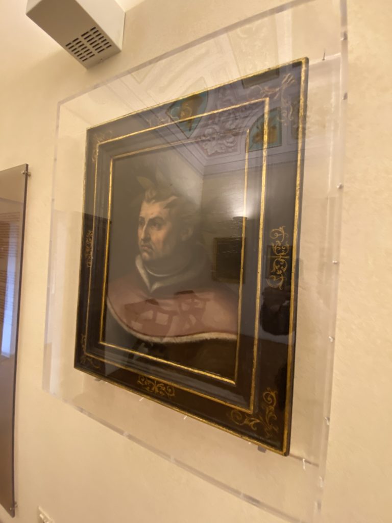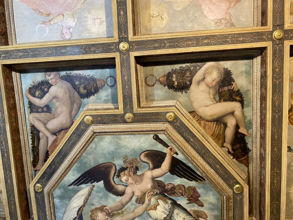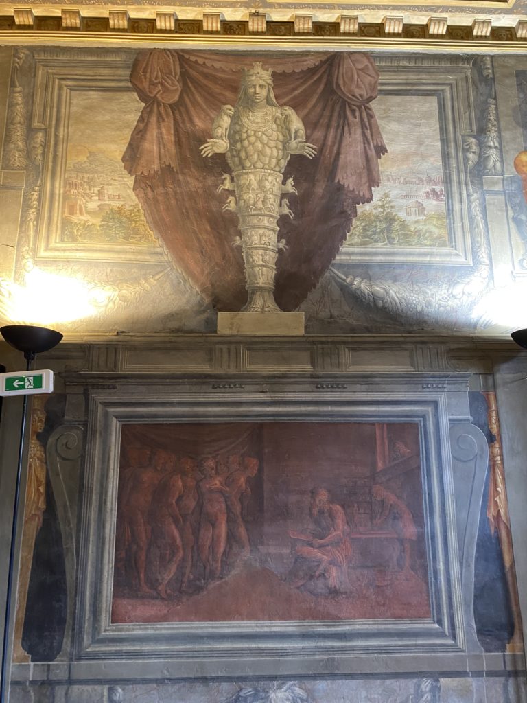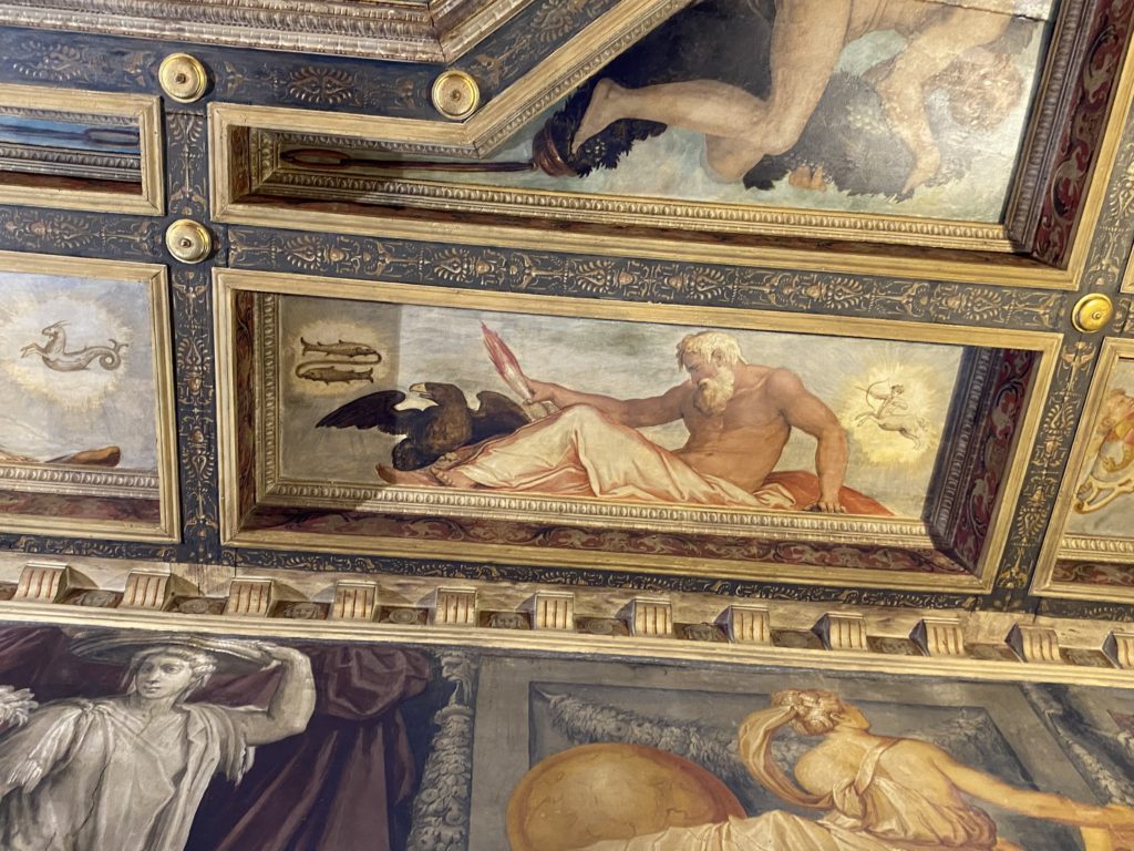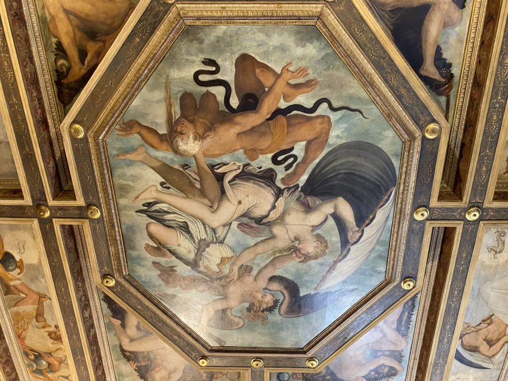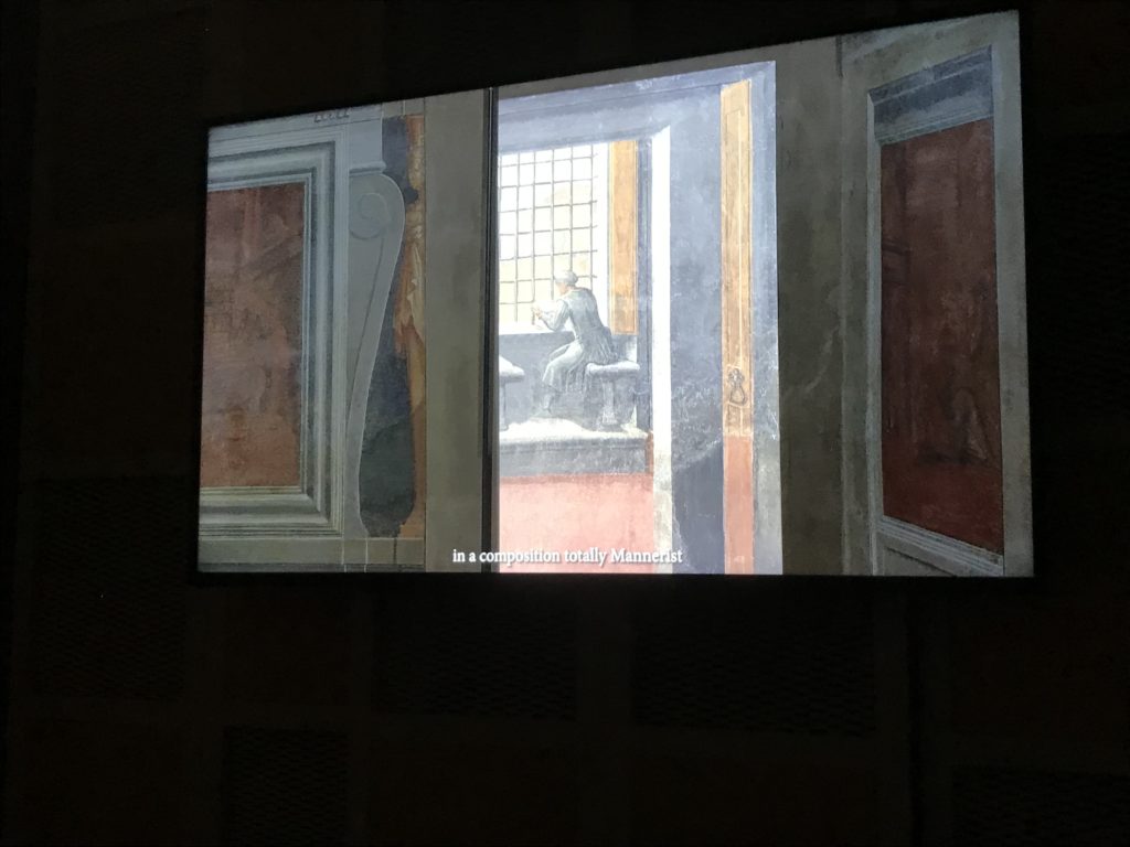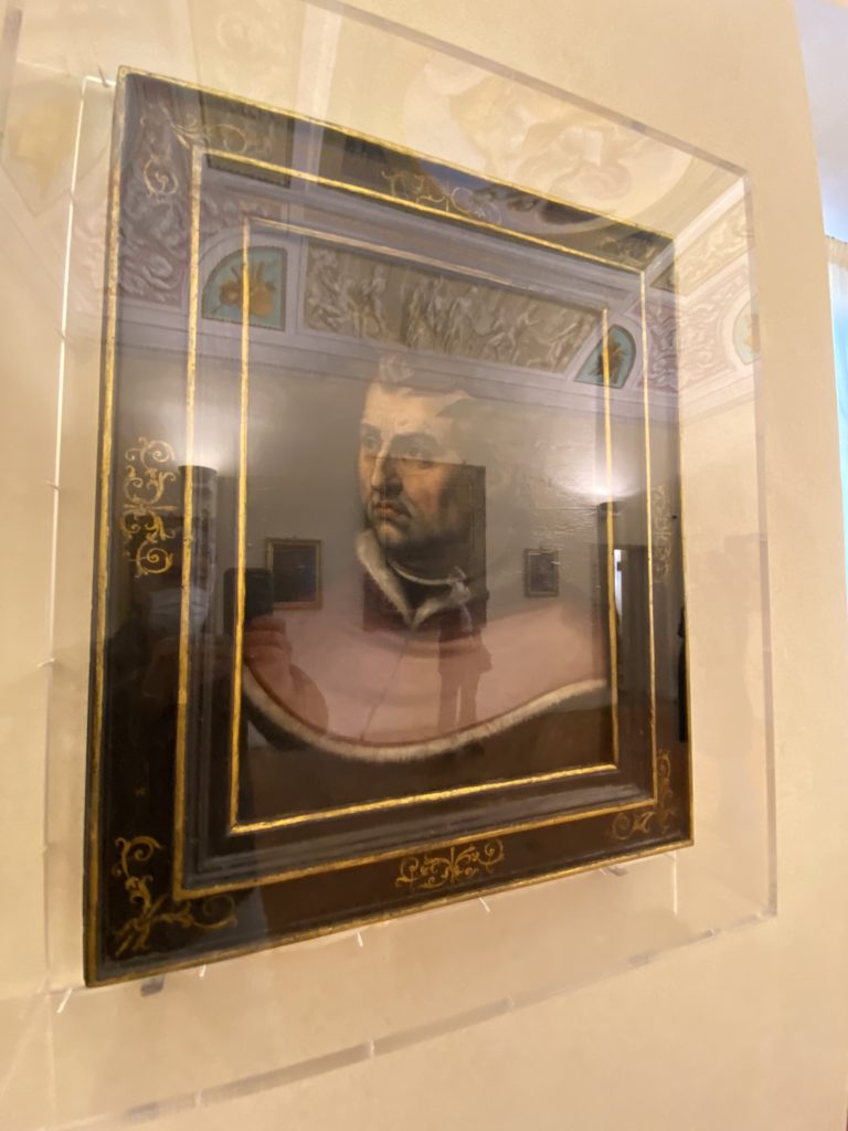 Nel borgo di San Vito la casa di Giorgio Vasari acquistata nel 1541, oggi sede museale dell’impronta visiva pittorica lasciata dall’artista. Costruita su tre piani la casa, organizzata per la servitù al primo e secondo piano. L’ultimo piano nobile la sua dimora privata. Intorno all’edificio un giardino all’italiana, rinascimentale, geometrico con siepi e una veduta sul borgo di Arezzo. Le decorazioni pittoriche della casa sono state realizzate da Vasari attento a celebrare e a evidenziare i simboli iconografici del proprio tempo con il contributo anche dei suoi amici aretini. Architetto, storico dell’arte e pittore, Giorgio Vasari affresca così le stanze a partire dal 1542. Il gusto manierista è visibile soprattutto nella quadreria con circa sessanta dipinti eseguiti da lui e dai suoi collaboratori. Al piano nobile, tramite una scalinata, con il busto di Vasari, si entra nella stanza del camino. L’artista affresca il luogo a partire dal 1548 con i temi: “Cacciata dell’Invidia” e della “Fortuna” da parte delle Virtù. La visione di questa pittura metafora della vita è nel soffitto a cassettone e nelle pareti appunto con figure allegoriche, paesaggi, storie eroiche dell’antichità, poi la “Cappellina” con la Madonna e Fra Paolino e il pavimento in maiolica del XVI secolo. Il tardo manierismo è presente nel corridoio con le sue visioni apocalittiche. La camera nuziale con il soffitto decorato da Vasari di Abramo tra le immagini del mondo, della “Pace”, la “Concordia”, le “Virtù” e la “Modestia”. La “Camera di Apollo” fu affrescata dall’artista è rappresenta Apollo e le nove muse con l’allegoria dell’amore, il ritratto della moglie Nicolosa Bacci. Nella camera della “Fama”, Vasari dipinse nel soffitto appunto il suo intendimento sulla “Fama” e nei peducci e lunette le quattro arti, il suo ritratto e degli artisti aretini: Signorelli, Della Gatta, Spinello, Aretino con Michelangelo e Andrea del Sarto. I contenuti allegorici e pittorici, la consistente visione continua e avvolgente della cosmologia dei miti antichi attualizzati, la narrazione insita dell’affresco, la visione manierista di un mondo bucolico e possibile per averlo vicino e condividerlo, fanno di Vasari un attento studioso e documentarista che attinge le sue conoscenze ai testi antichi per realizzare uno scenario così inedito e dettagliato nelle ragioni che afferma, esclusivo di una pittura commemorative e manierista che non ha eguali. Pitture murali sulle volte e sulle pareti, dipinti su tavola che Vasari realizza a più riprese nella sua abitazione decorata che vivacizza il suo pensiero e lo tiene costantemente aperto alla bellezza e al sogno dell’arte senza barriere.