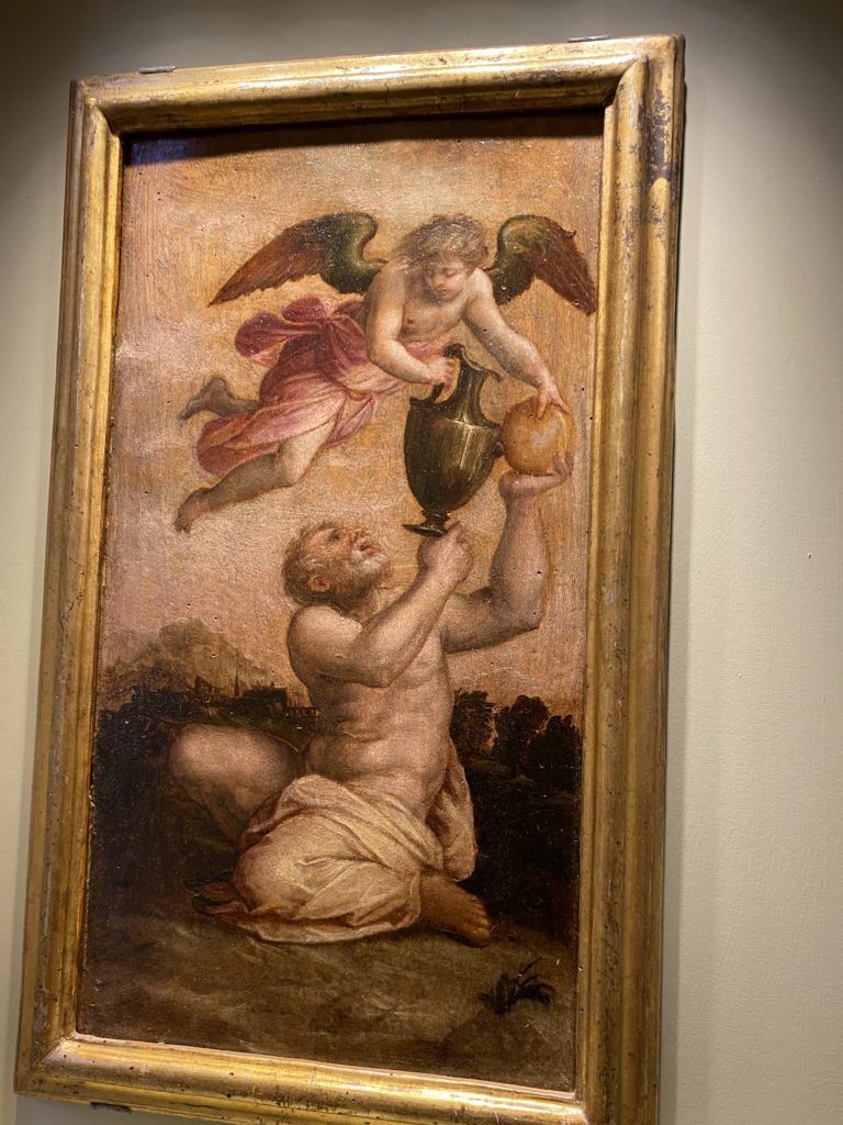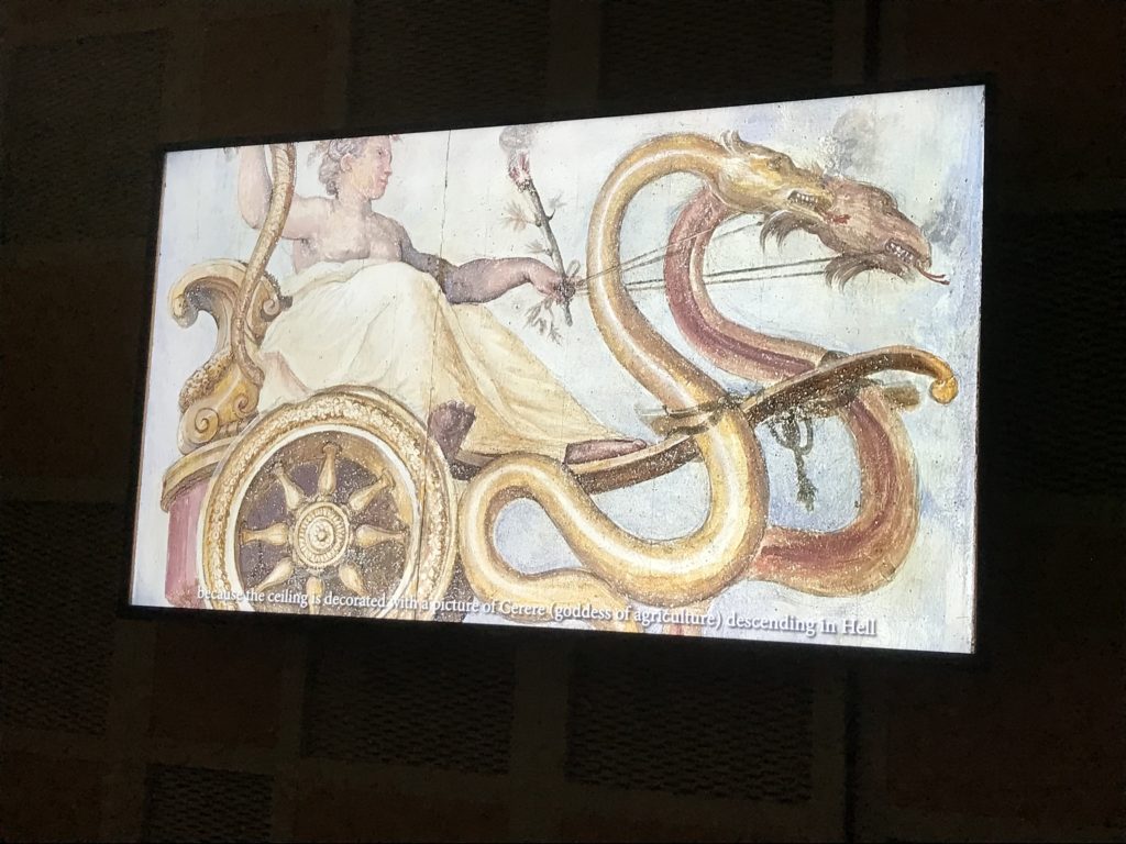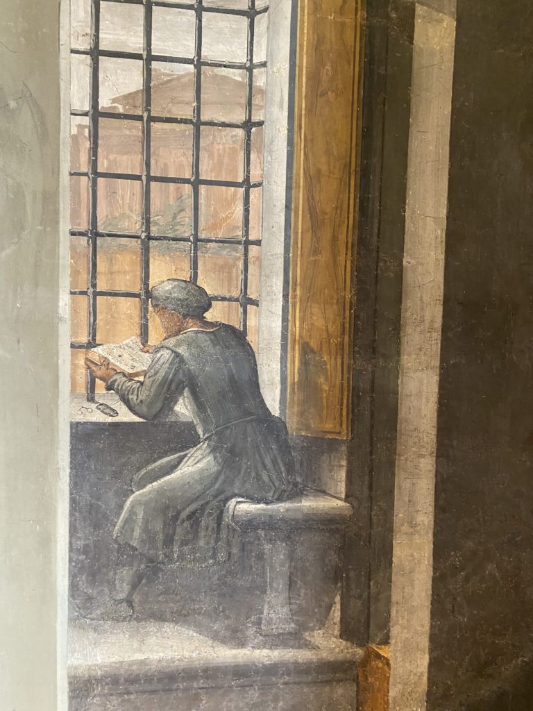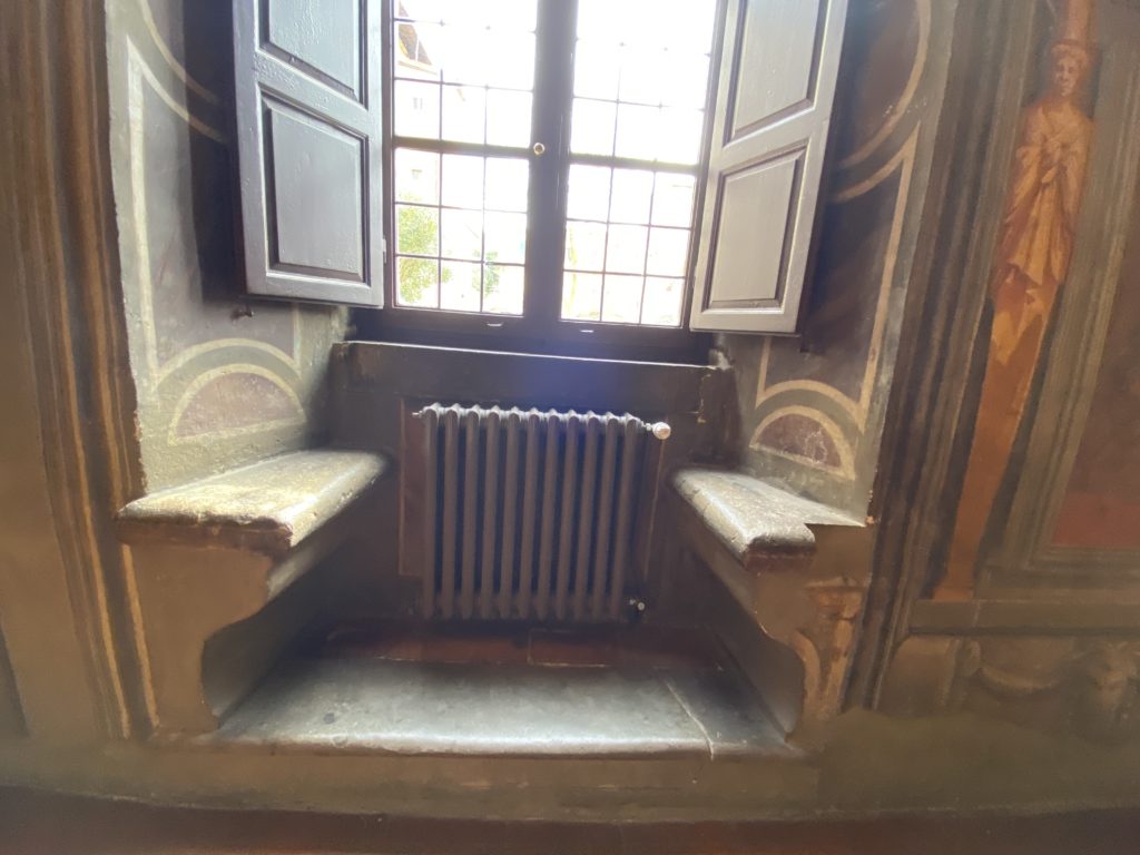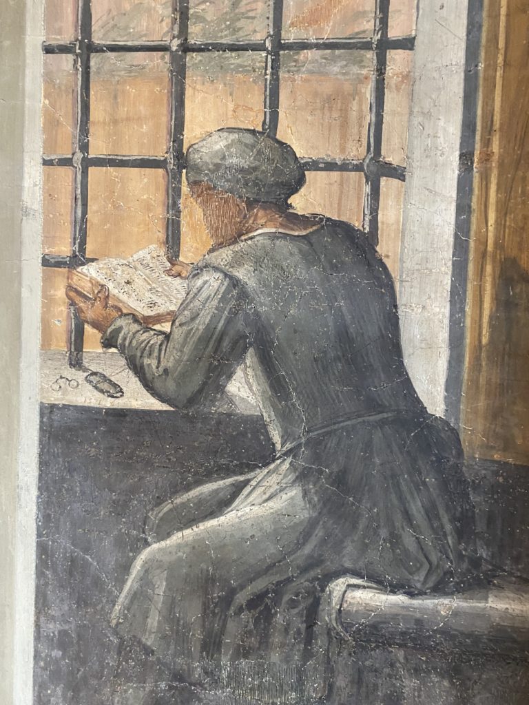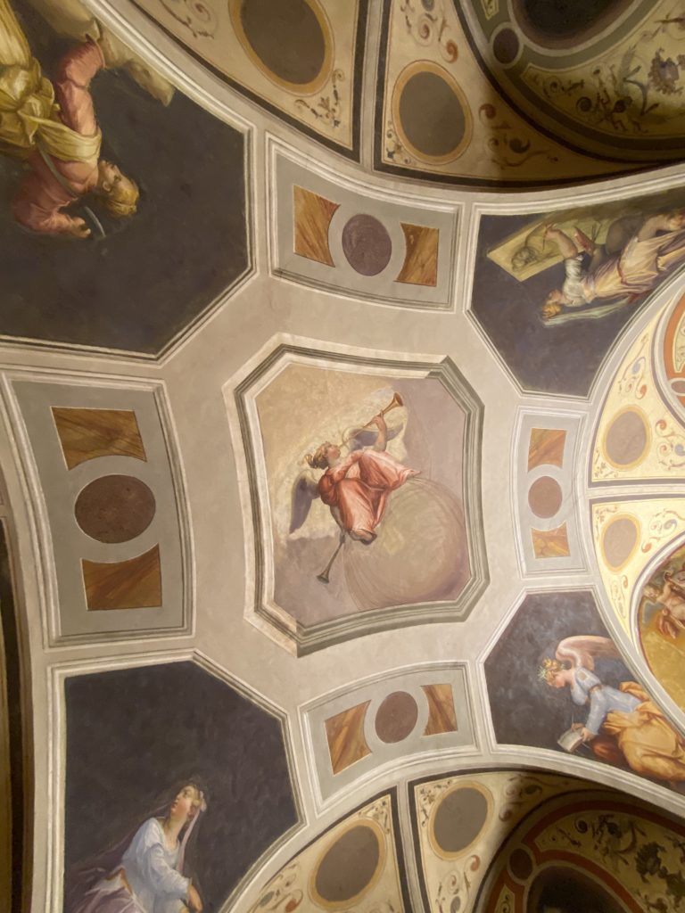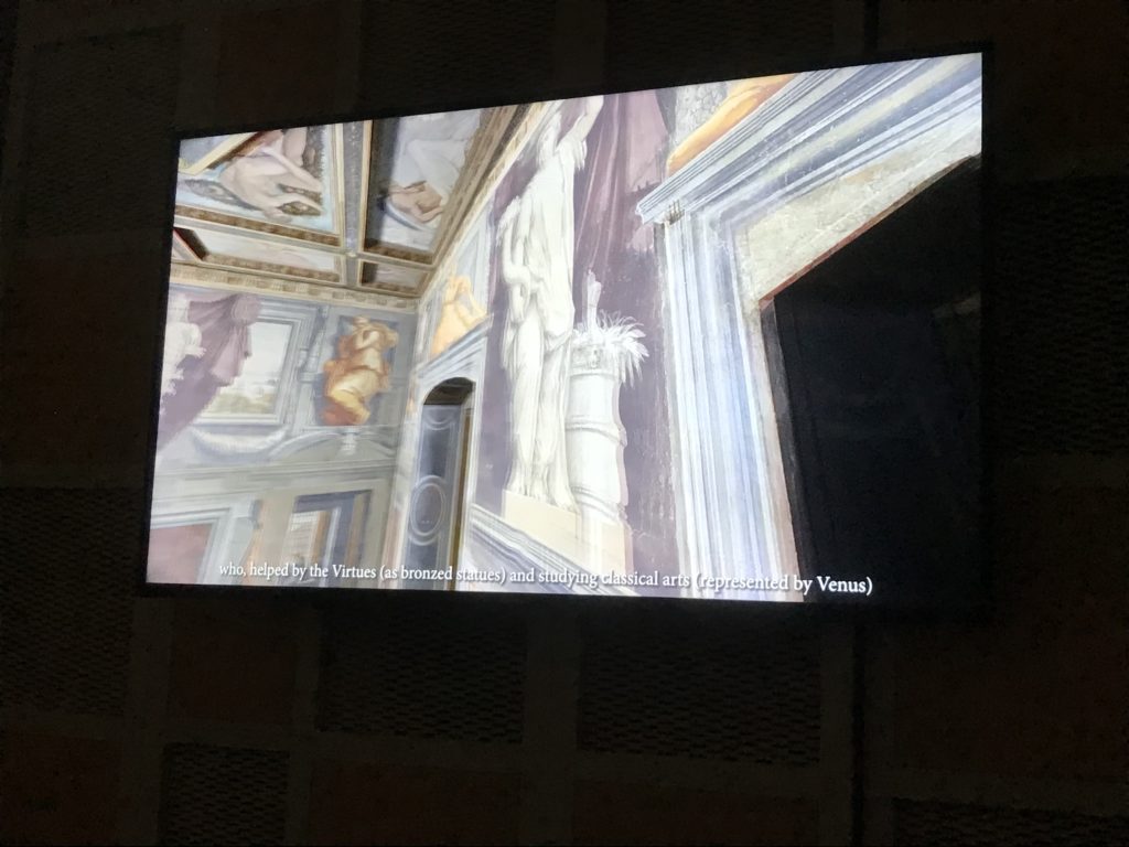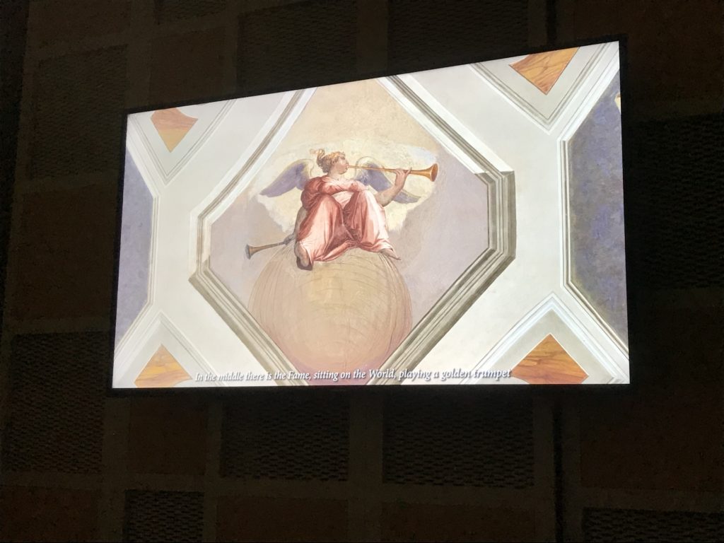 Nel borgo di San Vito la casa di Giorgio Vasari acquistata nel 1541, oggi sede museale dell’impronta visiva pittorica lasciata dall’artista. Costruita su tre piani la casa, organizzata per la servitù al primo e secondo piano. L’ultimo piano nobile la sua dimora privata. Intorno all’edificio un giardino all’italiana, rinascimentale, geometrico con siepi e una veduta sul borgo di Arezzo. Le decorazioni pittoriche della casa sono state realizzate da Vasari attento a celebrare e a evidenziare i simboli iconografici del proprio tempo con il contributo anche dei suoi amici aretini. Architetto, storico dell’arte e pittore, Giorgio Vasari affresca così le stanze a partire dal 1542. Il gusto manierista è visibile soprattutto nella quadreria con circa sessanta dipinti eseguiti da lui e dai suoi collaboratori. Al piano nobile, tramite una scalinata, con il busto di Vasari, si entra nella stanza del camino. L’artista affresca il luogo a partire dal 1548 con i temi: “Cacciata dell’Invidia” e della “Fortuna” da parte delle Virtù. La visione di questa pittura metafora della vita è nel soffitto a cassettone e nelle pareti appunto con figure allegoriche, paesaggi, storie eroiche dell’antichità, poi la “Cappellina” con la Madonna e Fra Paolino e il pavimento in maiolica del XVI secolo. Il tardo manierismo è presente nel corridoio con le sue visioni apocalittiche. La camera nuziale con il soffitto decorato da Vasari di Abramo tra le immagini del mondo, della “Pace”, la “Concordia”, le “Virtù” e la “Modestia”. La “Camera di Apollo” fu affrescata dall’artista è rappresenta Apollo e le nove muse con l’allegoria dell’amore, il ritratto della moglie Nicolosa Bacci. Nella camera della “Fama”, Vasari dipinse nel soffitto appunto il suo intendimento sulla “Fama” e nei peducci e lunette le quattro arti, il suo ritratto e degli artisti aretini: Signorelli, Della Gatta, Spinello, Aretino con Michelangelo e Andrea del Sarto. I contenuti allegorici e pittorici, la consistente visione continua e avvolgente della cosmologia dei miti antichi attualizzati, la narrazione insita dell’affresco, la visione manierista di un mondo bucolico e possibile per averlo vicino e condividerlo, fanno di Vasari un attento studioso e documentarista che attinge le sue conoscenze ai testi antichi per realizzare uno scenario così inedito e dettagliato nelle ragioni che afferma, esclusivo di una pittura commemorative e manierista che non ha eguali. Pitture murali sulle volte e sulle pareti, dipinti su tavola che Vasari realizza a più riprese nella sua abitazione decorata che vivacizza il suo pensiero e lo tiene costantemente aperto alla bellezza e al sogno dell’arte senza barriere.