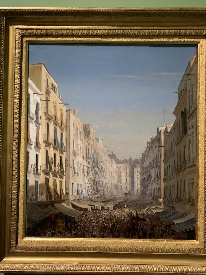 L’Illuminismo, Napoli, centro nell’Italia degli Stati e in Europa, siamo nel XIX secolo, con una propensione a divenire una metropoli scientifica. L’università e lo studio delle lingue orientali. Capitale del Positivismo, e poi lo studio delle discipline giuridiche e matematiche. L’estetica, le scienze dunque, e la cultura del Realismo nell’arte inaugurano il passaggio dal Barocco. L’Ottocento a Napoli è un viaggio allorché la pittura, e non solo, indagano la “visione” di Napoli e del suo territorio. Gli artisti e i pensatori: Ludwig Catel, William Turner, Thomas Jones, John Singer Sargent, molti esponenti della scuola di Posillipo, Portici e Resina, Anton van Pitloo, Giuseppe De Nittis, Ercole e Giacinto Gigante, Mariano Fortuny, i fratelli Palizzi e Domenico Morelli, Edgar Degas. E ancora: Achille d’Orsi, Antonio Mancini e Vincenzo Gemito. Napoli, il fascino indiscusso del Grand Tour nei taccuini dei viaggiatori alla ricerca del sublime. L’Ottocento napoletano rappresentato, gli artisti arrivano dall’Europa e dalle Americhe per contemplare, ammirare, e calarsi in una realtà del folclore, del disagio e dell’arretratezza delle popolazioni locali. Degrado, malattie ed epidemie dunque esistono, ma vengono messe da parte, per dipingere Pompei ed Ercolano, la costa amalfitana e sorrentina, Capri, Ischia, Procida e il Vesuvio. La vegetazione lussureggiante è un’attrattiva. Si inaugura il modello del “pittoresco” della vita napoletana da dipingere. Ma il degrado e la povertà, gli stenti e la disperazione di una società ferma e immobile vengono bypassati, scansati. Splendore e degrado convivono tra aristocrazia e povertà dilagante, e non solo allora, in una visione di abbaglio, ancora oggi…