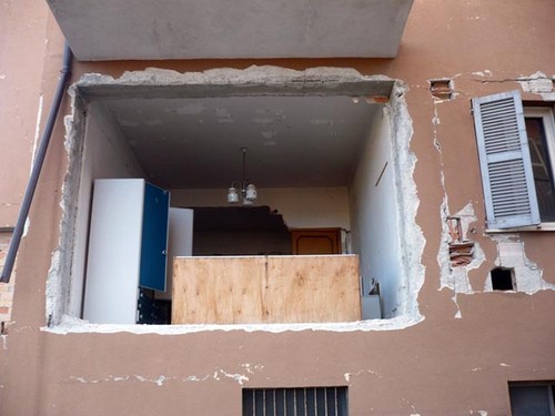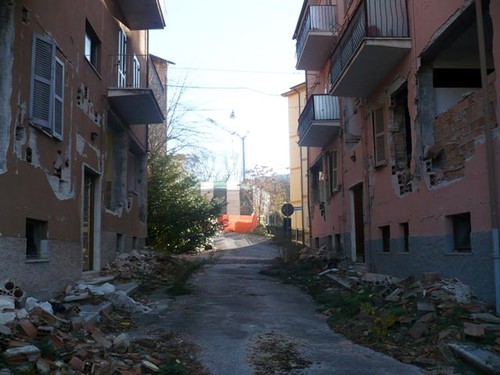 Tornare lì è sempre un viaggio nuovo, una sorta di pellegrinaggio all’antica come scriveva Ignazio Silone, mai uguale a se stesso, fino a casa di mia madre, squarciata, sempre più aperta, sempre più vivisezionata, una “Lezione di anatomia del dottor Tulp” di Rembrandt, sempre più “indagata” dall’esterno: metamorfosi delle rovine nel divenire, in continuo disfacimento, come se non bastasse, non avesse fine. Forse è la metafora della vita degli aquilani, inconfessabile, quello che resta, guardando dai bordi della città.