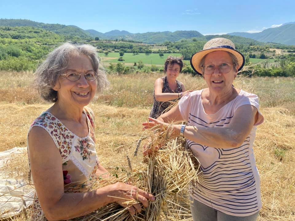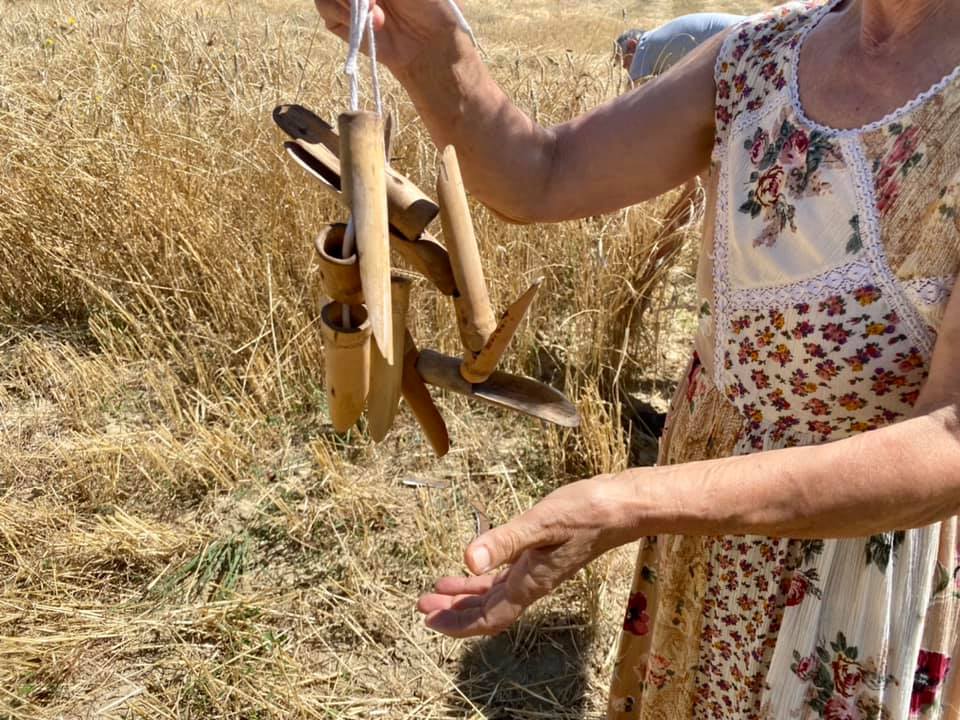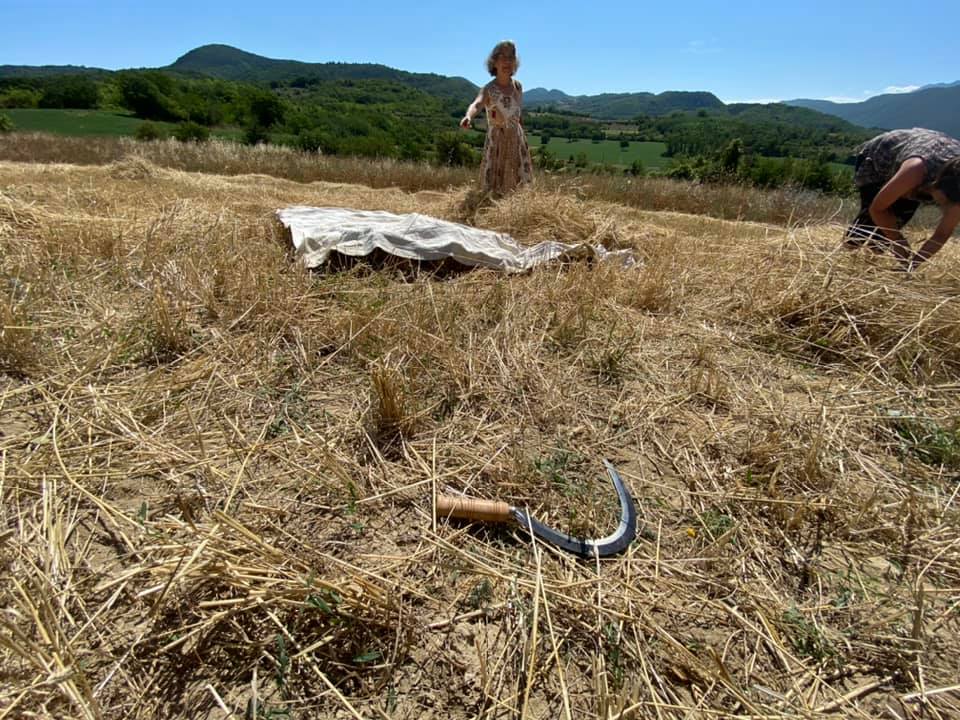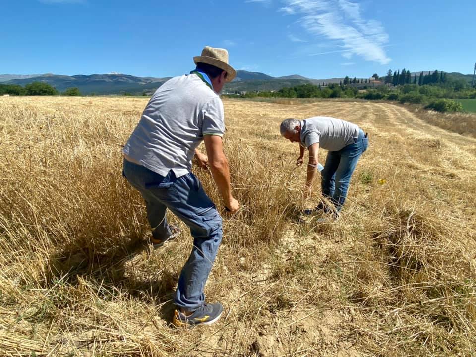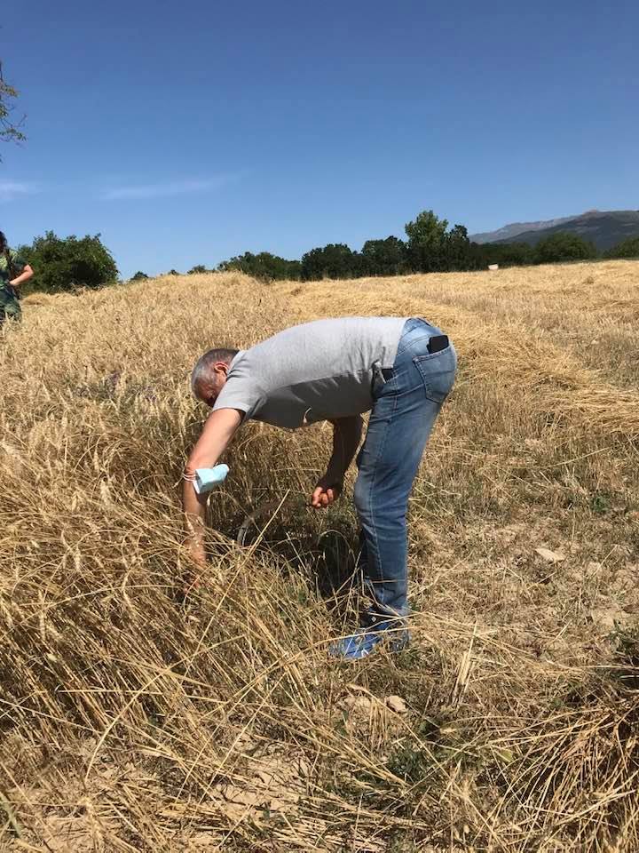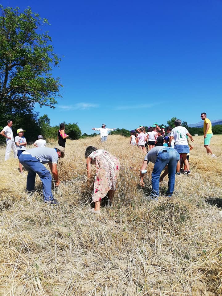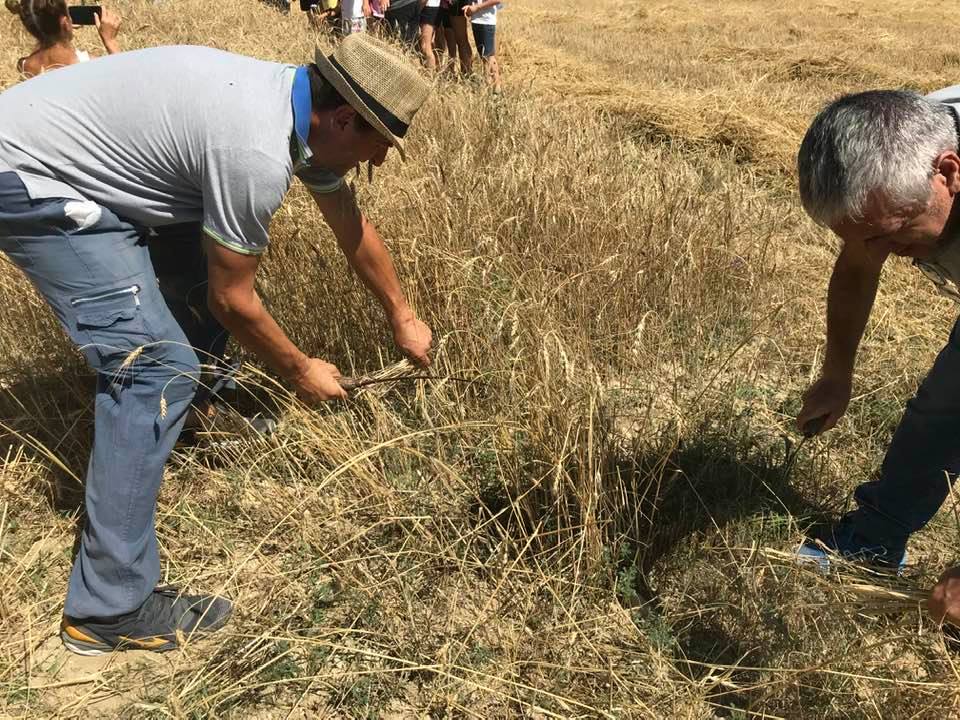 La mietitura del grano del senatore Cappelli organizzata da Nunziata Cardaci, per gli amici Tina Cardabello. Hanno partecipato anche i bambini del centro estivo di Fagnano, Lucio Marinangeli del forno aquilano Peppinella e Vincenzo Battista con le sue affascinanti favole del mondo contadino. Alla fine pane con grano Cappelli e pomodoro, torte e molto altro.