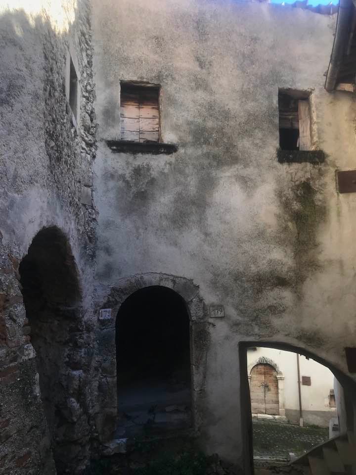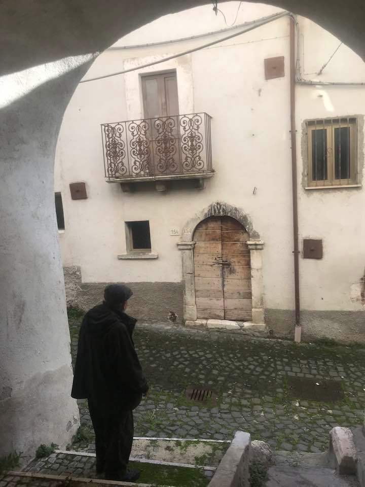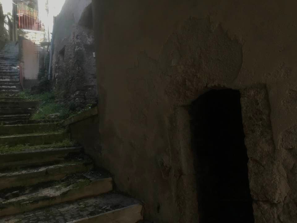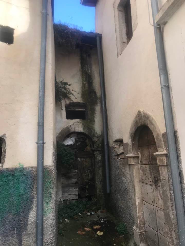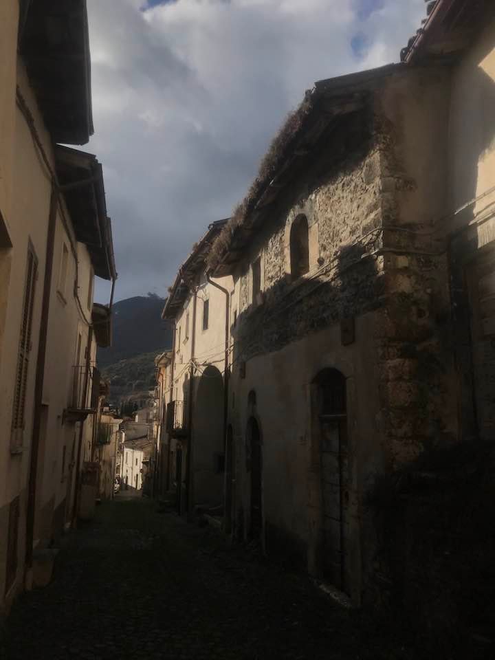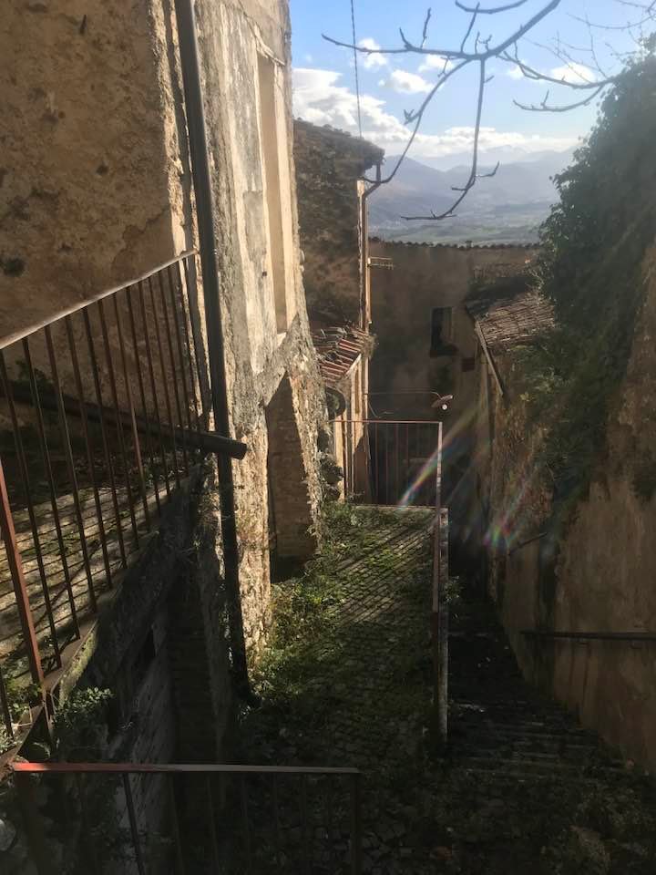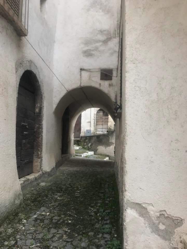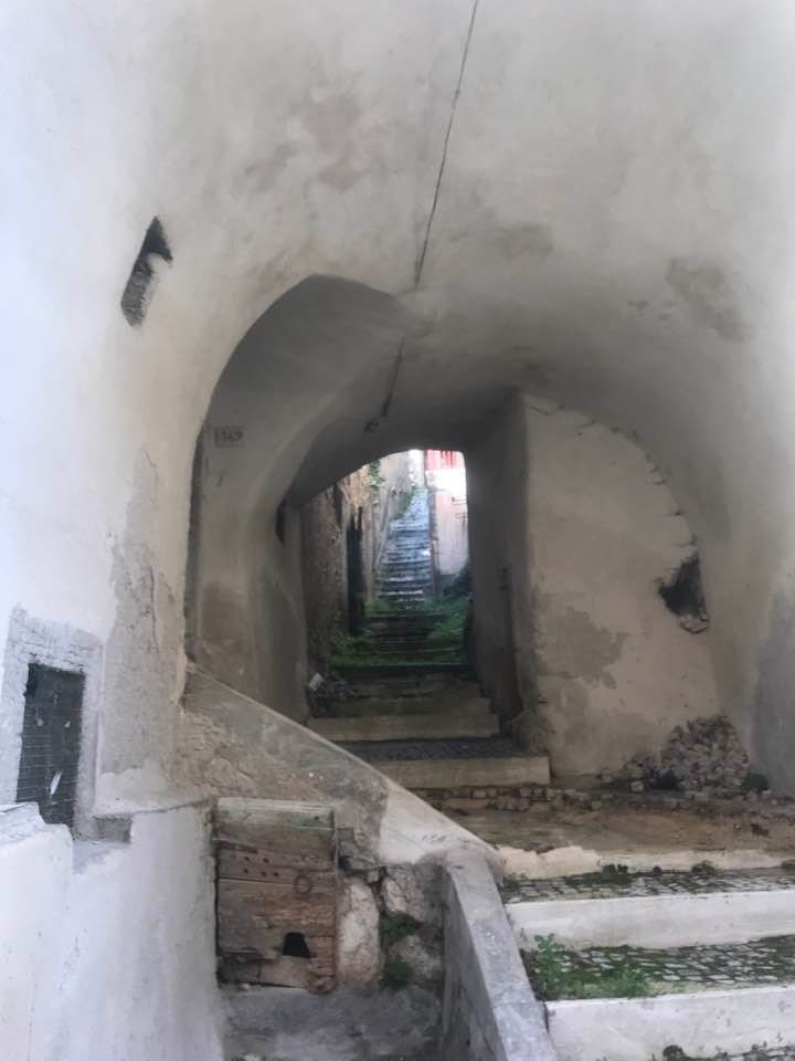 Dalla sommità del borgo la chiesa di San Nicola di Bari. Scendiamo con Luigino Barbati dentro i vicoli, le strade cordonate, gli accessi stretti, i sottopassi e gli slarghi del borgo di Secinaro.