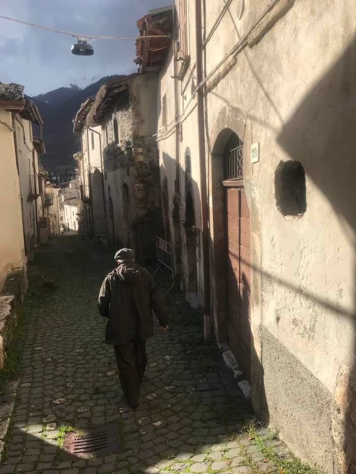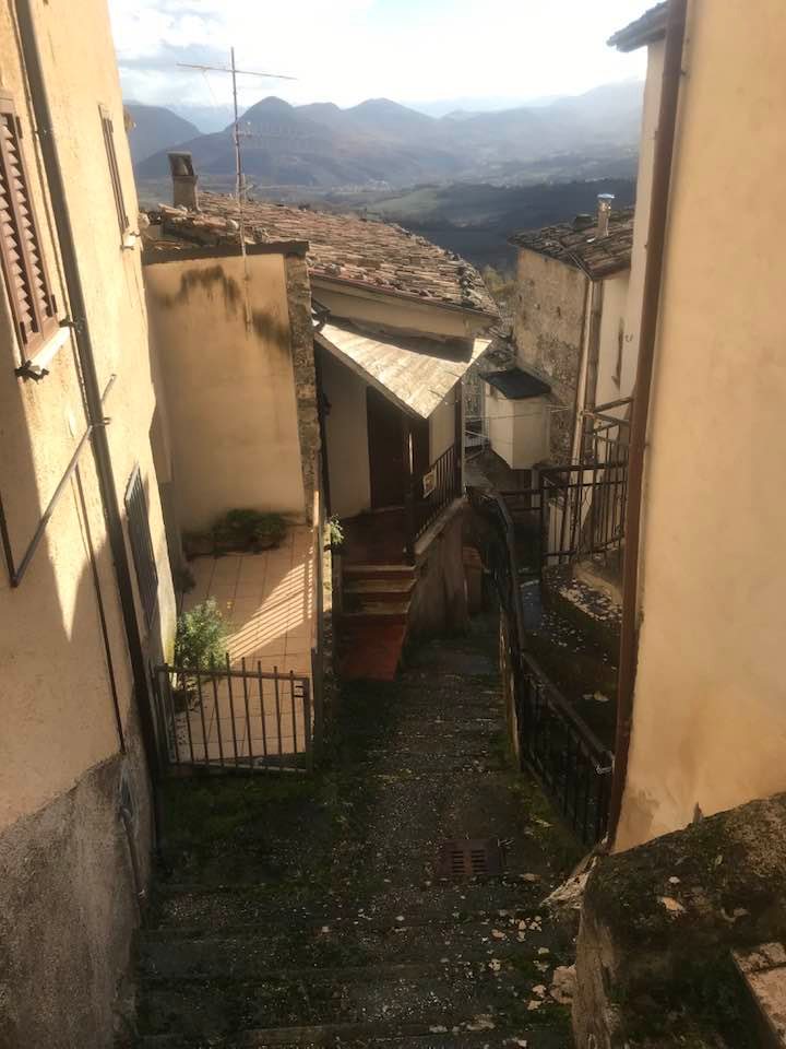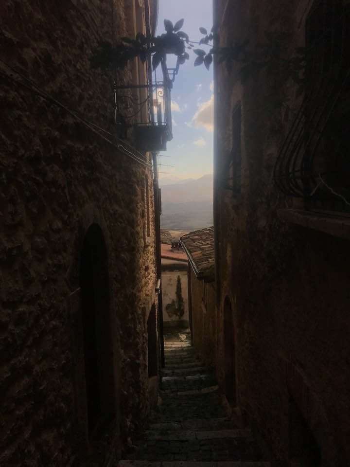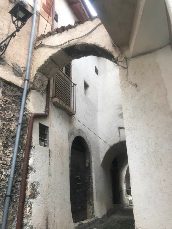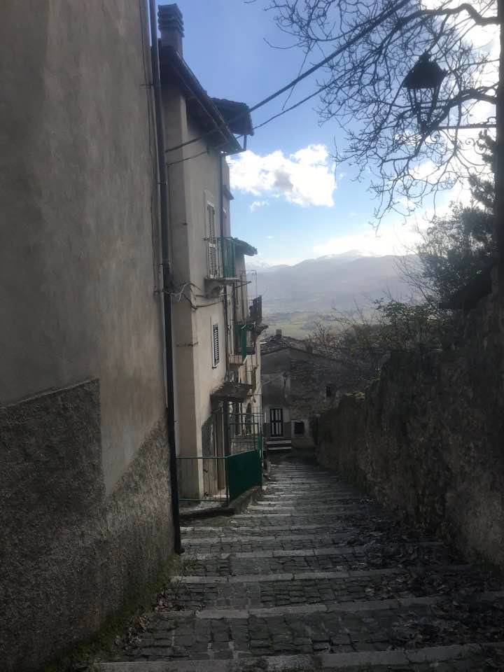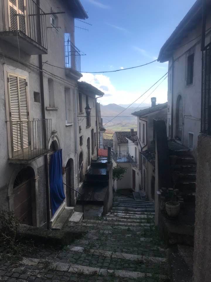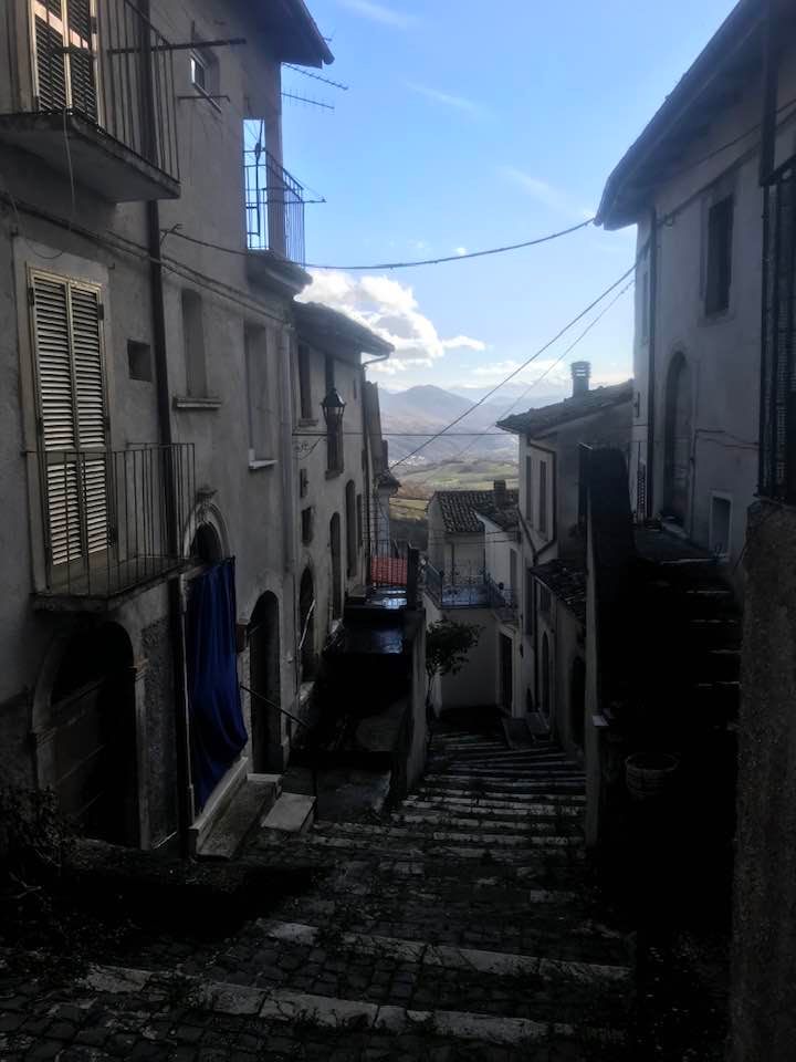 Dalla sommità del borgo la chiesa di San Nicola di Bari. Scendiamo con Luigino Barbati dentro i vicoli, le strade cordonate, gli accessi stretti, i sottopassi e gli slarghi del borgo di Secinaro.