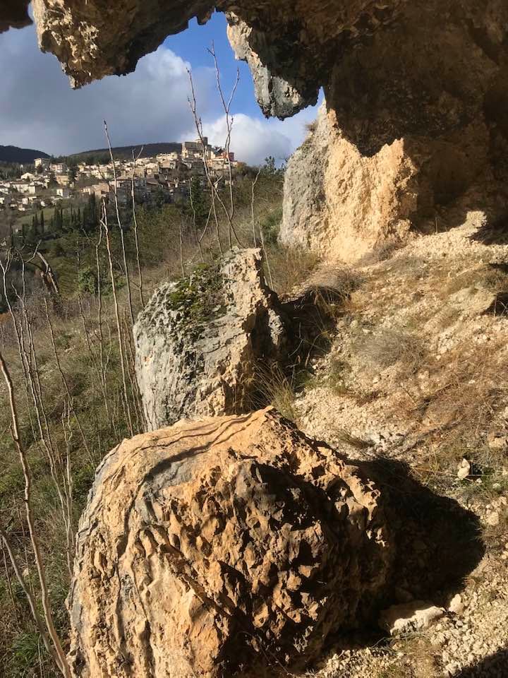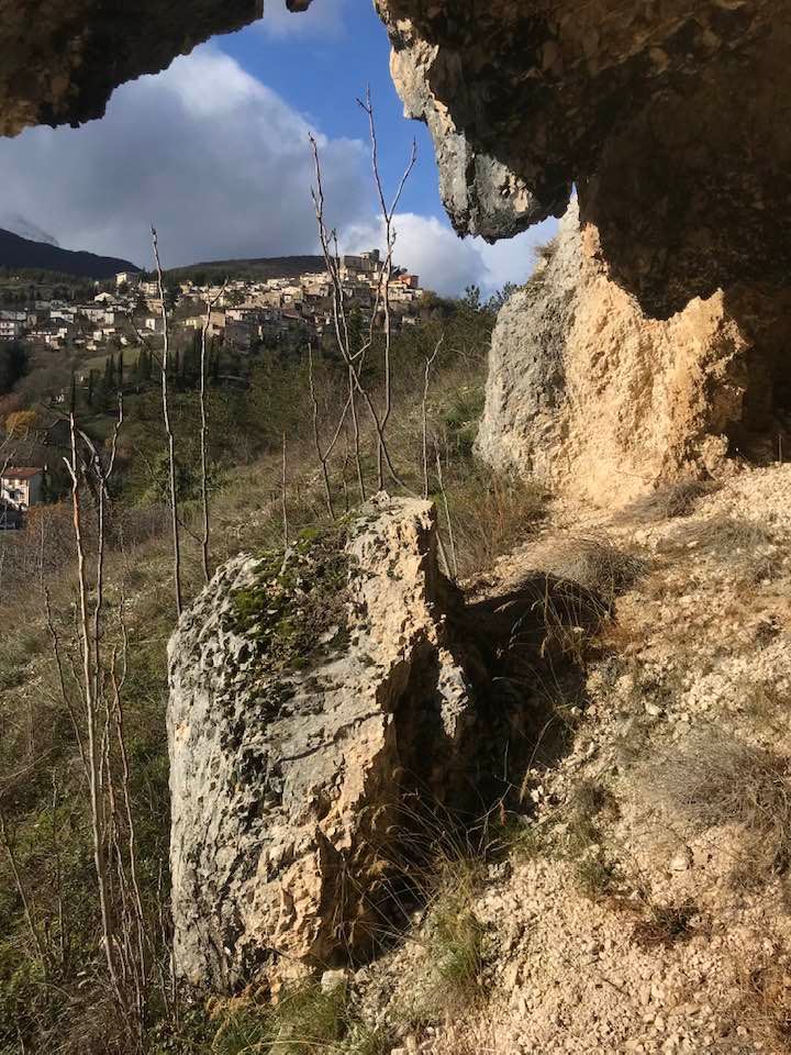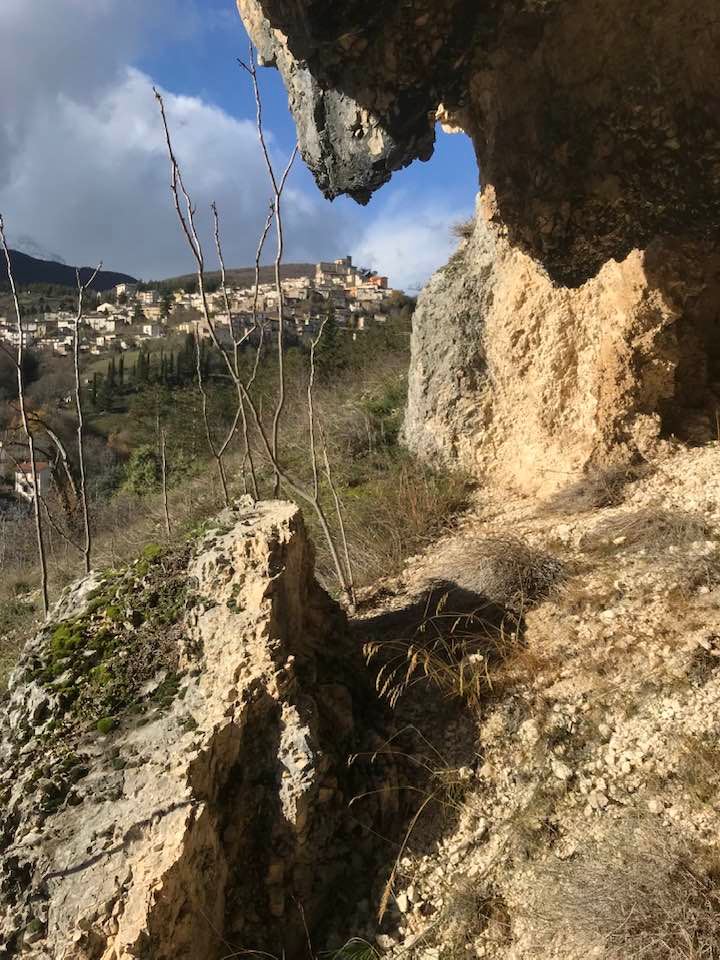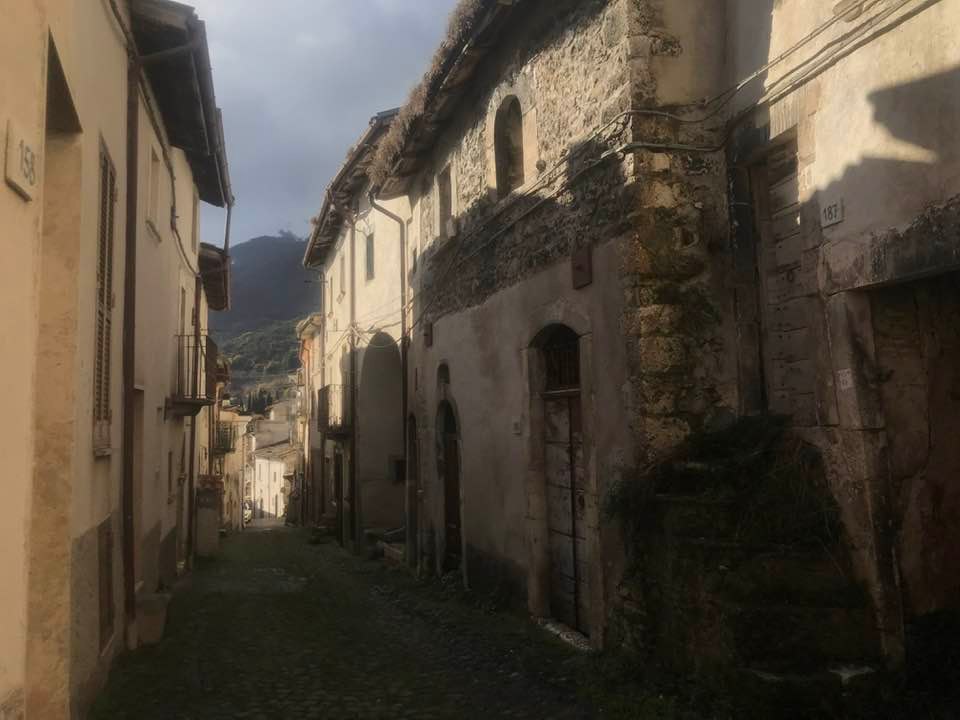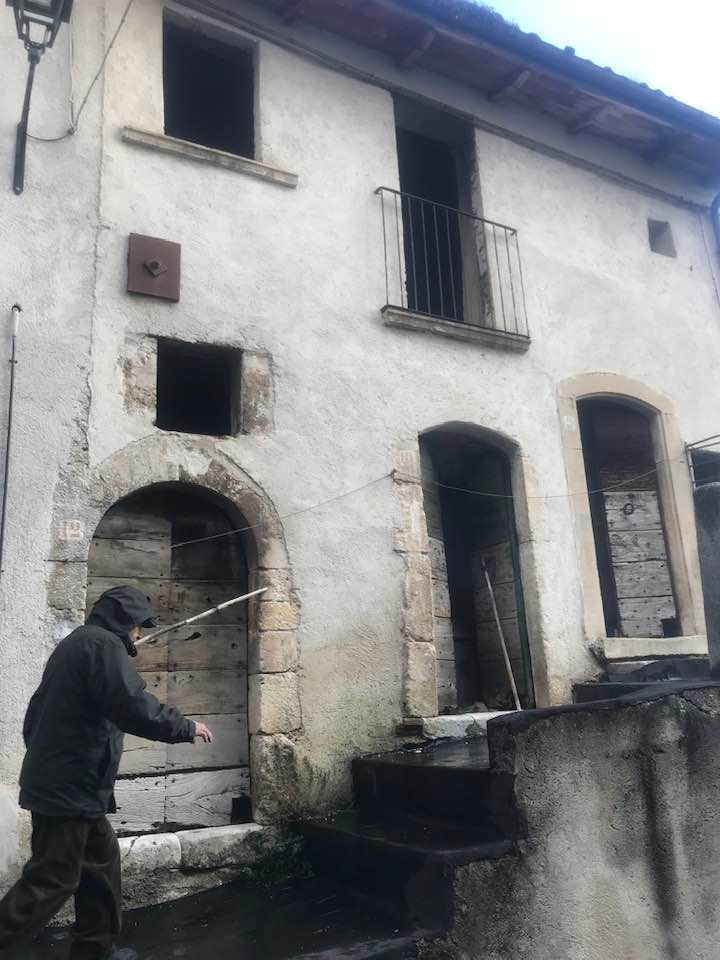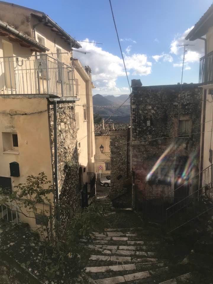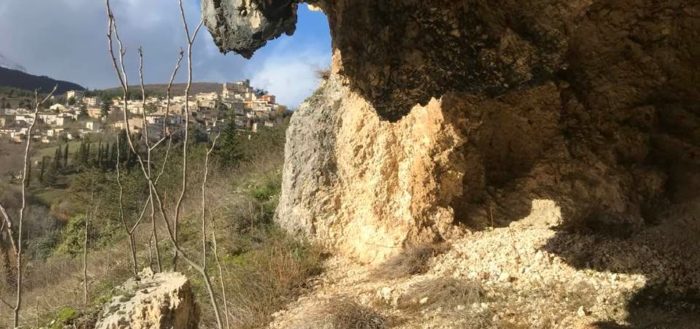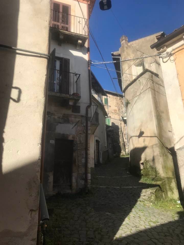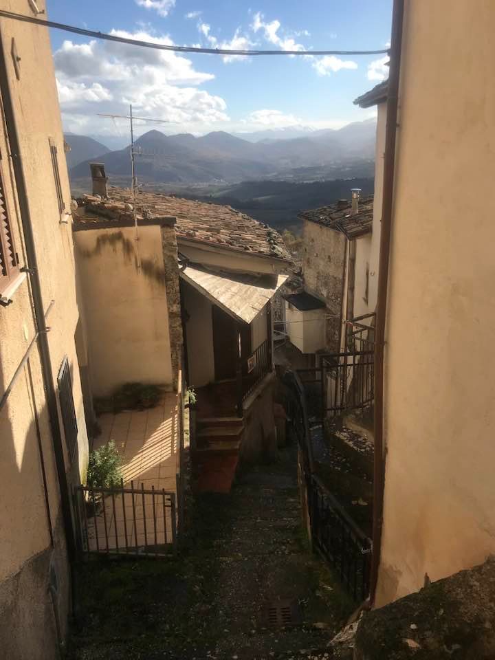 Dalla sommità del borgo la chiesa di San Nicola di Bari. Scendiamo con Luigino Barbati dentro i vicoli, le strade cordonate, gli accessi stretti, i sottopassi e gli slarghi del borgo di Secinaro.