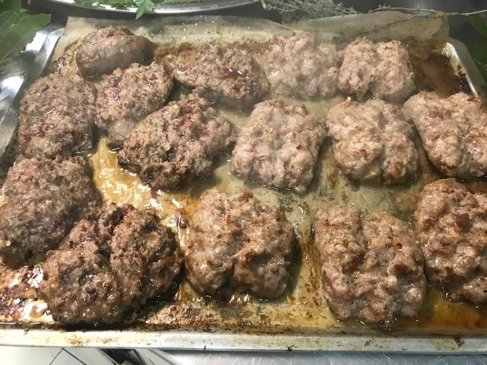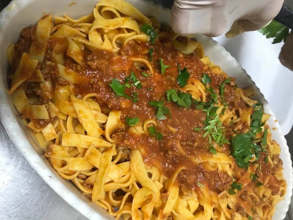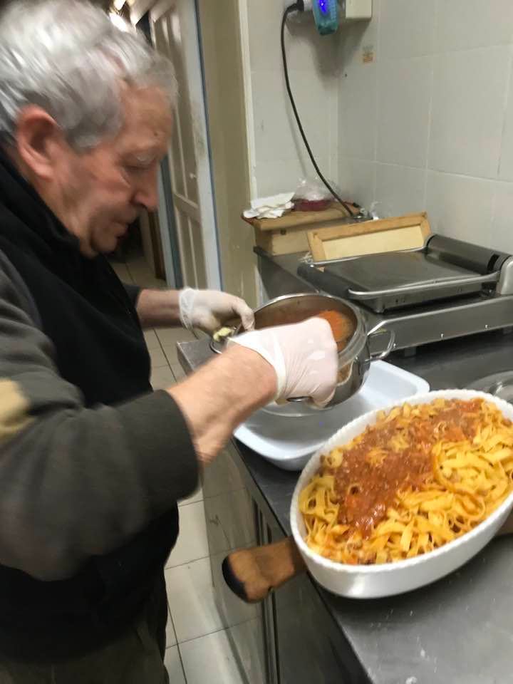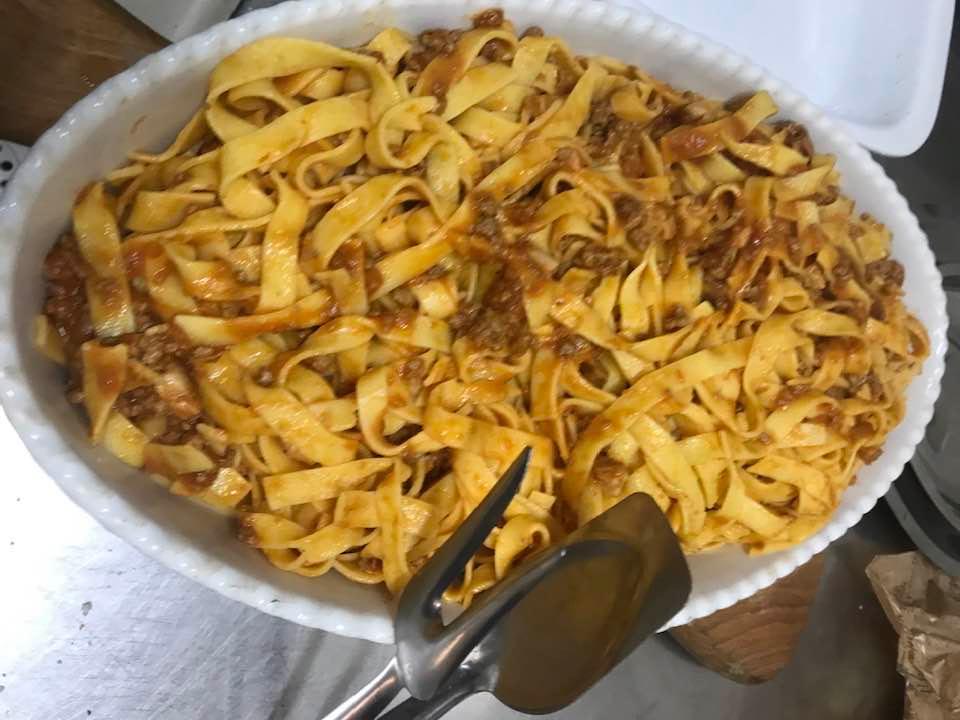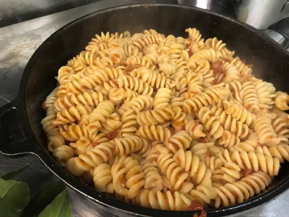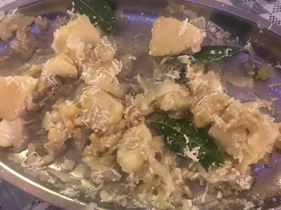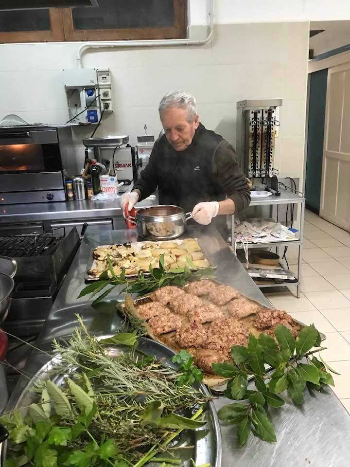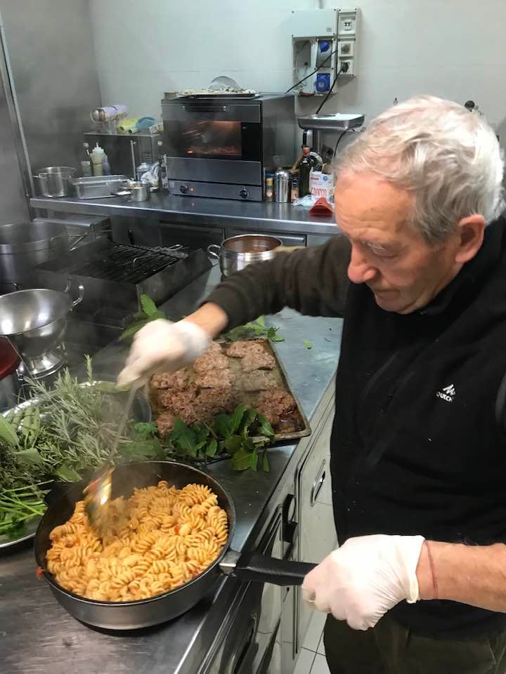 Fettuccine con il ragù di vitella allevata in zona, pancetta di maiale ed erbe aromatiche. Fusilli con pomodori freschi, erbe di montagna,” all’arrabbiata”. I cavoli ripassati in padella, crauti e patate. Arrosto di vitella alla “finocchiella selvatica”. Salsicce di carne e di fegato con verdure dell’orto. Cipolle e finocchi al forno speziati. Patate lessate dette “a gnocchi”, ripassate in padella con acqua di cottura, formaggio, lauro ed erbe aromatiche.