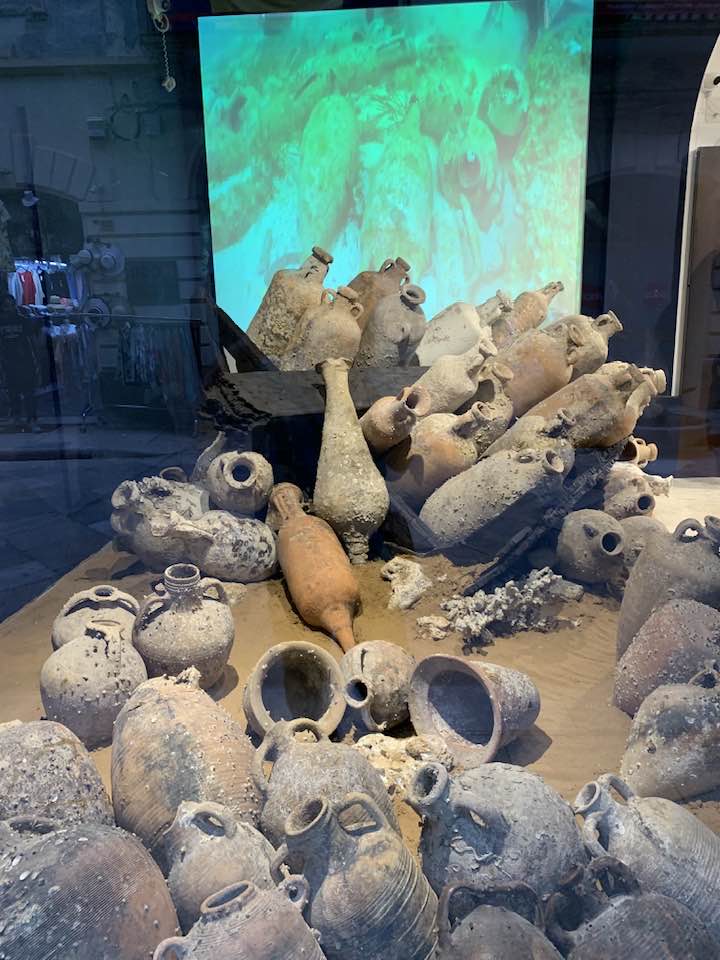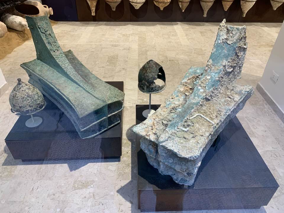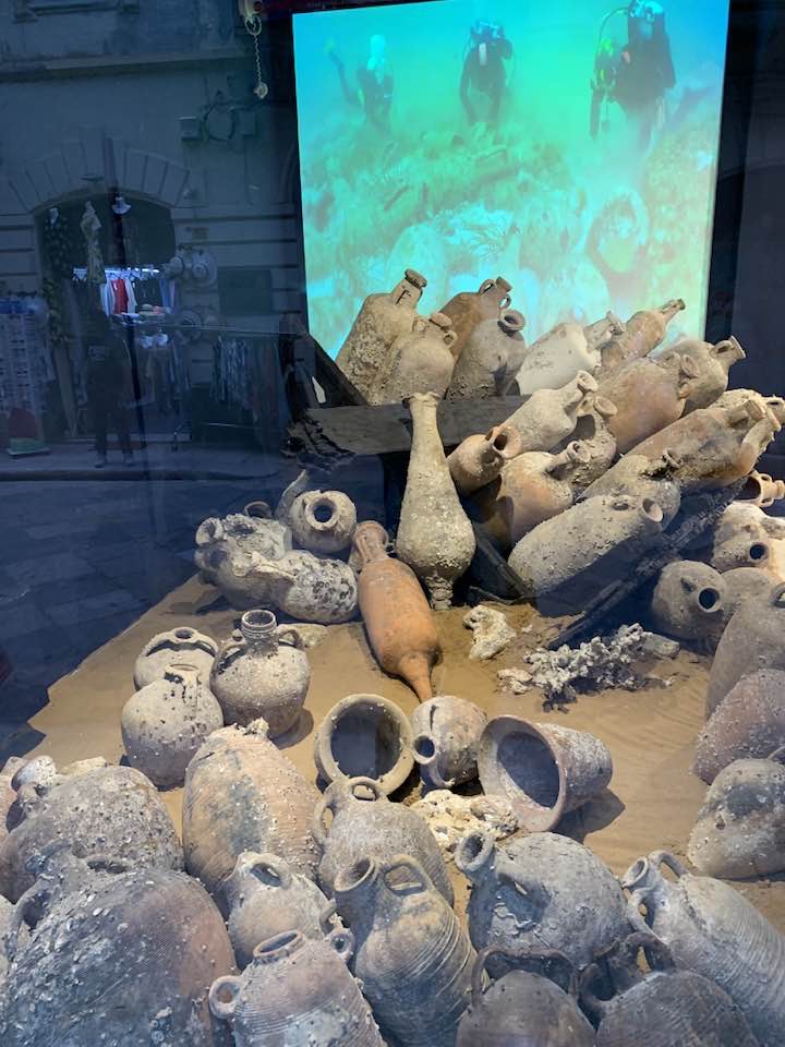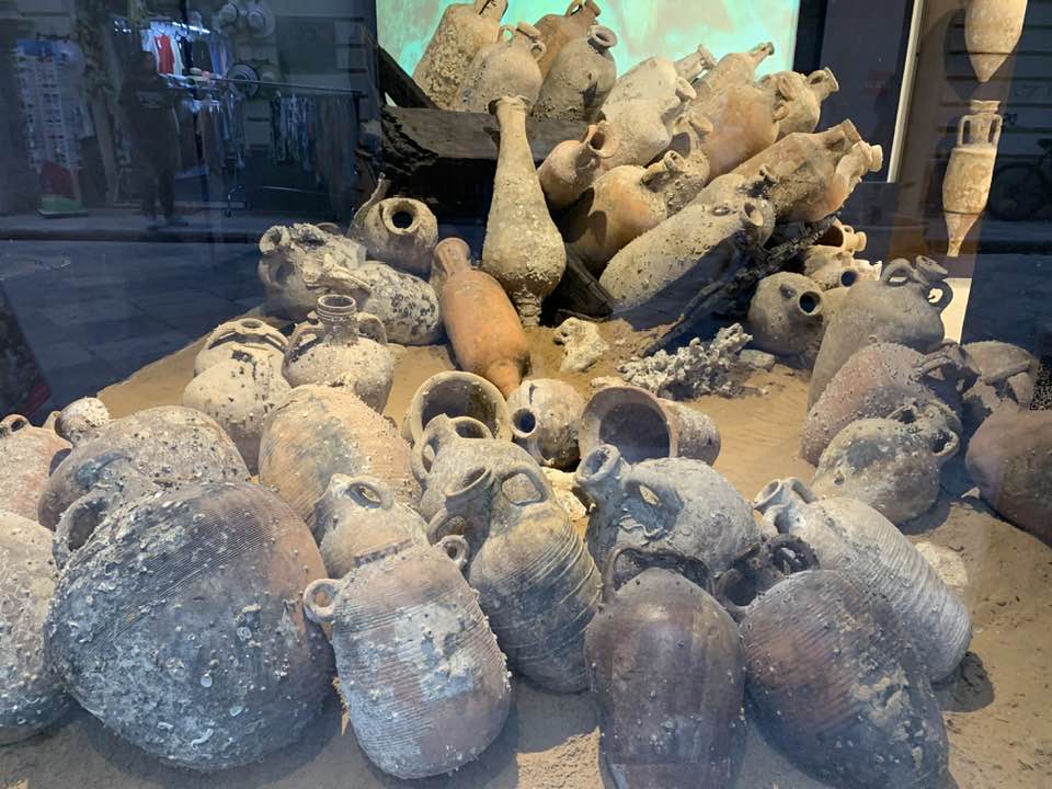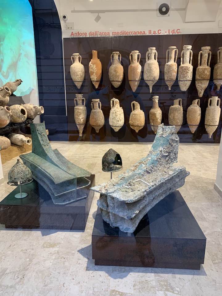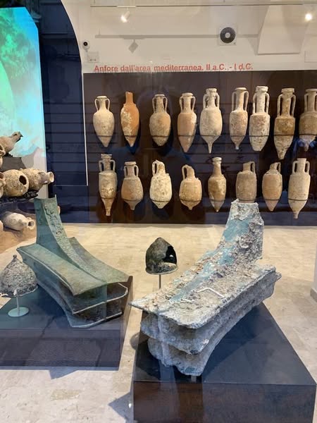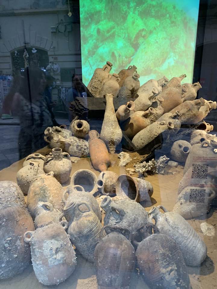 Via Garibaldi invece, con le chiese barocche sull’impronta siciliana e per questo con linee sinuose, ornamenti decorativi, fregi, cornici e volumi architettonici imponenti e ricchi, che si flettono nella facciata in un gioco di luci e ombre, e poi le quinte dei palazzi del “Gattopardo” di Visconti… In tre vetrine espositive dell’Assessorato ai Beni Culturali, lungo la via, un allestimento multimediale visualizza i reperti archeologici. Nelle sale esposte davanti alle vetrine le anfore, ma soprattutto i rostri sulle prue romane per speronare, poiché nelle battaglie navali facevano la differenza, squarciando i remi e le fiancate delle navi cartaginesi, in un lembo di mare teatro della battaglia navale prospicente la citta di Trapani. Poi, esposti, anche gli elmi punici, le ancore e gli oggetti delle imbarcazioni militari. Sullo sfondo delle sale espositive i video girati sui fondali mostrano la ricerca subacquea nel “catalogo” dei rinvenimenti sulle sabbie del mare e il recupero, quindi, dei reperti archeologici a ottanta metri di profondità intorno a Levanzo, l’isola che fronteggia Trapani. Davanti alle vetrine, sulla via basolata, e sul marciapiede opposto, a terra, sdraiati, i venditori nordafricani con gli oggetti improbabili sui loro teli allineati richiamano l’attenzione – e, con una immagine plastica, una iperbole metaforica, proviamo a pensare – quasi a voler fronteggiare in un confronto quelle vetrine in via Garibaldi di Roma Repubblicana. Certo, Roma in quel tempo, tutto il mondo conosciuto, bisognava guardarlo con gli occhi di Roma –  e l’Urbe inoltre si  fregiò con lo sviluppo della filosofia e la penetrazione, la diffusione del pensiero greco. La presenza sempre a Roma di filosofi greci, e la rielaborazione della filosofia greca in lingua latina. Ma se non fosse stata battaglia, cruenta e drammatica che cosa saremmo diventati noi, e quale sarebbe stato il nostro tempo, e il nostro destino…? Si, la battaglia dura che evolse a favore di Roma Repubblicana, le sue mire di espansione, la difesa delle rotte e delle coste, e l’opposizione quindi a una cultura completamente diversa, in tutto. Ma un’altra battaglia, intimista, e neorealista della città di Trapani, è stata condotta da Leonardo Sciascia, il suo spirituale dell’arte nel saper guardare il tempo e andare oltre: “esilio dall’interno, pur restando in Sicilia…”, un’ansia sopita dello scrittore siciliano e una ribellione antropica, simbolo del decadimento, dell’effimero o del caos nei suoi scritti illuminanti sulla realtà siciliana, mentre Roma, da qui, non misurabile, è impercettibile, distinta e distante, un’espressione geografica e nulla più, nel “Continente…”.