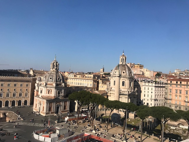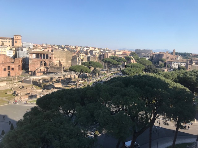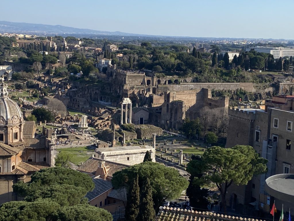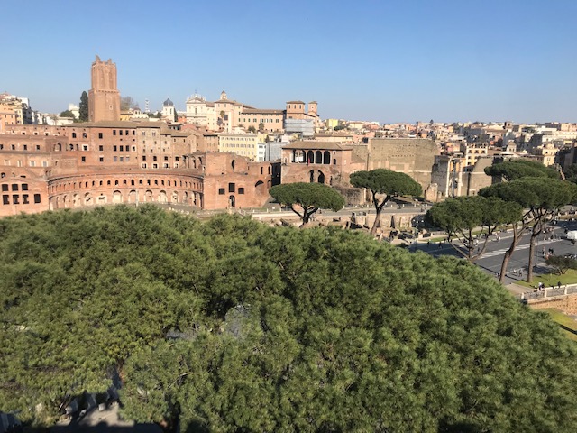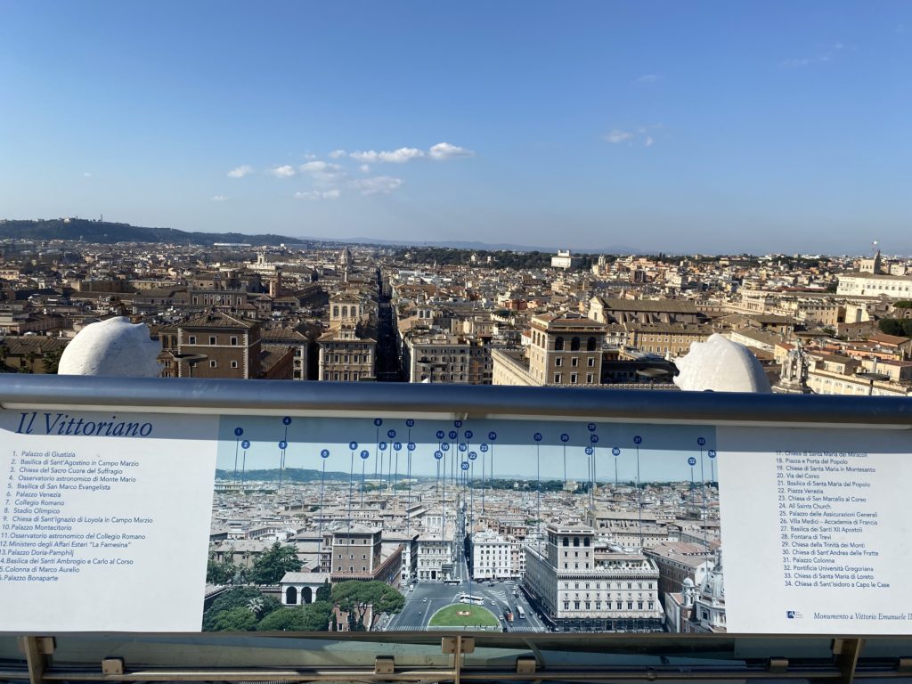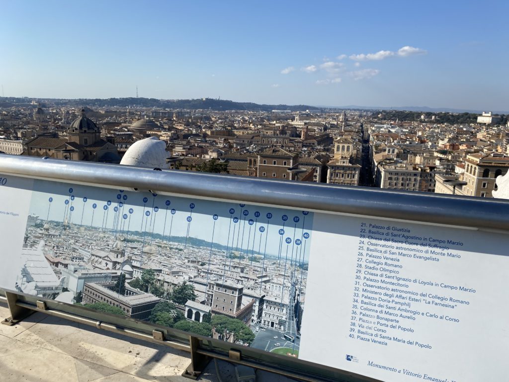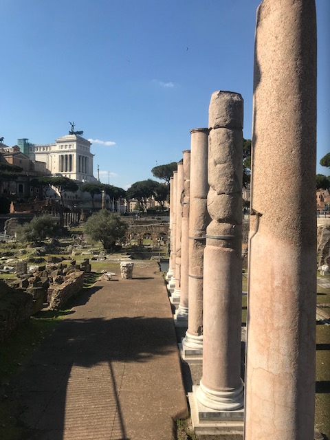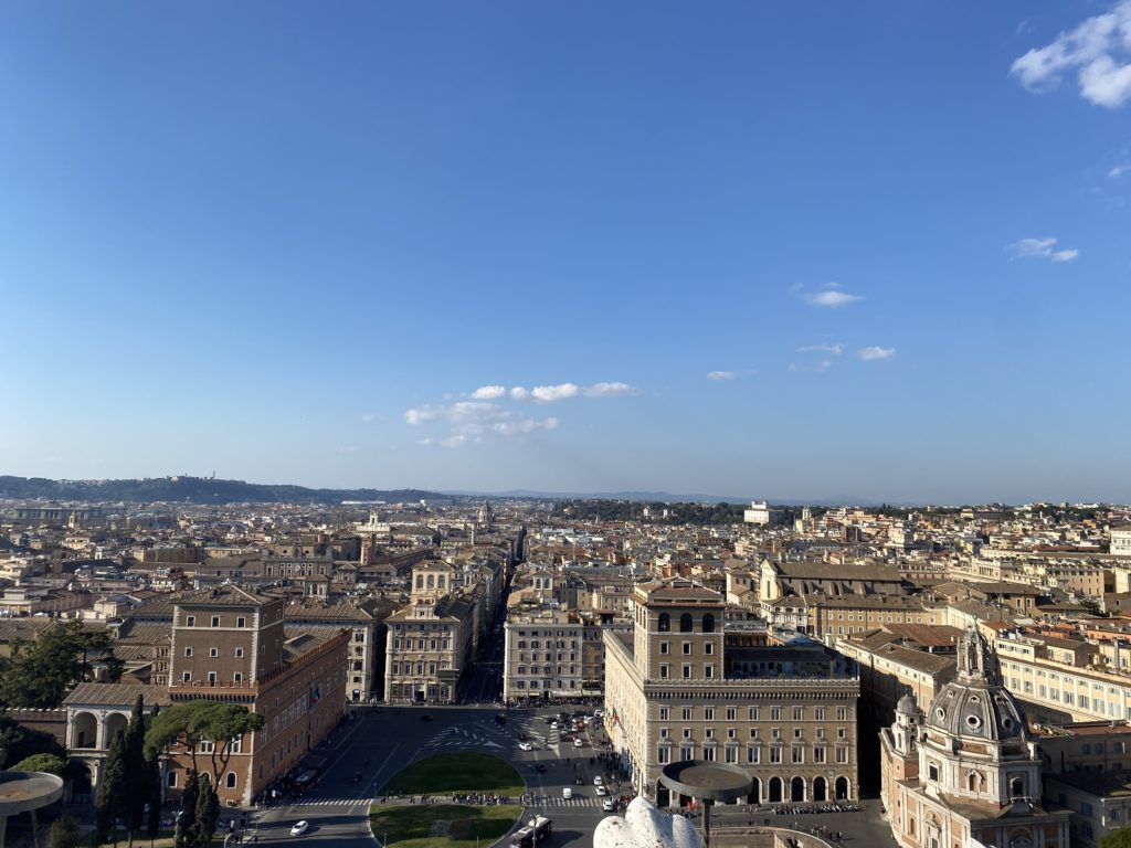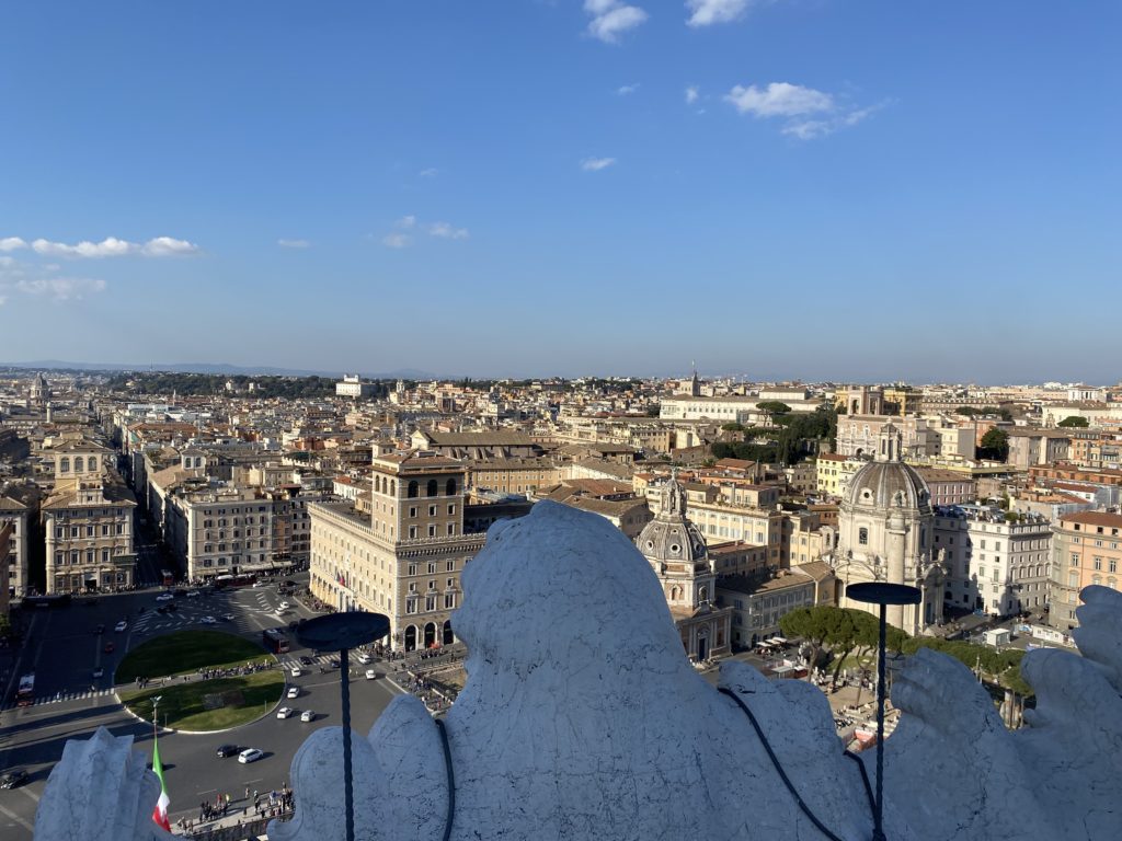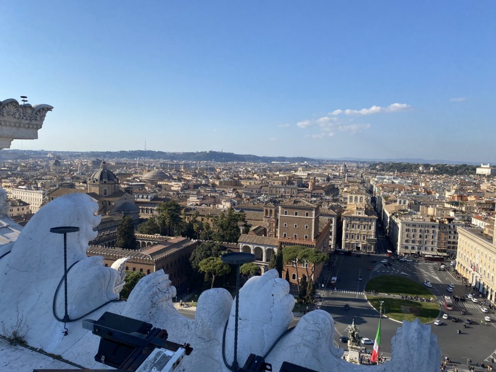 Il Vittoriano o Altare della Patria, monumento nazionale, fu costruito nel 1885 è terminato con gli ultimi interventi urbanistici nel 1935. Architettura ispirata al foro romano, una piazza greca, l’agora costruita su tre livelli. Portico, scalinate, colonnati rappresentano il sacello dove è posto il Milite Ignoto centrale a tutto il complesso architettonico. Sotto il regno di Vittorio Emanuele II di Savoia, il Vittoriano, opera dell’architetto Giuseppe Sacconi, celebra la valenza simbolica, le virtù, l’amor di Patria: un tempio laico al sacrificio e alle presunte virtù della patria come nell’Altare di Pergamo esposto al Permamonmuseum. Contiguo al Foro romano, il Vittoriano si è “poggiato” sulle memorie della storia dell’Urbe, nascondendo per sempre i sedimenti costitutivi, la topografia appunto della Roma Imperiale, come accadrà alcuni decennio dopo con l’apertura dell’asse stradale di Via dei Fori Imperiali nel periodo fascista.