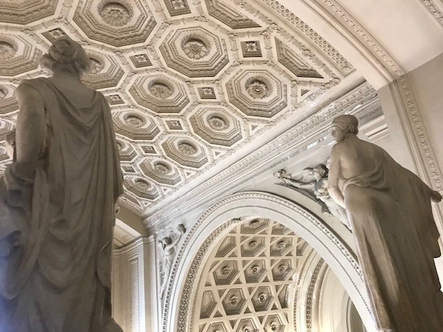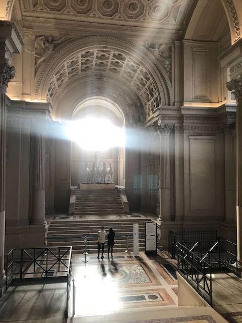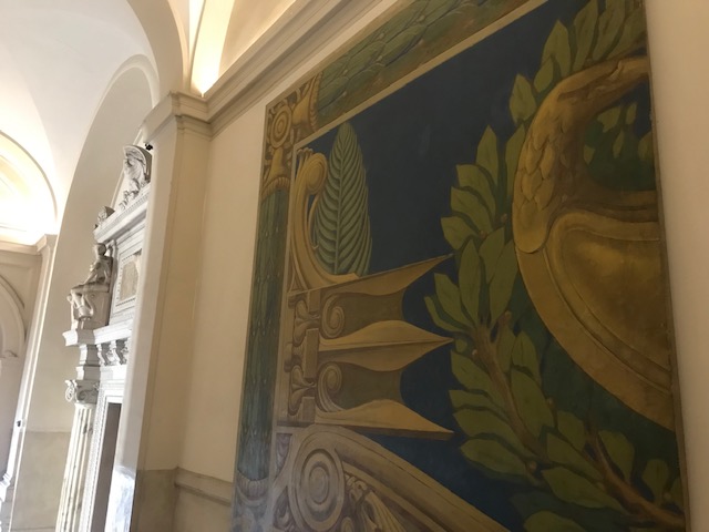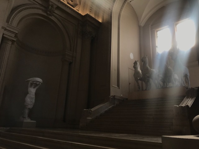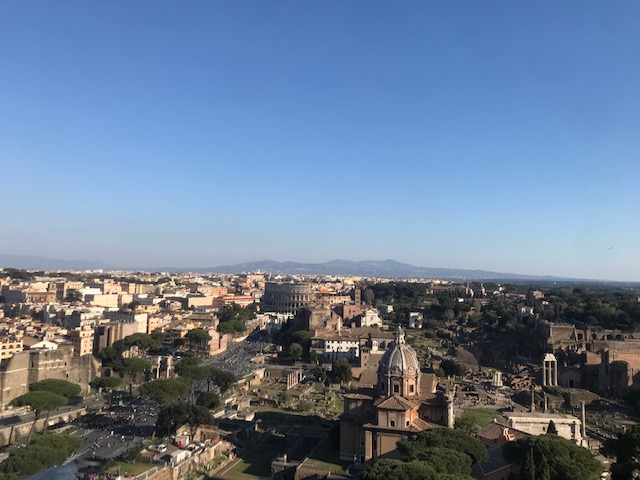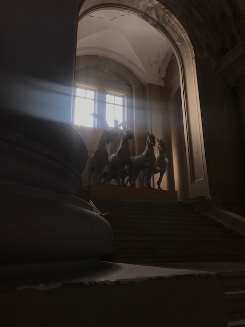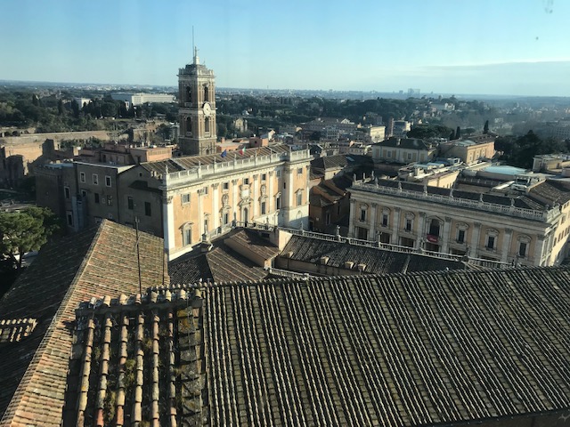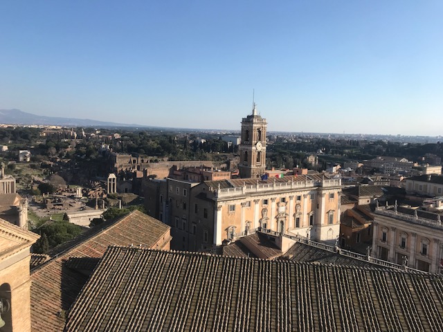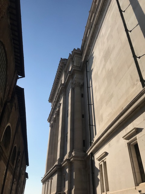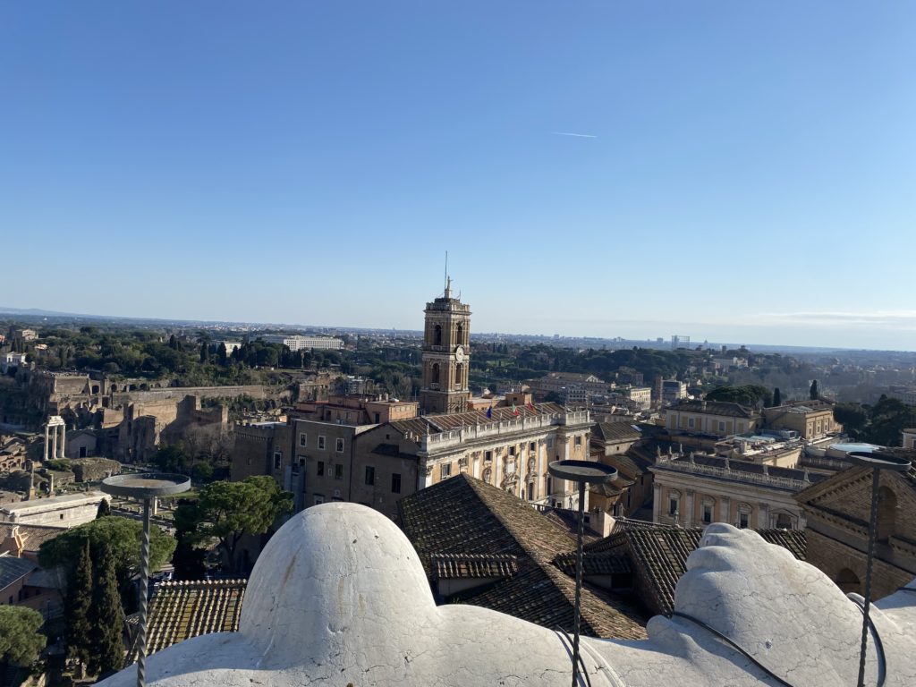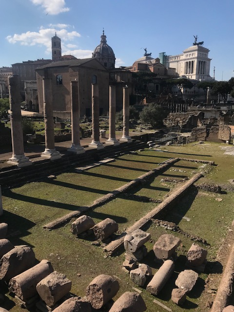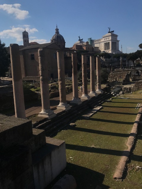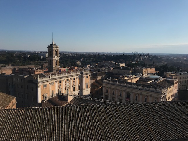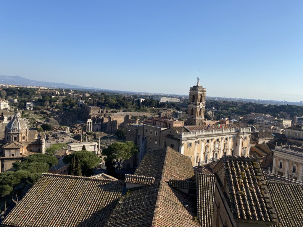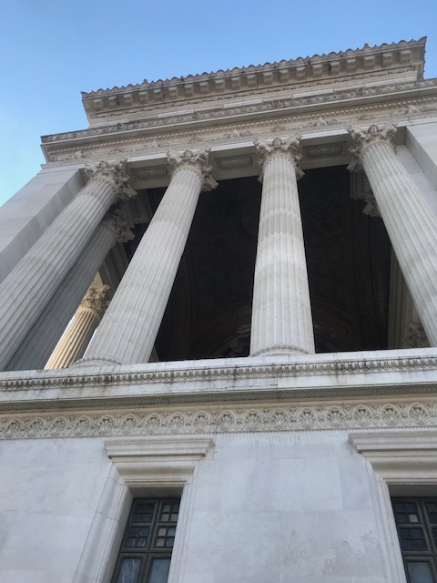 Il Vittoriano o Altare della Patria, monumento nazionale, fu costruito nel 1885 è terminato con gli ultimi interventi urbanistici nel 1935. Architettura ispirata al foro romano, una piazza greca, l’agora costruita su tre livelli. Portico, scalinate, colonnati rappresentano il sacello dove è posto il Milite Ignoto centrale a tutto il complesso architettonico. Sotto il regno di Vittorio Emanuele II di Savoia, il Vittoriano, opera dell’architetto Giuseppe Sacconi, celebra la valenza simbolica, le virtù, l’amor di Patria: un tempio laico al sacrificio e alle presunte virtù della patria come nell’Altare di Pergamo esposto al Permamonmuseum. Contiguo al Foro romano, il Vittoriano si è “poggiato” sulle memorie della storia dell’Urbe, nascondendo per sempre i sedimenti costitutivi, la topografia appunto della Roma Imperiale, come accadrà alcuni decennio dopo con l’apertura dell’asse stradale di Via dei Fori Imperiali nel periodo fascista.